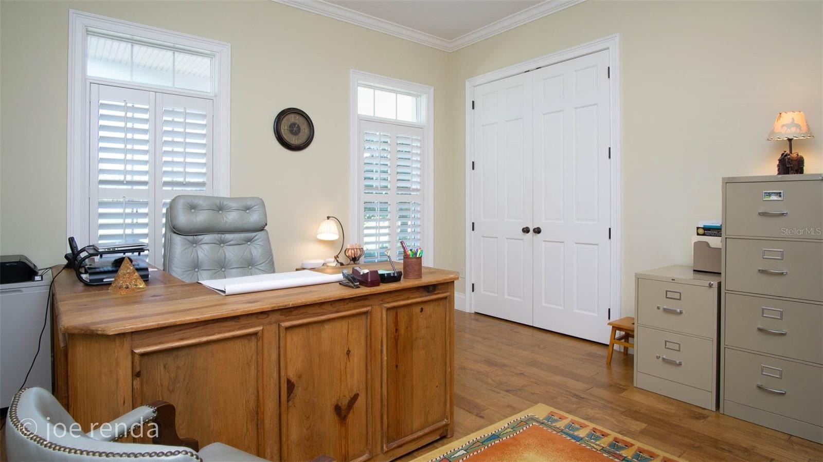 The primary suite is a true retreat with red oak flooring, plantation shutters, a serene sitting retreat overlooking the pool and pastures and a spa-inspired bath featuring coral stone floors, dual stone vanities, a soaking tub encased in stone, and a glass shower with coral stone flooring.