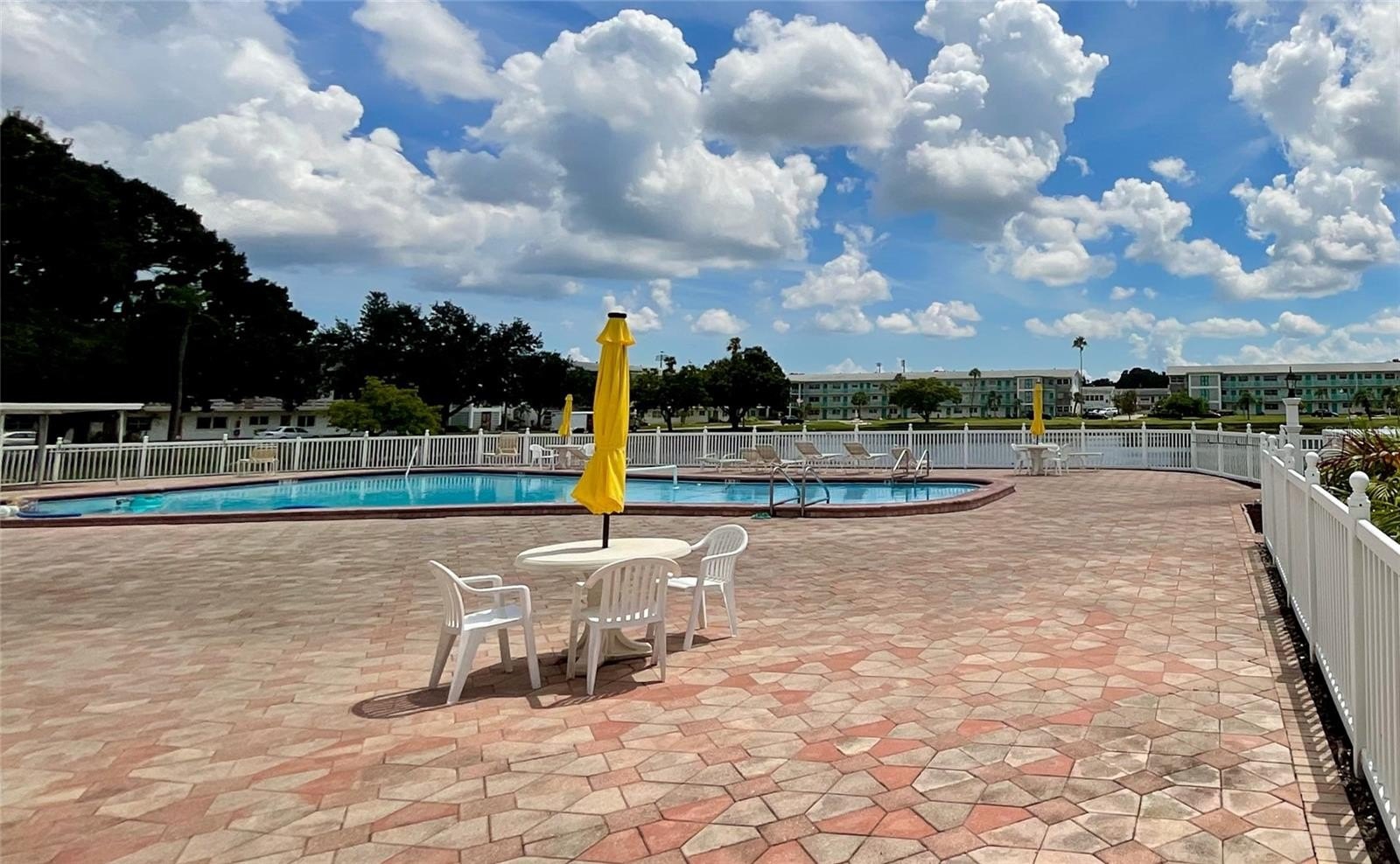 This is it! Check out this 2 bedroom, 2 bath, 1410 sq. ft. in the 55+ community in the Oasis Bldg. of the Town Apts. Condo. This end unit is one of the largest in the community and is located right next to the elevator. There is a covered front deck/porch area where you can sit and enjoy the view of the pond. As you enter the home, the living room has carpet that transitions to laminate flooring in the combined dining area. There is room for your dining table with chairs or just use the breakfast bar. The kitchen has tile flooring, stainless steel appliances, granite countertops, and a gas stove. Off the kitchen, there is a bonus room that could be used for a library, movie room, an office, or craft room. The large primary bedroom has an ensuite bathroom with a step-in shower and a slider to the bonus room. The guest bedroom has two closets and your own private entrance/exit door to the condo. The guest bathroom has been updated and has a tub/shower combo. Both bedrooms were updated in 2021 to laminate flooring. The community has a Rec Hall Clubhouse complete with shuffleboard court, a pool with patio, an additional large picnic patio area for cornhole and barbeques. In the clubhouse, there is a large event room, card room, library, and billiards room. Activities include Yoga and fitness classes. The condo fee includes: water, gas water heater, gas used for your stove and heating, sewer, trash, cable, internet, pool and ground maintenance, building maintenance, and a designated carport space. Located minutes to the Tampa International Airport, and close to downtown St. Petersburg's restaurants, museums, entertainment, and Vinoy Park on the bay. What more could you ask for! Call today to schedule you private showing at the Oasis.
