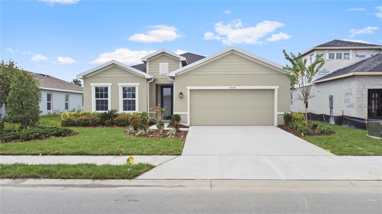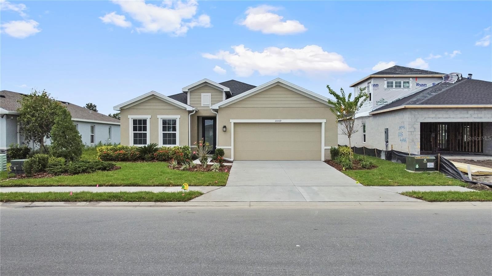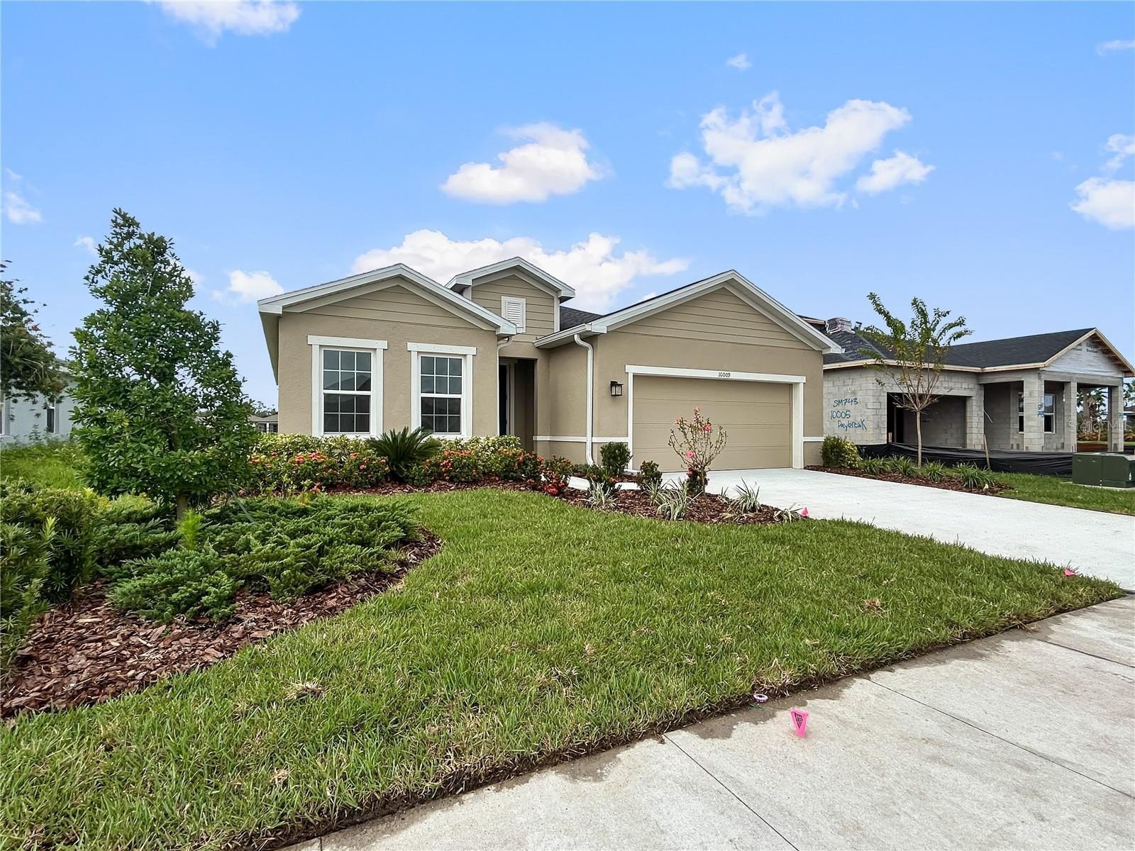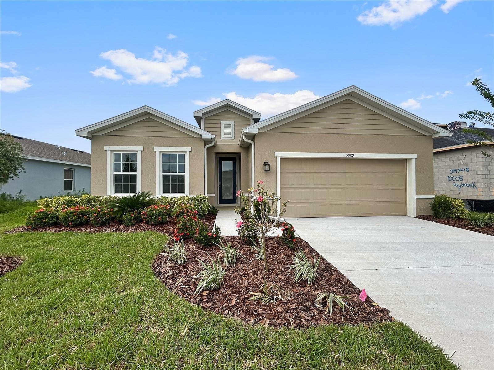 Essentially a new build. Welcome to this beautifully designed former model home in the highly sought-after community of Parrish, FL. With brand new blinds and ceiling fans, this home has been freshly painted throughout, and all of the carpeting has been professionally cleaned. Never before lived in, this residence offers modern comfort with a spacious open-concept layout perfect for both everyday living and entertaining. The home features a bright and airy living area with recessed lighting, a contemporary kitchen with stainless steel appliances, and plenty of counter and cabinet space for all your cooking needs. The kitchen and baths feature elegant quartz countertops and high-quality shaker-style cabinets with slow-close drawers, adding both style and functionality.