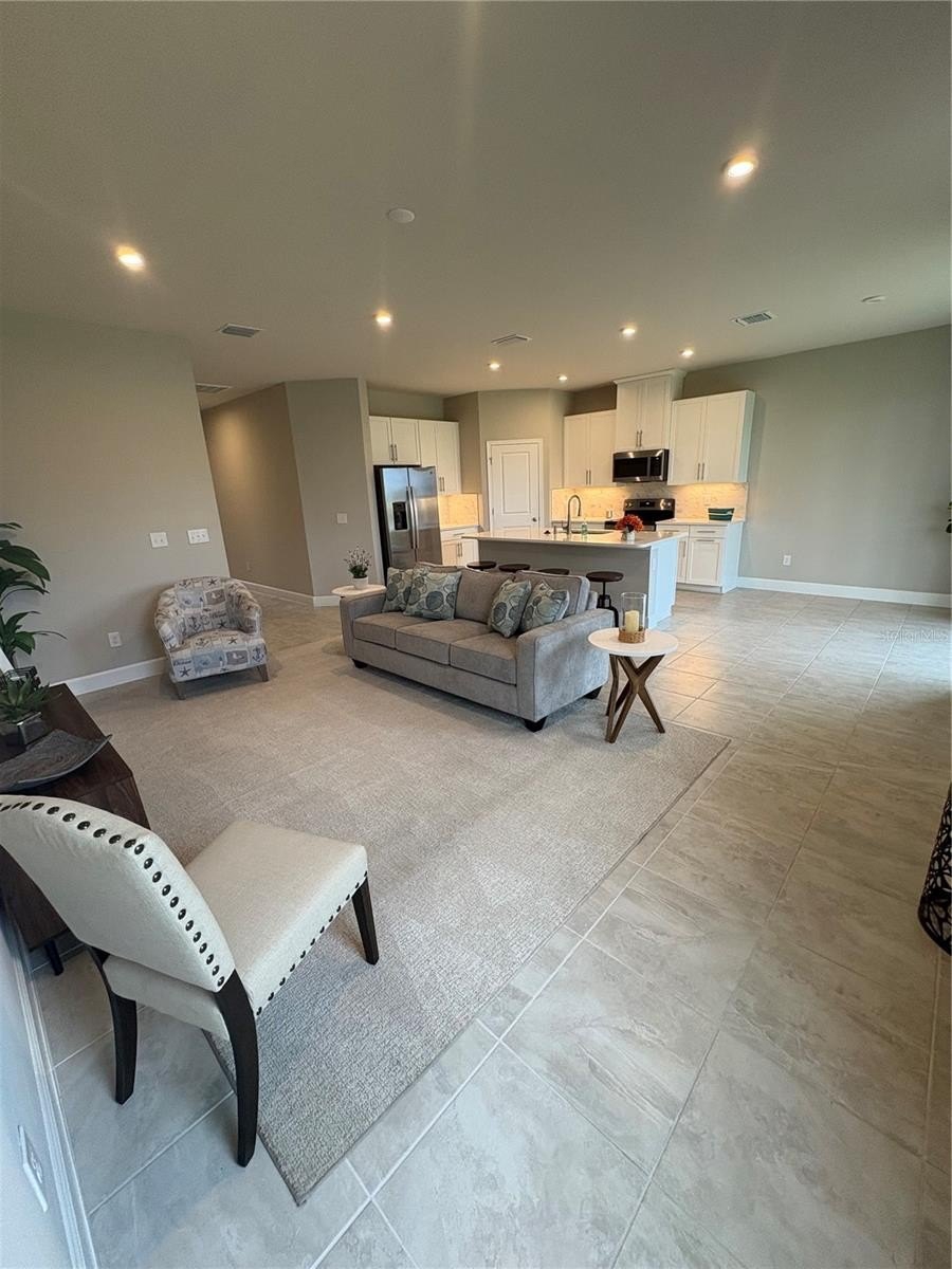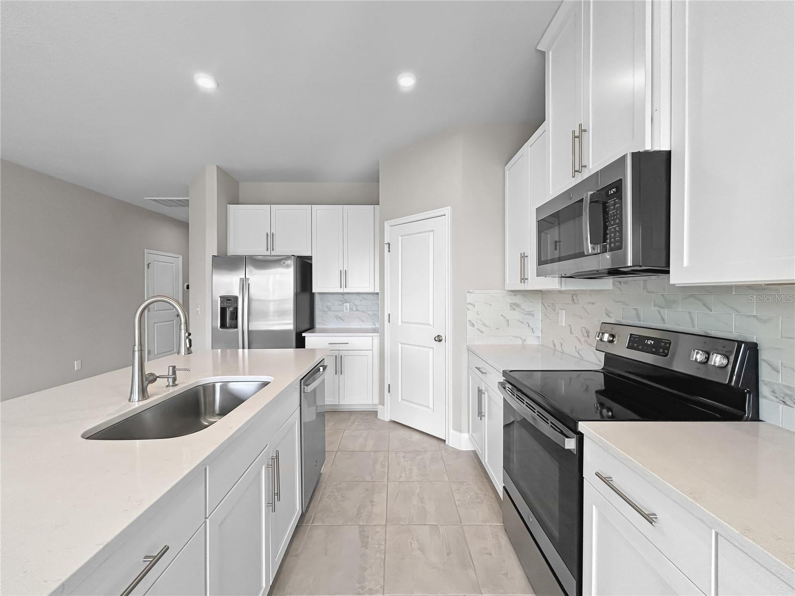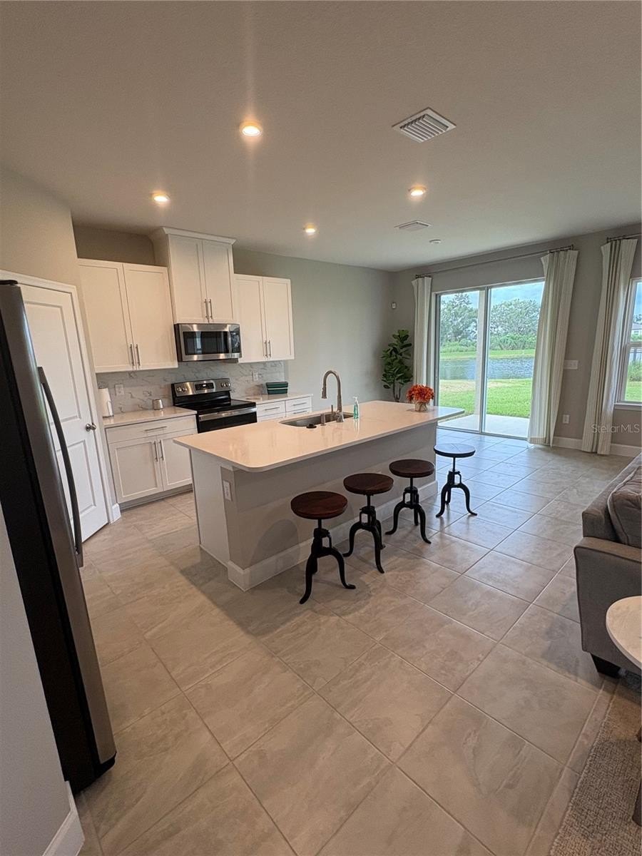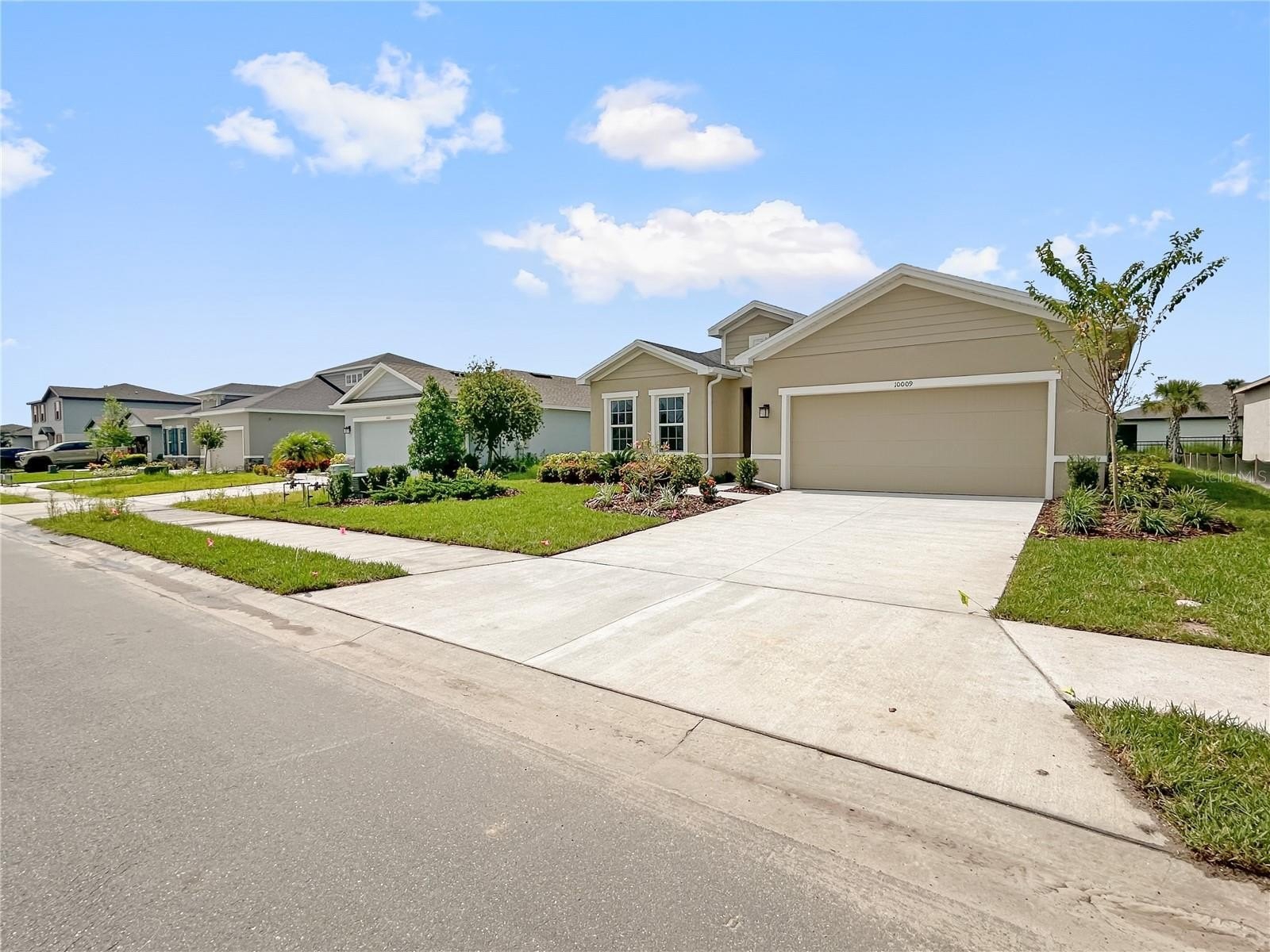 Essentially a new build. Welcome to this beautifully designed former model home in the highly sought-after community of Parrish, FL. With brand new blinds and ceiling fans, this home has been freshly painted throughout, and all of the carpeting has been professionally cleaned. Never before lived in, this residence offers modern comfort with a spacious open-concept layout perfect for both everyday living and entertaining. The home features a bright and airy living area with recessed lighting, a contemporary kitchen with stainless steel appliances, and plenty of counter and cabinet space for all your cooking needs. The kitchen and baths feature elegant quartz countertops and high-quality shaker-style cabinets with slow-close drawers, adding both style and functionality.
