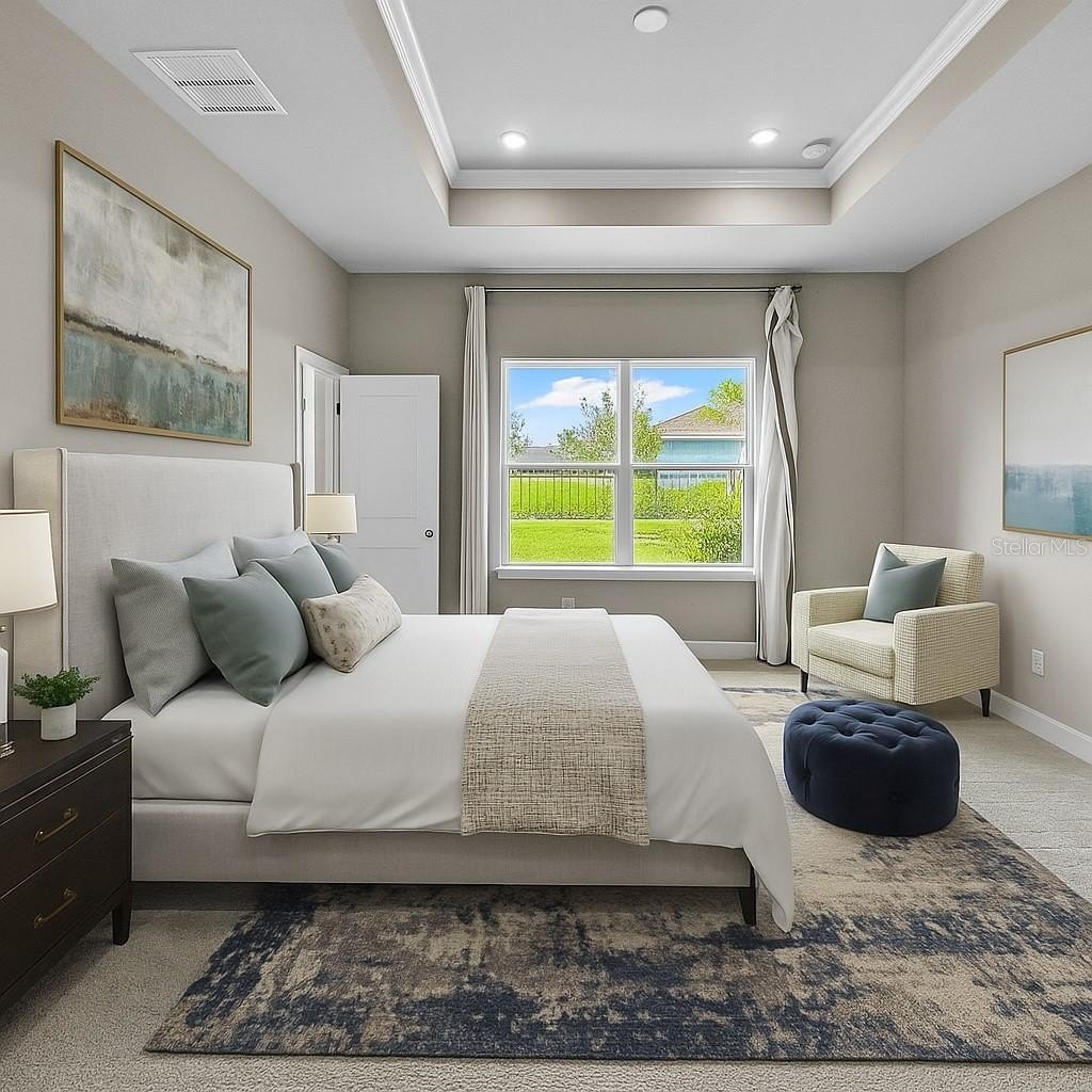 The master suite is a true retreat with a tray ceiling, large windows overlooking the backyard, and a luxurious en-suite bathroom. Additional bedrooms provide flexibility for guests, a home office, or a growing family. Neutral finishes throughout create a move-in-ready atmosphere, allowing you to personalize the space with ease.