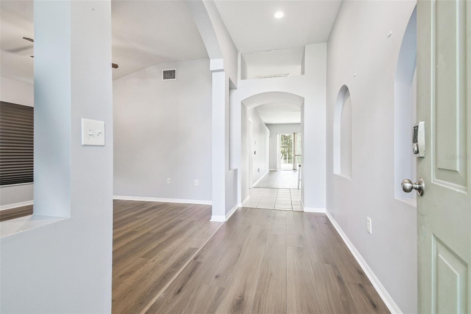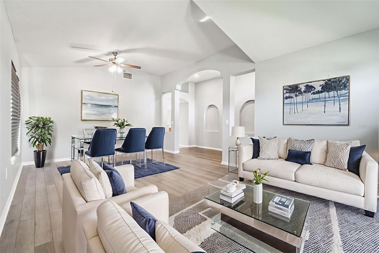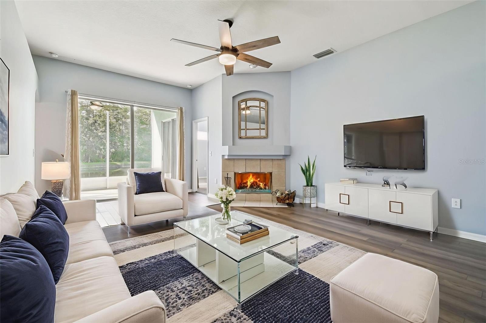 One or more photo(s) has been virtually staged. Welcome to your new home in the gated community of Wrencrest! This 4-bedroom, 2-bath residence offers some of the most stunning POND and CONSERVATION views you’ll find. The thoughtful floor plan features an EAT-IN kitchen and a flexible space that can be used as a formal dining room, office, game room, or whatever best fits your lifestyle. The spacious living room overlooks the water and is anchored by a wood-burning fireplace with mantle, creating a warm and inviting focal point. The primary suite, tucked away at the rear of the home, offers peaceful views and private access to the lanai. Its ensuite bath includes a walk-in closet, dual sinks, a walk-in shower, and a relaxing garden tub. Notable upgrades include GRANITE countertops, ceramic tile, luxury vinyl plank flooring, ceiling fans, and a WHOLE-HOME WATER TREATMENT SYSTEM. ROOF and AC replaced in 2020 and HOT WATER HEATER 2019! Step outside to enjoy the serene backdrop from your lanai, or take advantage of all that Meadow Pointe has to offer—fitness center, swimming pool, clubhouse, and tennis/pickleball courts. Don’t miss your chance to see this exceptional home, schedule your private tour today!
