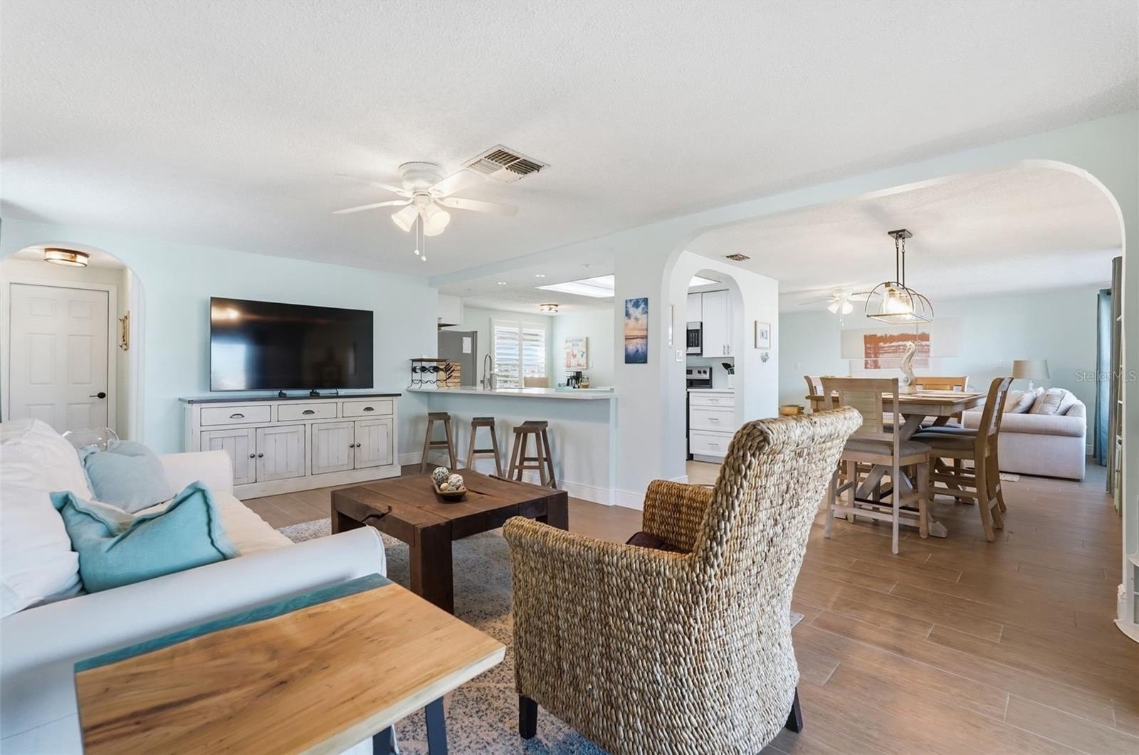 Welcome to this coastal, completely remodeled waterfront home in the golf cart-friendly community of Sea Ranch on the Gulf. Featuring 2 bedrooms, 2.5 bathrooms, and modern upgrades throughout, this home is truly turn-key and ready for you to enjoy the Florida lifestyle. Nearly every inch of this home has been updated. The HVAC system and garage door were replaced in 2024, the water heater in 2019, and the exterior was painted with elastomeric paint in 2022 for lasting durability. High-end details are found throughout, including solid-core interior doors, Jeld-Wen hurricane-rated windows, 8” ceramic plank flooring, 5” baseboards, and plantation blinds that filter natural light beautifully. Inside, you’ll find brand-new ceramic plank flooring, updated electrical, and fresh paint, all completed in 2024. The open-concept floor plan is bright, inviting, and perfect for entertaining. The modern, updated kitchen offers generous counter space, plenty of storage, new cabinetry, quartz countertops, and stainless steel appliances. The spacious living area flows effortlessly, creating an ideal setting for gatherings or quiet evenings at home. Retreat to the primary suite, featuring a huge walk-in closet, an additional closet, and a luxurious private bath. The second bedroom is equally spacious - large enough to serve as a second primary - with charming barn doors on the closet. A stylish half bath adds convenience for guests. Step outside to the screened lanai (new no-see-um screen installed in 2020) or relax on your WearDeck floating dock (2022) - perfect for fishing, boating, or simply soaking in the view. Additional features include a two-car garage, an indoor laundry room, and furnishings that are new or like-new (some negotiable). With no HOA and a golf-cart-friendly neighborhood, you can easily cruise to nearby restaurants, bars, and shops. This home is not only a perfect primary residence but also an excellent Airbnb investment opportunity. Just a short drive to Hernando Beach, local dining, and shopping centers, this home offers the best of coastal Florida living. Don’t miss this rare opportunity to own a practically brand-new waterfront home. Schedule your private showing today!