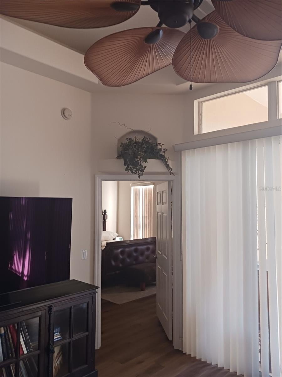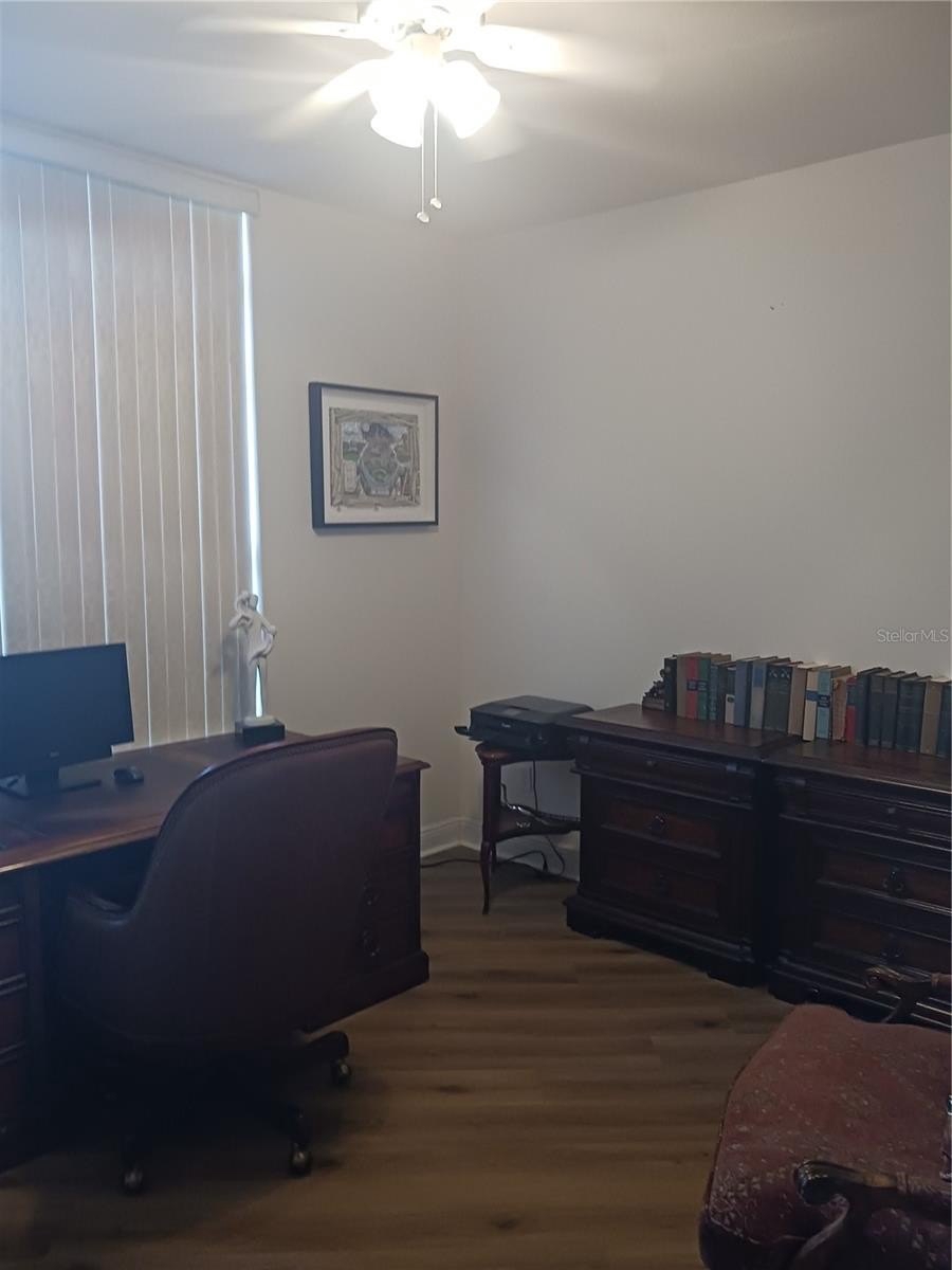 Great home with a nice rear view. Features include high ceilings, a large primary suite with a full bathroom, including dual sinks, a walk-in shower, and a walk-in closet. The second bedroom is nice sized, with the second bathroom right beside it. The separate laundry room includes a washer and a dryer. The oversized kitchen has all appliances in place, a pantry closet, a raised bar top with seating area, and room for a breakfast table. The combination dining and living rooms flow nicely to the lanai. Home also includes a garage with opener. Home is currently furnished, and furnishings can either be purchased separately, or home can be empty at closing.