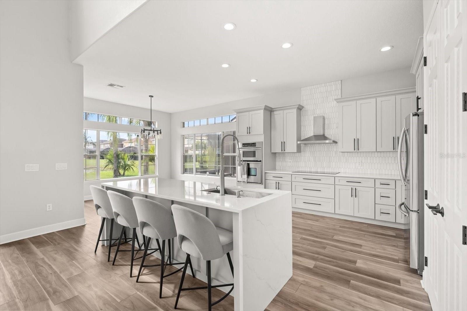 Set within the gated Preserve at Astor Farms, this beautifully updated residence combines elegance, comfort, and space in one of Sanford’s most desirable communities. Designed for both everyday living and memorable entertaining, the home’s open layout flows from a grand foyer into bright gathering areas anchored by an expansive kitchen with stainless steel appliances, built-in wall oven and microwave, and a generous island with plenty of seating.