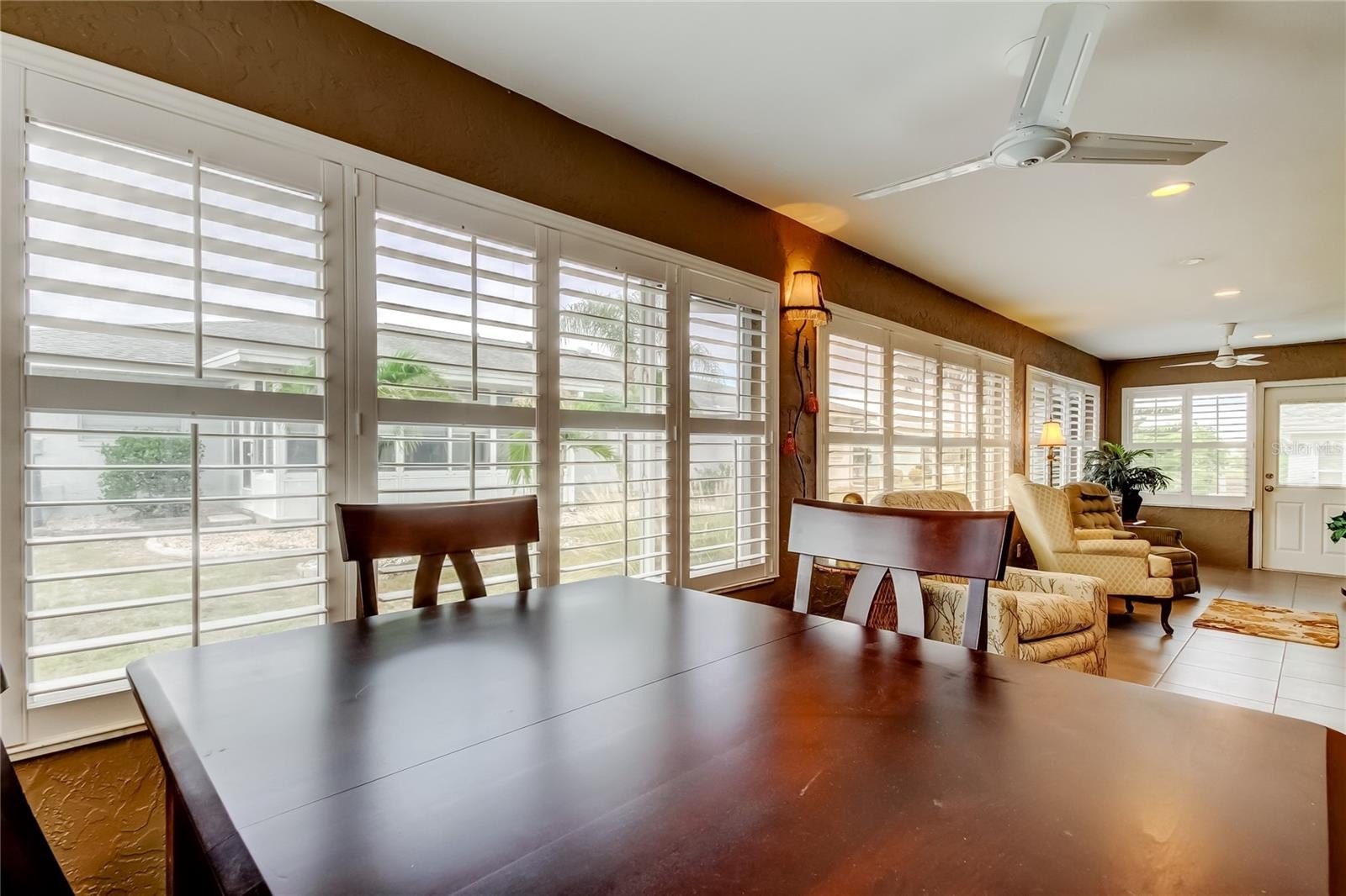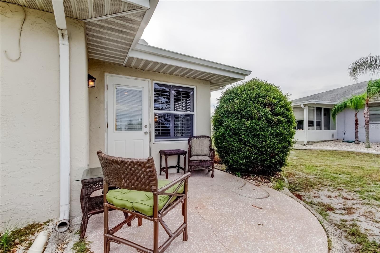 Truly move in ready Sun City Center Villa! The majority of the furniture and a minimal amount of the art work could convey at closing. The two bedrooms each have their own private ensuite and plenty of closet space. Split bedroom floor plan. Your kitchen has a large granite countertop, solid wood custom cabinets, stainless steel refrigerator, glass cooktop, a built in double oven, dishwasher and more. Plenty of seating at the breakfast bar that overlooks the dining room and living room with views of your Florida room. Just off the kitchen is a large laundry room with an energy efficient washer and dryer, custom cabinetry and a high end utility sink basin. All windows have plantation shutters with the option to tilt the louvers or open them completely for your desired amount of natural lighting. Two separate outdoor seating areas each with their own beautiful view of the mature, Florida landscaping. The front porch is a serene covered area surrounded by flowering shrubs including a lovely hibiscus in full bloom. The tall palm tree in the front yard reminds you that you now live in paradise. Just off the Florida room is your back patio with a view of the nearby pond and its water lilies. The garage has floor to ceiling custom cabinetry with electrical outlets to charge up your tools. The refrigerator and deep freezer in the garage are yours too! Sun City Center is a 55+ friendly community that is conveniently located near major highways, plenty of restaurants and shopping destinations, medical facilities and professional services. Just a short commute to arrive at major museums, art communities, the larger surrounding cities including Tampa, St. Petersburg, Sarasota and Clearwater each with their own world famous sunny beaches. What's not to love? Call now for your private showing.