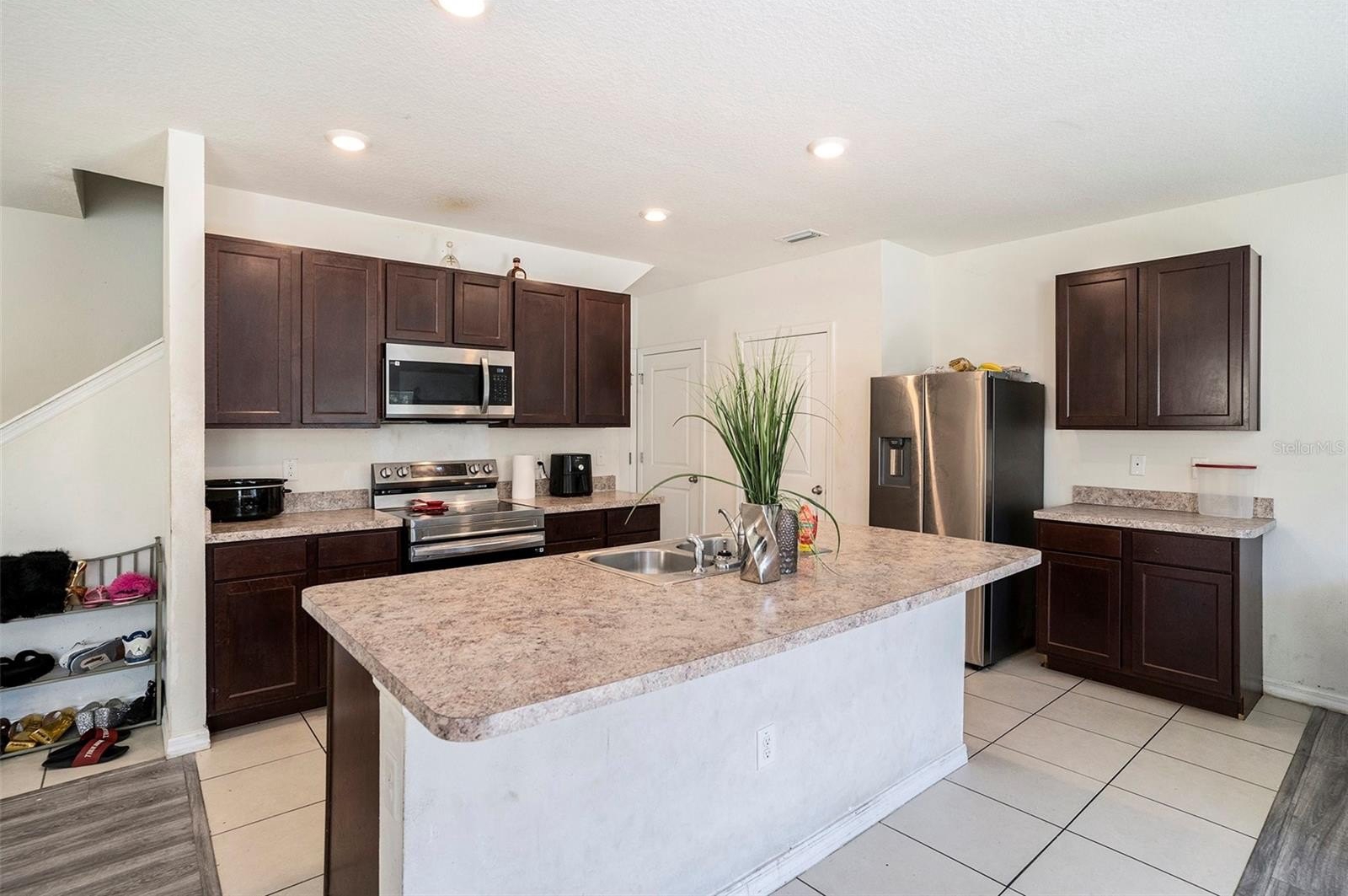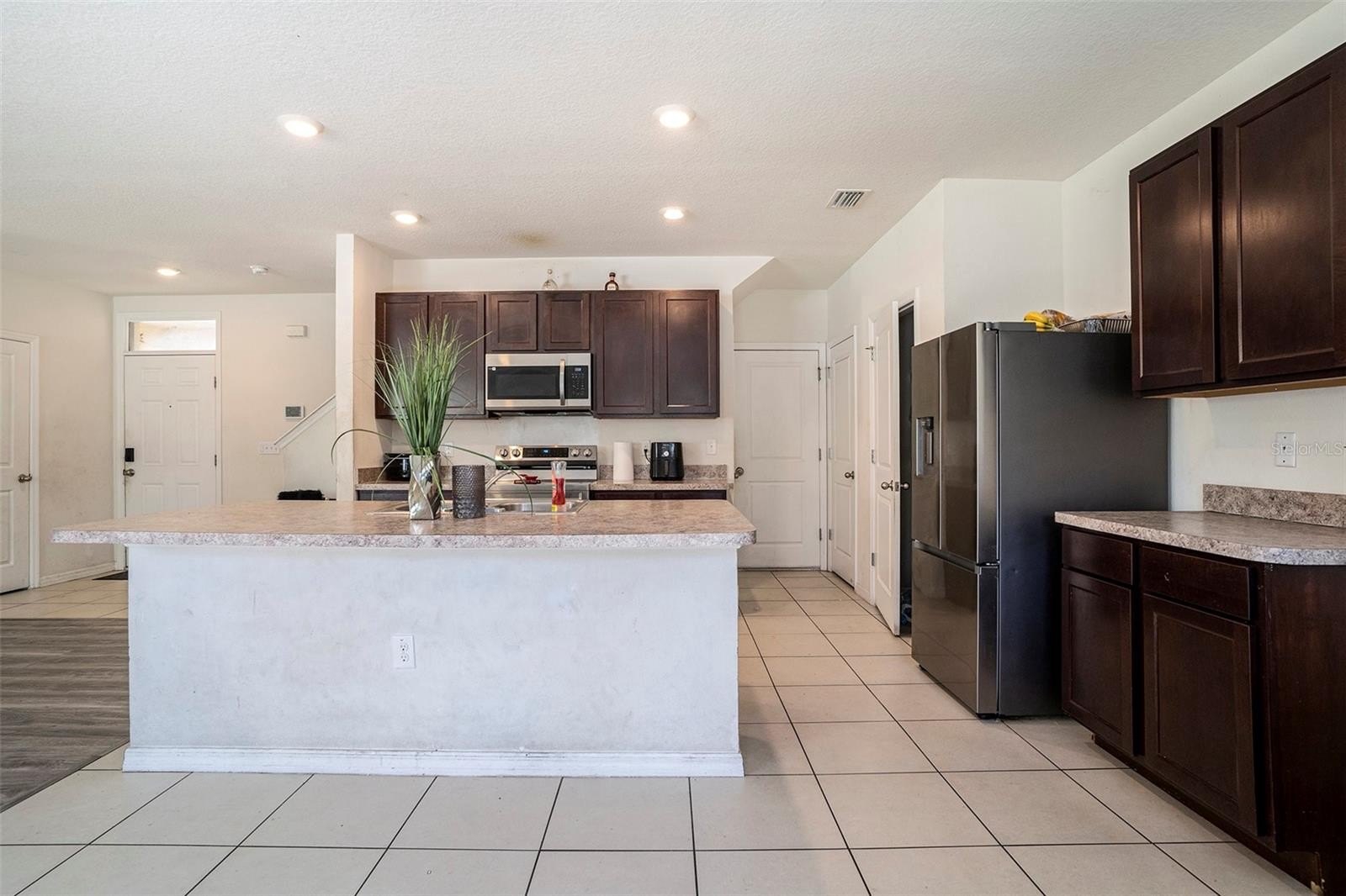 Welcome to The Orchids at Cypress Creek! This beautiful four-bedroom, two-and-a-half-bathroom home offers comfort and privacy with no rear neighbors. Built in 2020 by D.R. Horton, this two-story concrete block home (both floors - no wood framing upstairs) combines modern design with everyday functionality. Downstairs, you’ll find an open floor plan with spacious living and dining areas featuring wood-look vinyl flooring. The open kitchen is ideal for entertaining, complete with a large island for meal prep or casual dining, stainless steel appliances, and a walk-in pantry. A convenient half bath is located on the main level, and sliding glass doors from the living area lead to a partially fenced backyard - perfect for grilling, playing, or relaxing in your outdoor space. Upstairs, all four bedrooms and the laundry room are thoughtfully arranged. The primary suite includes a dual-sink vanity, step-in shower, separate water closet, and a large walk-in closet. One of the additional bedrooms also has a walk-in closet, while the remaining bedrooms share a full bath with a double vanity for added convenience. Residents of Cypress Creek enjoy resort-style amenities, including a clubhouse, two sparkling pools, fitness stations, sport courts, dog parks, and playground. Conveniently located near Highway 301 and I-75, this home offers easy access to shopping, dining, and commuting routes. Schedule your tour today!