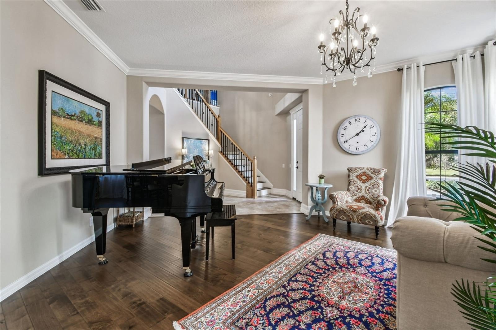 Welcome to one of Carrollwood’s best-kept secret— a stunning former model home offering over 3,500 sq. ft. of thoughtfully designed living space. Tucked away on a quiet one-street enclave, this elegant 5-bedroom, 3-bath, 3-car garage home combines luxury, comfort, and location all in one. This corner lot home has been beautifully maintained and recently refreshed with a newly painted exterior, updated interior touches, modernized appliances and engineered hardwood flooring. From the moment you enter, the grand foyer with soaring ceilings and a Restoration Hardware chandelier set the tone for sophistication. Enjoy generous size formal living and dining areas; a bedroom and full bath downstairs ideal for office, guests or multi-generational living. The open-concept floor plan features a chef’s kitchen with plenty of storage; recent appliances upgrades and a breakfast nook that flows seamlessly into the family room—perfect for entertaining or relaxing. Upstairs, you will find generously sized bedrooms, including a luxurious primary suite with a spa-like bath and walk-in closets. Enormous size bonus room that can flex as home theater, office, or game room. Your backyard is pure Florida living — a private swimming pool retreat surrounded by lush landscaping, and plenty of space for entertaining or unwinding. Dog park across the pond. Recent major updates: Lennox A/C (2021 & 2023); engineered hickory/maple hardwood flooring installed in living/dining, stairs, upstairs hallway and front and downstairs bedrooms (2017-2025); variable pool pump (2021); LG washer (2020) and dryer with storage 2025;. Here is what locals love: you’re just 3.2 miles from Carrollwood Day School, and minutes from Raymond James Stadium, top hospitals, Tampa International Airport, and endless options for dining, shopping, and entertainment. No CDD and low HOA. Come and schedule your showing today!