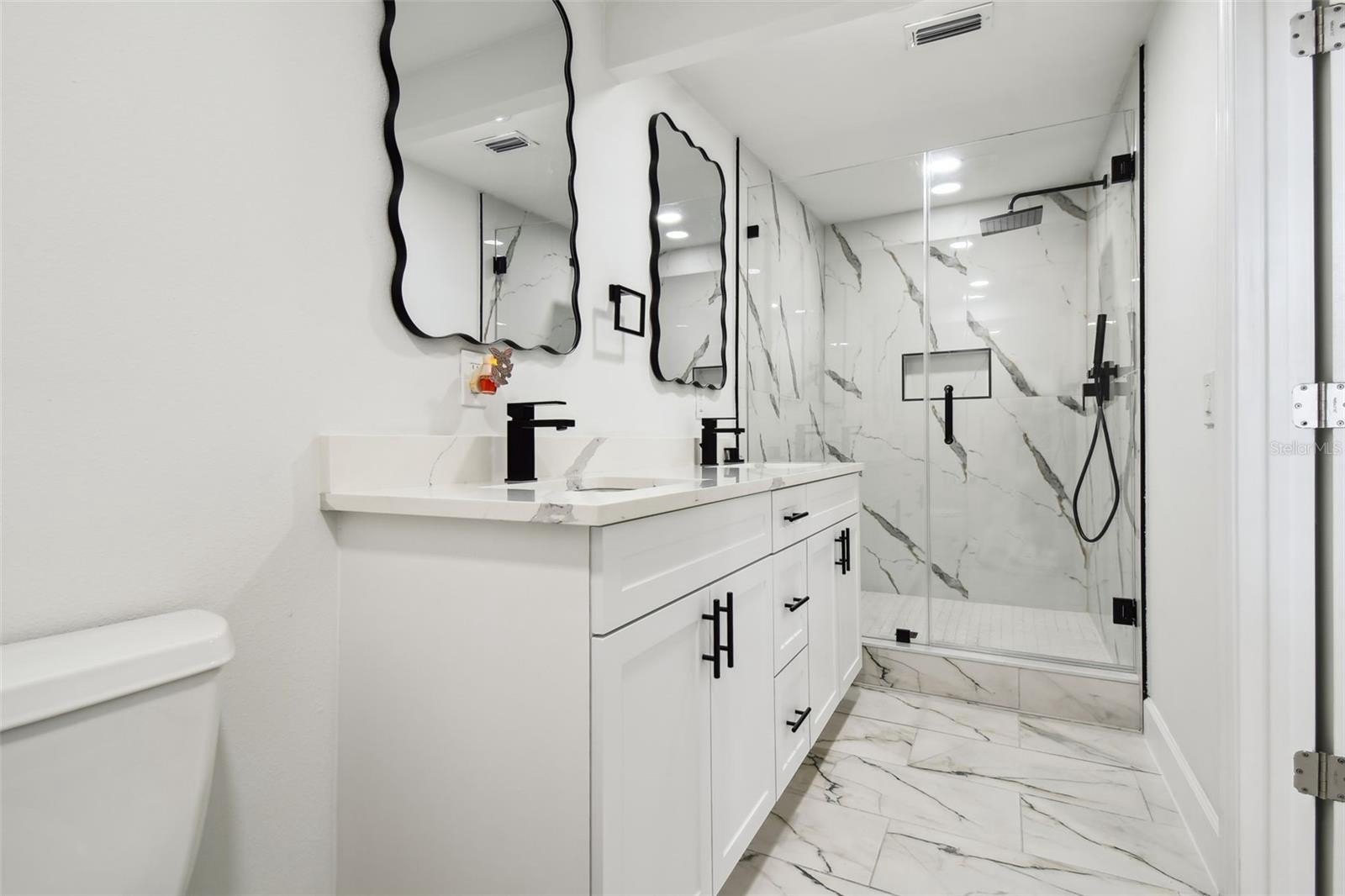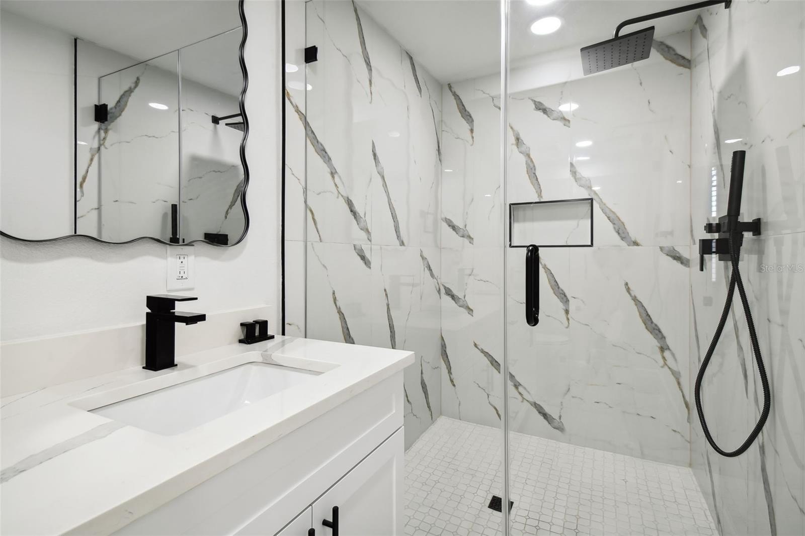 Come and take a look at this recently renovated home, where you'll find a tastefully designed interior that uses bold color contrasts. The living room features a cozy fireplace, creating a warm, relaxing atmosphere. The residence includes three comfortable bedrooms and two bathrooms. The house has a NEW ROOF, NEWER AIR CONDITIONING, NEW STAINLESS STEEL APPLIANCES, PORCELAIN FLOORS THROUGHOUT, NEW LIGHT FIXTURES, NEW FAUCETS, AND A NEW VINYL FENCE, ALL IN 2024. The kitchen is well-equipped and features a modern island with an attractive waterfall-style countertop that blends functionality with aesthetic appeal. The interior is filled with natural light pouring in through large windows, enhancing the overall ambiance of the living spaces. The bathrooms are a luxurious experience, with glass-enclosed showers, stylish tilework, and elegant gold finishes. The backyard is spacious and offers plenty of room for outdoor activities, with a tree providing shade and privacy. The home is located in the Wellswood neighborhood, offering easy access to many nearby amenities. Wellswood Park is an incredible neighborhood in Tampa Bay that provides fantastic access to everything the city has — from the International Mall and the airport to Gulf beaches, surrounded by amazing restaurants, the Bucs stadium, the Tampa Zoo, Busch Gardens, and every new development in the city of Tampa.