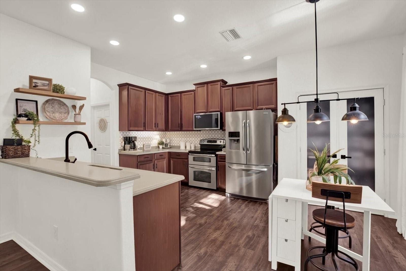 Gorgeous 4 Bedroom Dream Home nestled on a lush conservation lot in the heart of Award-Winning Wilderness Lake Preserve in beautiful Land O’Lakes Florida about a half hour north of Tampa. Lovely curb appeal with a NEW ROOF, majestic oak tree and attractive landscaping. Enter to a dazzling foyer with handsome luxury wood vinyl waterproof plank flooring, dazzling upgraded light fixtures and stylish interior! Wonderful floor-plan and architecture with every space perfectly placed. This is a smart home loaded with smart Google Home and other upgrades, such as a new wifi controlled AC system, irrigation, lights, security and more. The great kitchen is the center with rich-toned wood cabinetry, full size closet pantry, breakfast bar and a dining nook overlooking the inspirational views of the backyard and beyond. Epic outdoor living with a covered lanai, jacuzzi hot tub and sprawling backyard full of fun zones, such as swings, campfire area and plenty of room for playing and practicing sports and games. The backyard features upgraded almond vinyl fencing on the sides and the back is left open to enjoy the panoramic views of the nature preserve. Beautiful formal living and dining rooms branch off of the kitchen. Upstairs the primary suite is an oasis of tranquility with conservation “treehouse-like” views, spacious bedchamber and a fully loaded en-suite complete with garden tub and walk-in shower. Another three bedrooms and a second full bath upstairs, each room with its own special character. Great 2 car garage with automatic doors and extra ceiling mounted storage. Super LOW HOA only $256 year. The combination of CDD and HOA cost is the best value around in terms of amenities included compared to overall cost. The Wilderness Lodge Amenities are extensive: Including: A lakeside Lodge-Styled four building recreation complex offering fishing and boating docks, free loaner kayaks and canoes, lagoon and heated lap pools, world-class gym overlooking peek-a-boo views of the lake and including a whole line of Peloton Bikes and the very best equipment, Saunas in both locker-rooms, outdoor spa, barbeques around the pool area, movie theater, party rooms, nature center, business center, sports courts include tennis, pickleball, basketball and sand volleyball. Three story high treehouse style playground, many parks and planned events. All of this and the combination of CDD and HOA fees are less than $200 per month. Main entrance has a gated guardhouse called "Ranger Station" but the gates are always open and high-resolution video cameras instead of guards. The Wilderness Lodge is staffed and open 7 days a week. Land O’Lakes has great schools including many public charter and magnet schools such as Countryside Montessori, Sanders STEAM, Angeline High-Tech, Classical Prep, and Land O’Lakes High School offers International Bachelorette, AP, and Dual Enrollment programs. LOL also offers great recreational and sports facilities. Land O’Lakes offers rural charm but is a quick drive to malls, major shopping and about a 30-minute commute to Tampa. Wilderness Lake Preserve is only a minute from Publix and The Groves Golf and Country Club. The front of WLP has many restaurants, cafes and businesses including Dunkin, Papa Johns, and Starbucks coming soon. This is the home and community you’ve been looking for!