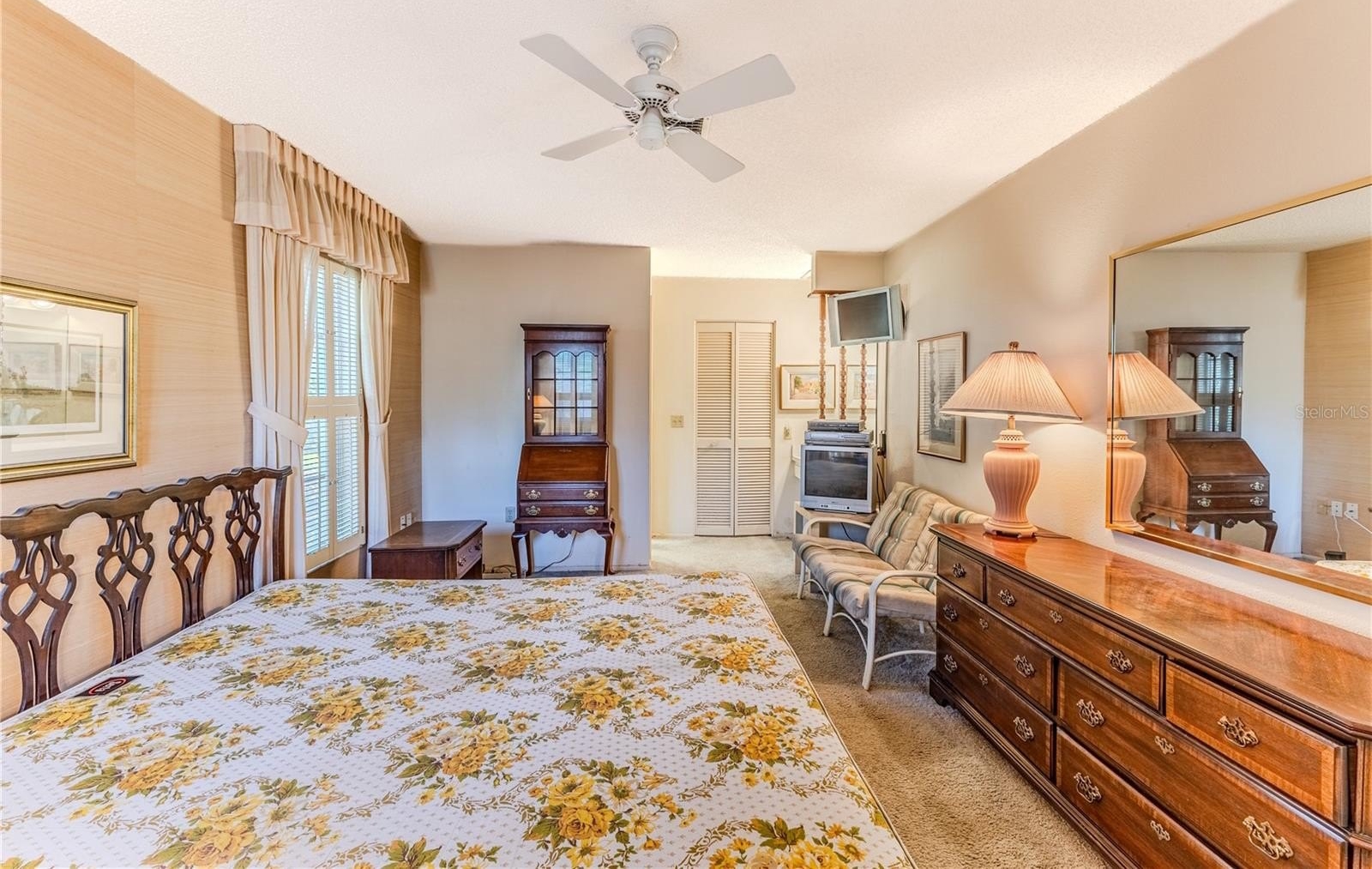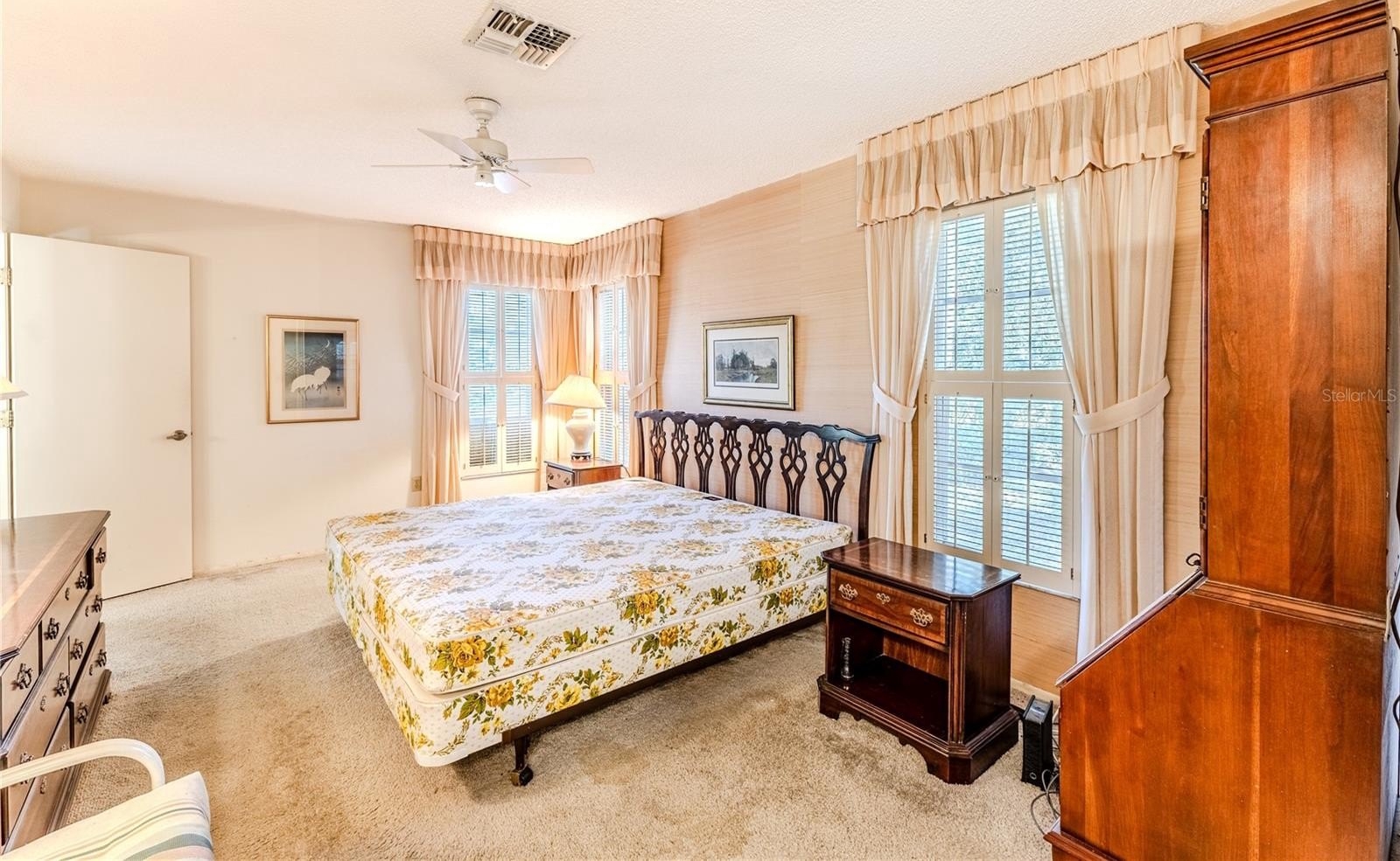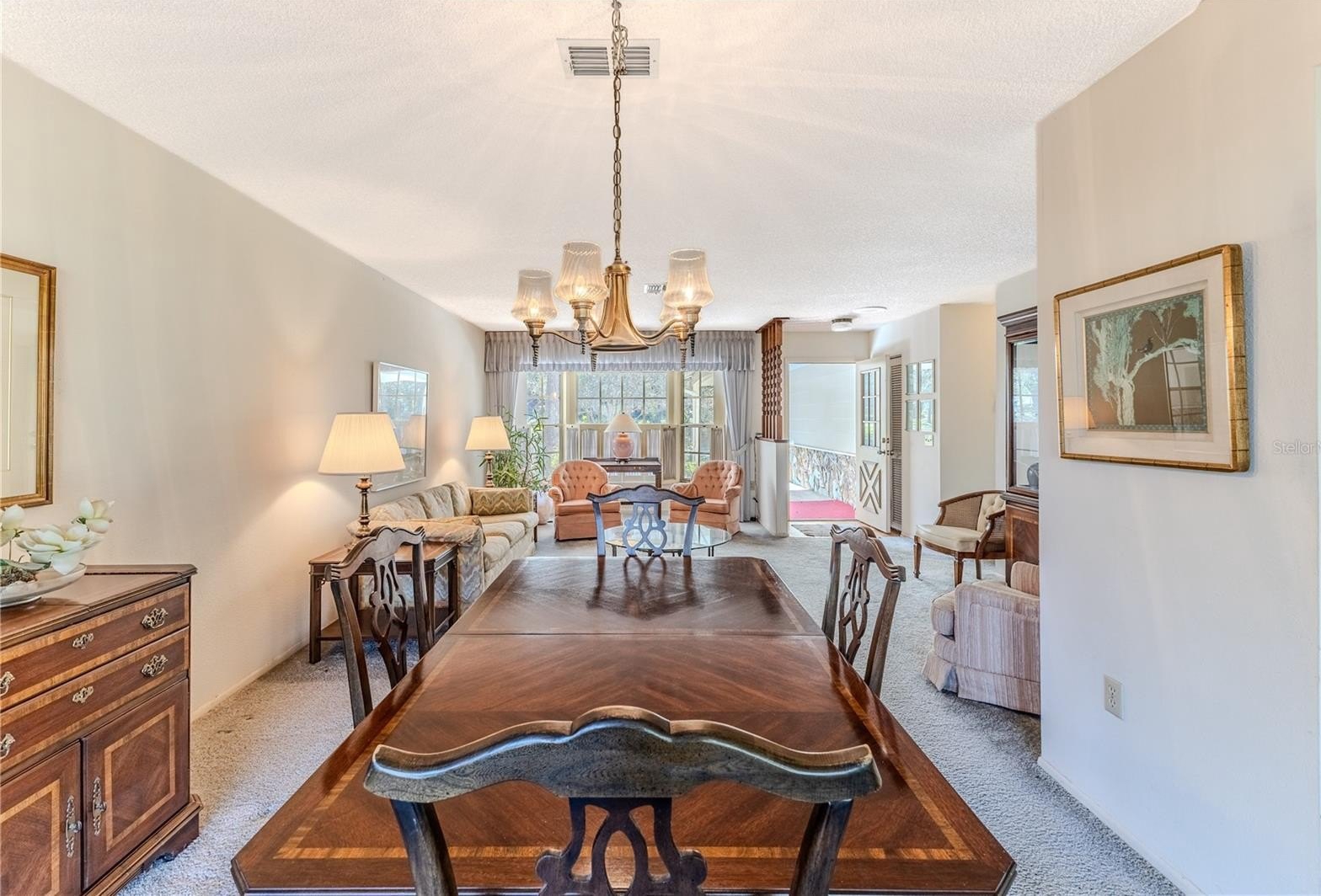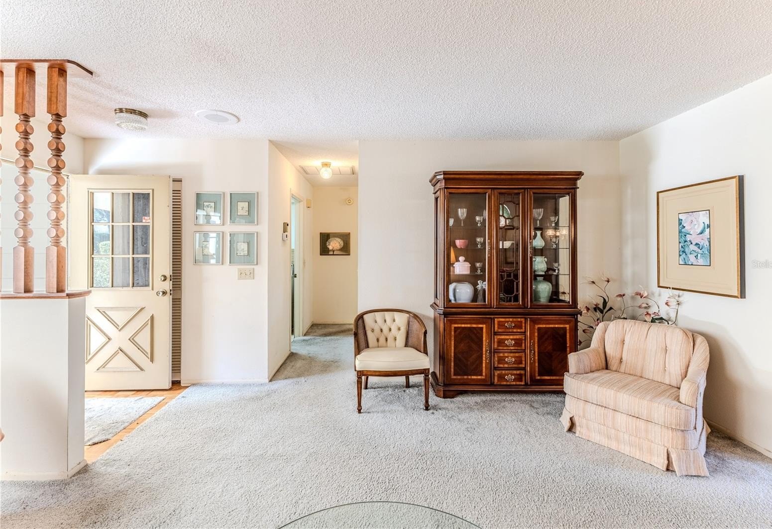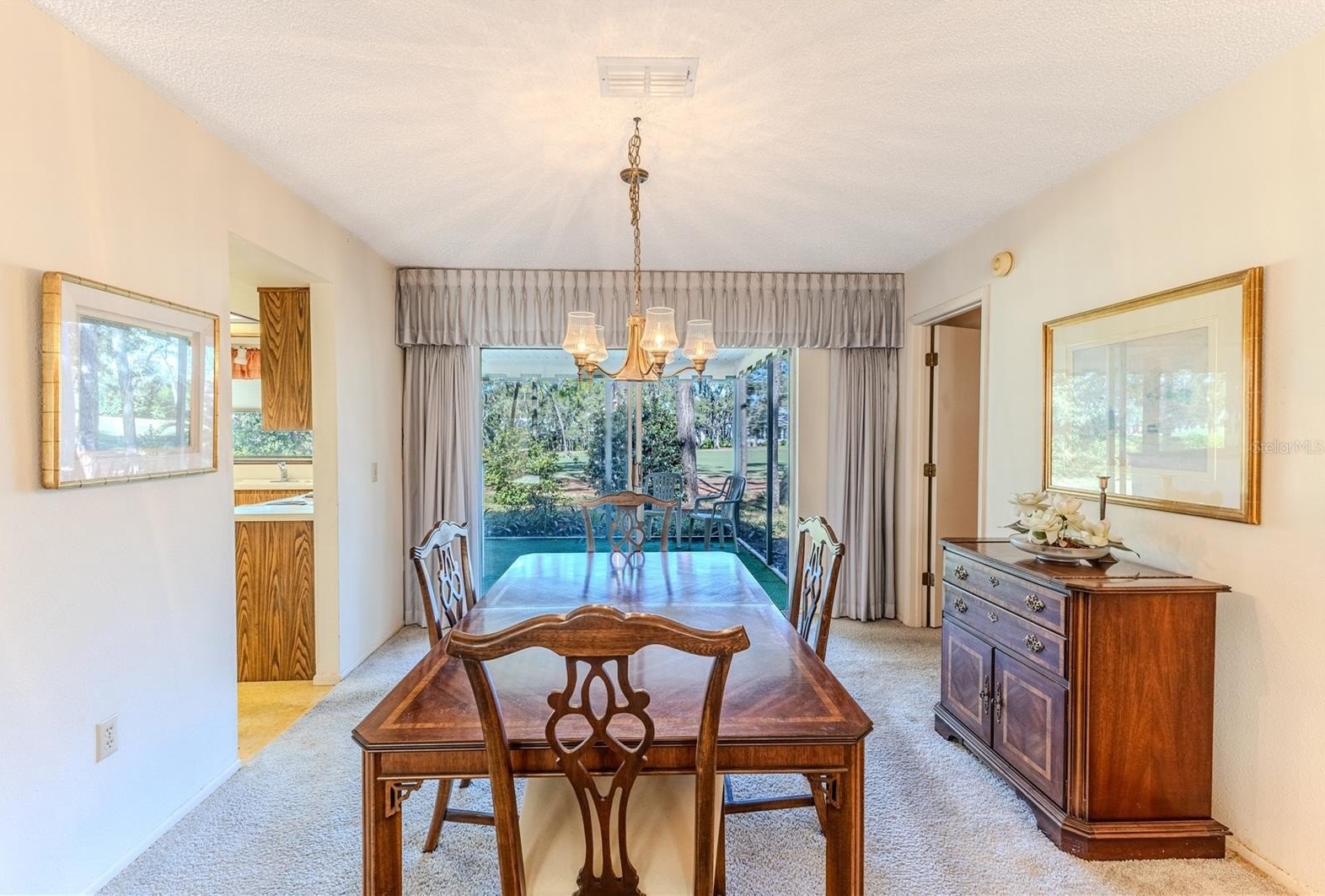 This charming Buttonwood model is a 2-bedroom, 2-bathroom 2-car garage home located on Hole #1 of The Lakes Golf Course, featuring peaceful views of lush greens and gardens. Step onto the inviting covered front porch and into the spacious living and dining room combination, ideal for relaxing or entertaining. The primary suite features a large walk-in closet, vanity area, and an en-suite bathroom with a shower. The kitchen is bumped out to maximize space and takes full advantage of the stunning golf course views. Enjoy casual living in the family room, complete with a dry bar and ceiling fan, that opens seamlessly to the screened lanai—a perfect spot for true Florida living. The guest bedroom offers a generous closet and is conveniently located across from the full guest bathroom with a tub/shower combo. Additional highlights include: Furnished and move-in ready; Laundry room with utility sink, washer/dryer, and shelving; Two-car garage with extra storage; Hot water heater (2018); HVAC (2017); Roof (2007).; garage door (2021). Timber Pines is an award-winning, guard-gated, 55+ deed-restricted community. Residents enjoy three 18-hole golf courses, a 9-hole pitch & putt, tennis, 12 pickleball courts, two community swimming pools, a country club restaurant and bar, fitness center, billiards, performing arts center, woodworking shop, and over 100 social clubs and activities. If you're dreaming of a home with tranquil golf course views and beautiful gardens, this one awaits your personal touch. Call today to see this gem in person.