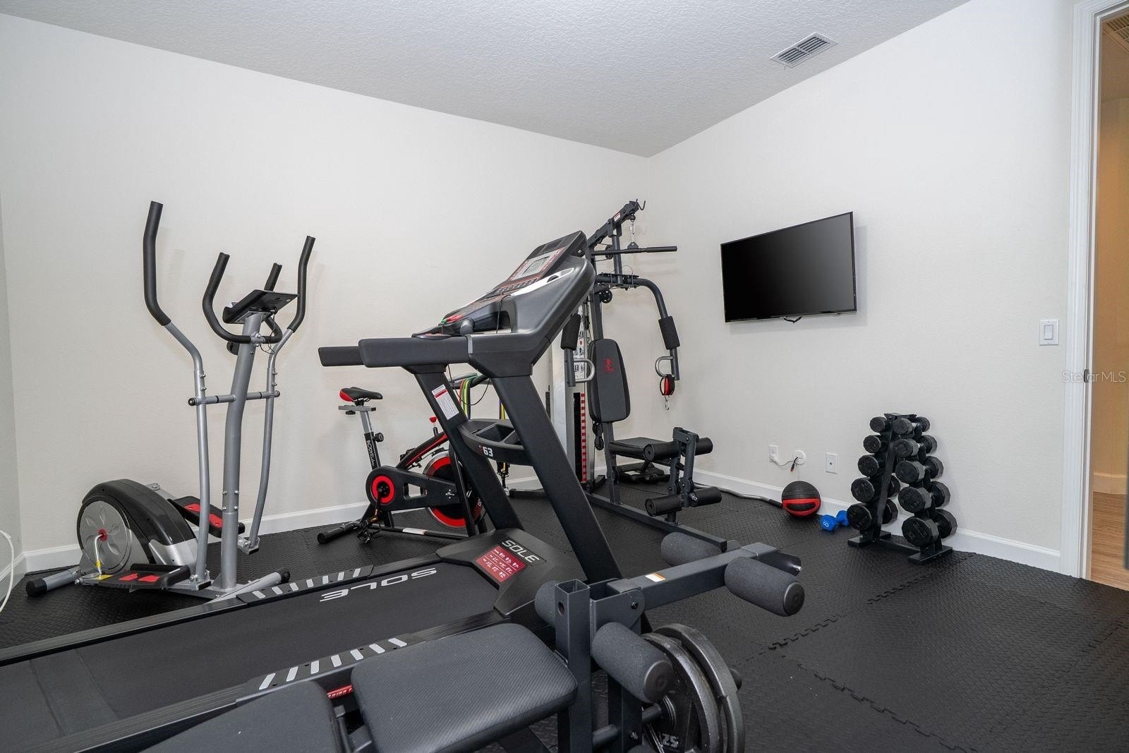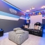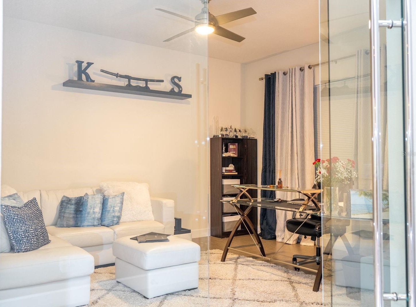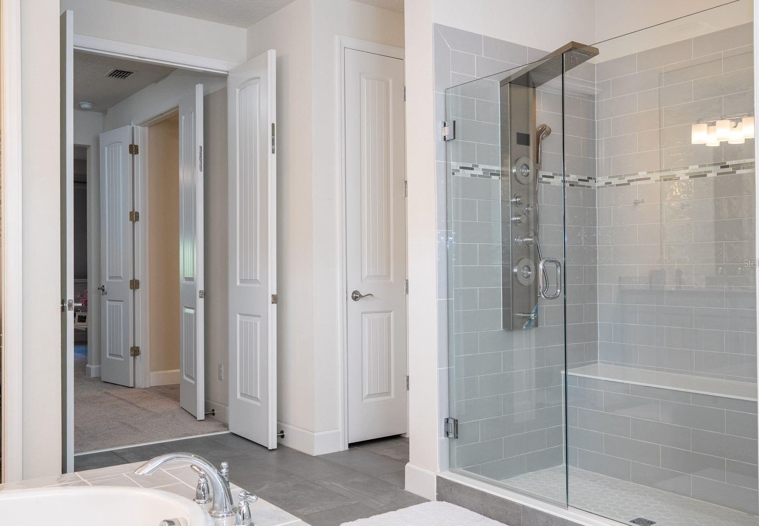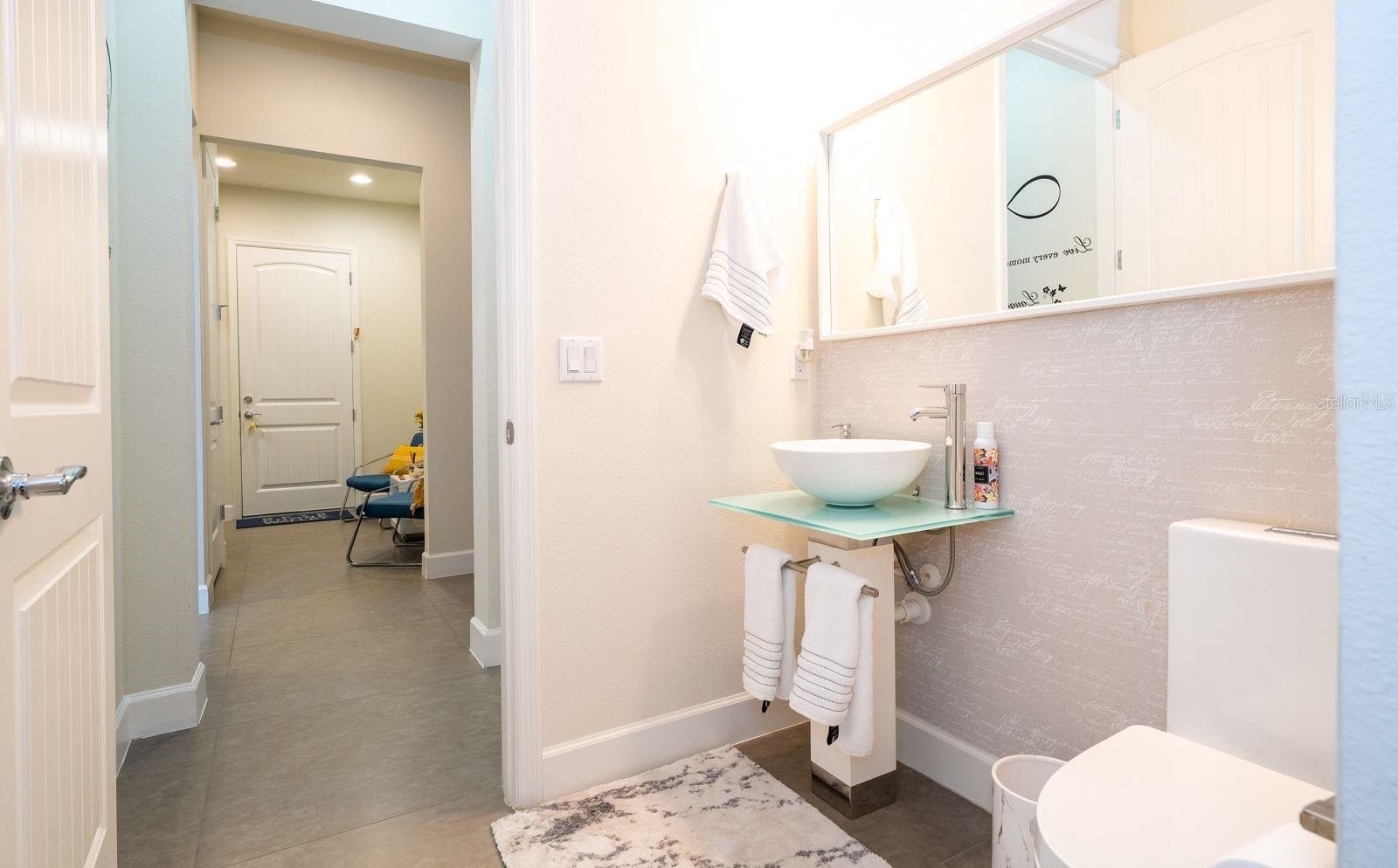 The home offers a thoughtfully designed floor plan, with the primary suite and three additional bedrooms located on the upper level, as well as a private movie theater complete with a 95-inch screen and projector. A full bathroom is conveniently located on the main floor for guests. Elegant glass stair rails, 8-foot interior doors, custom window treatments, a show-stopping dining room chandelier, and personalized his-and-her closets add to the home’s distinct sense of luxury. Step outside to a spacious backyard with a covered lanai, a separate entry to the pool bath, and space designed for both relaxation and entertaining. The oversized tandem three-car garage provides ample room for vehicles and storage.