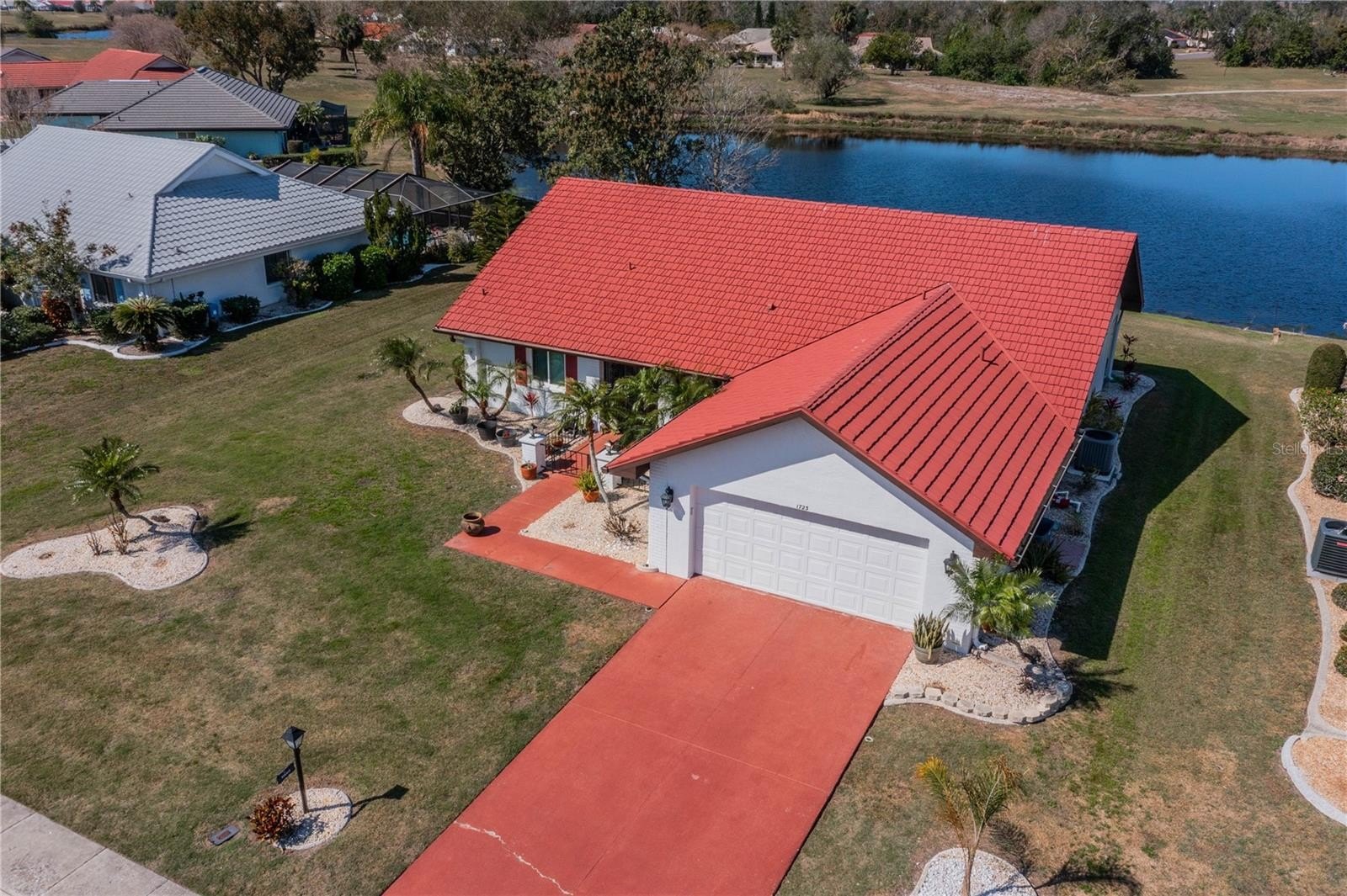 Recent updates include hurricane-impact windows, new electrical panel, irrigation pump (2022) using reclaimed pond water, garage door opener, exterior paint (2021), and a metal roof with a transferable 40-year warranty for long-term peace of mind.