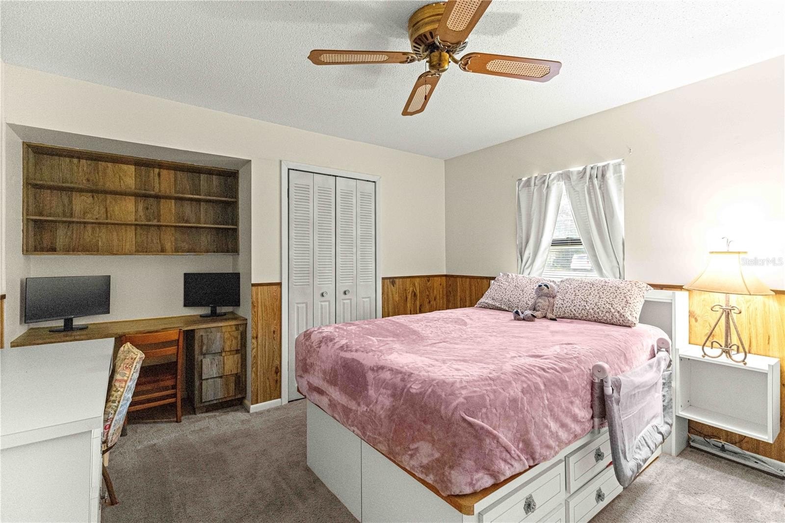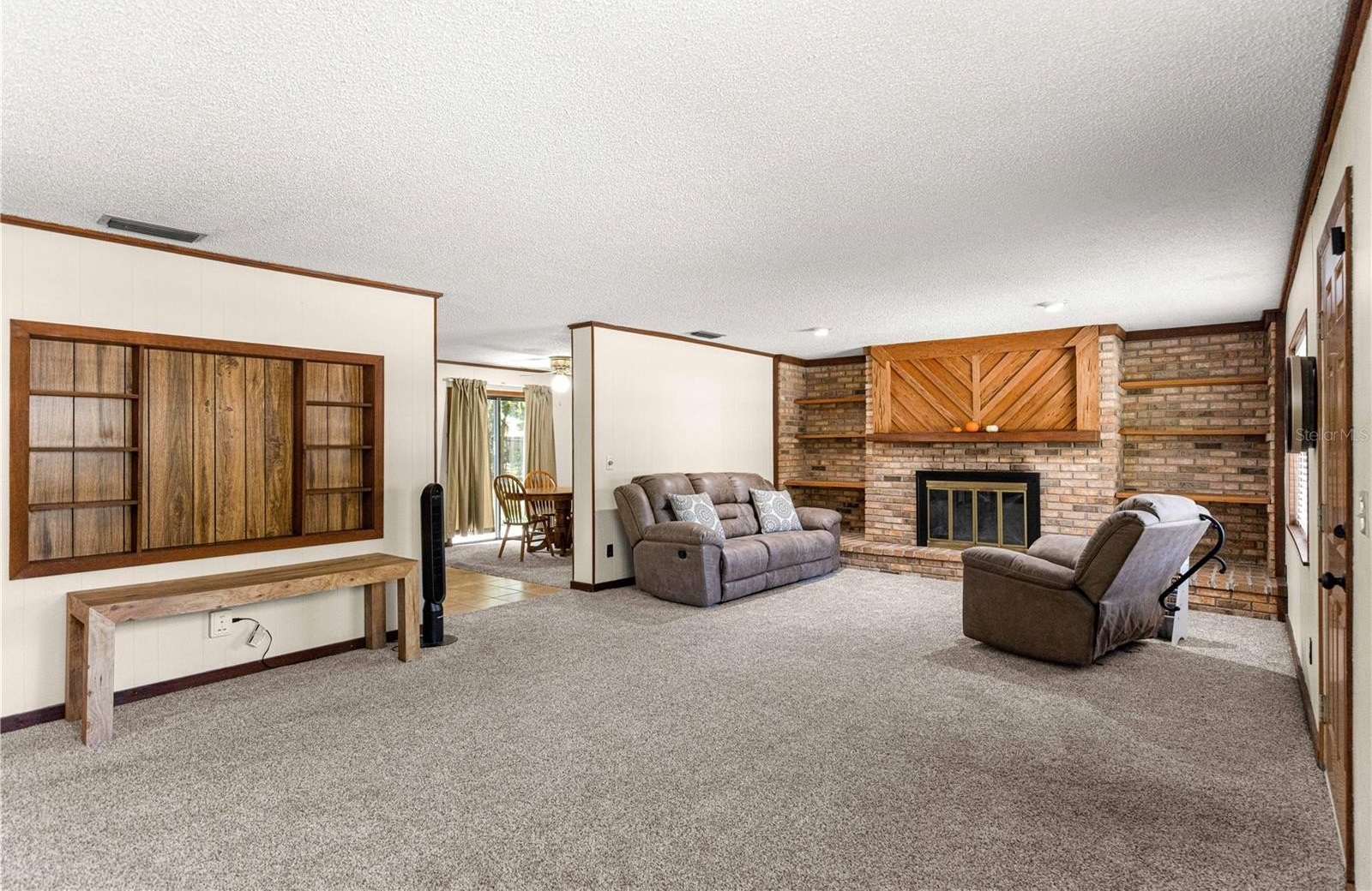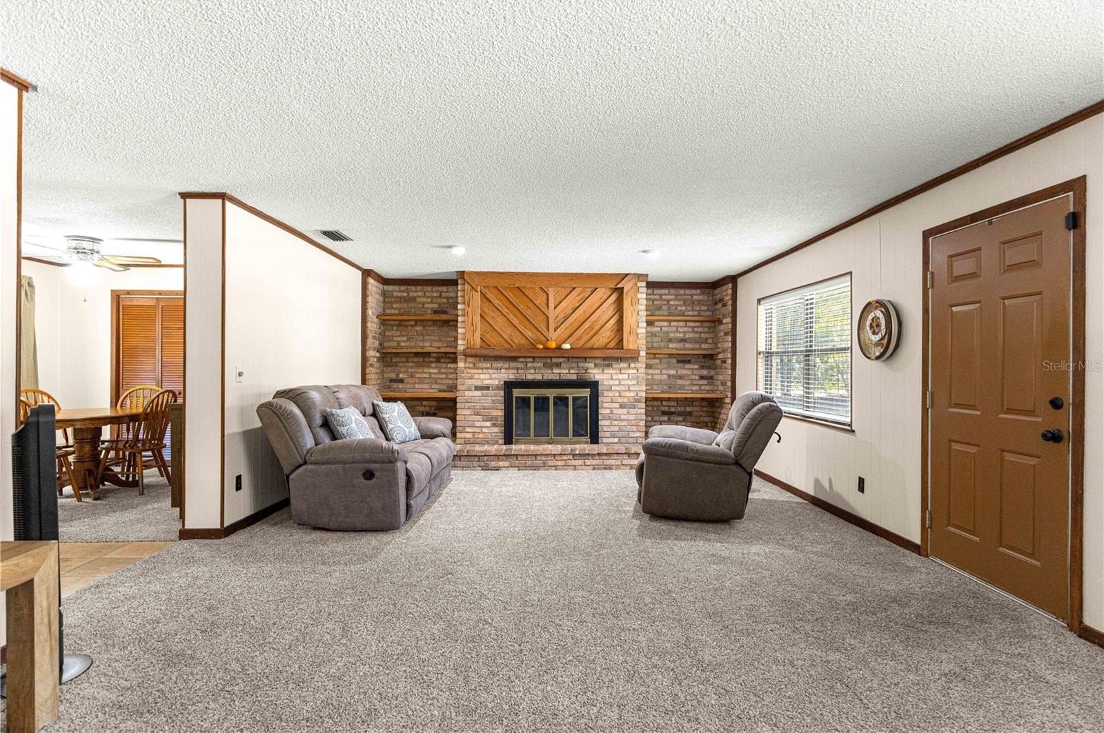 Solid construction that was built to last. Concrete Block 3 bedroom, 1.5 bath home built in 1969 in well established NE Ocala neighborhood. This home has been lovingly well maintained with a new roof in 2024, new A/C in 2021, and new carpet. Great circular drive in the front, fenced in yard in the back, this home is situated on a nice sized .33 acre lot. With 1,404 sq ft of living space under ac/heat, you will find a light, bright kitchen with a counter height bar and lots of cabinets plus a separate dining area. In the large living room you will find a brick wall with a fireplace (to be used with electric logs). The primary suite features a walk-in closet and a half bath. You will find lots of original built-ins in the home, as the original owner was a carpenter and owned the home until 2024, when the present owners purchased it. Other features include INSIDE Laundry, Open Back Lanai with Tile, Large Covered Front Porch and a Storage Shed.