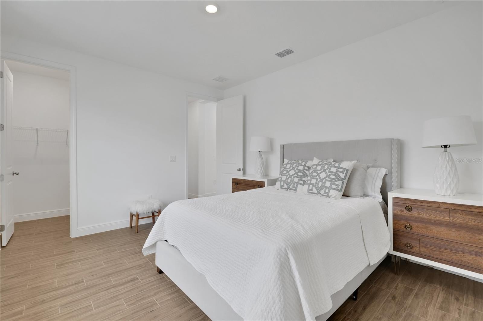 located on the main floor, providing privacy and ease of access, while the additional bedrooms are situated upstairs along with a versatile bonus room—perfect for a