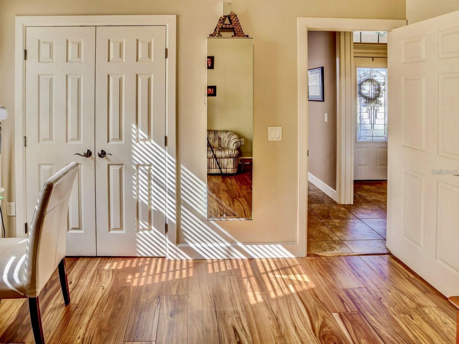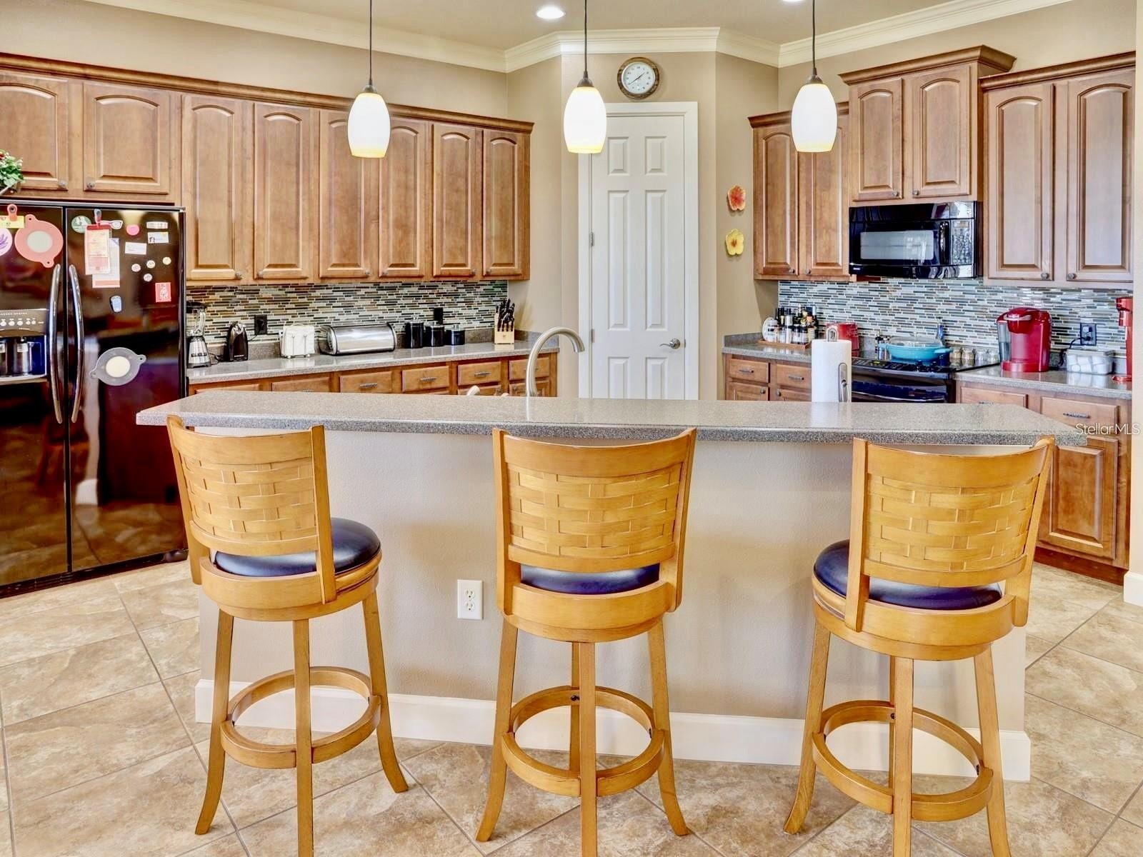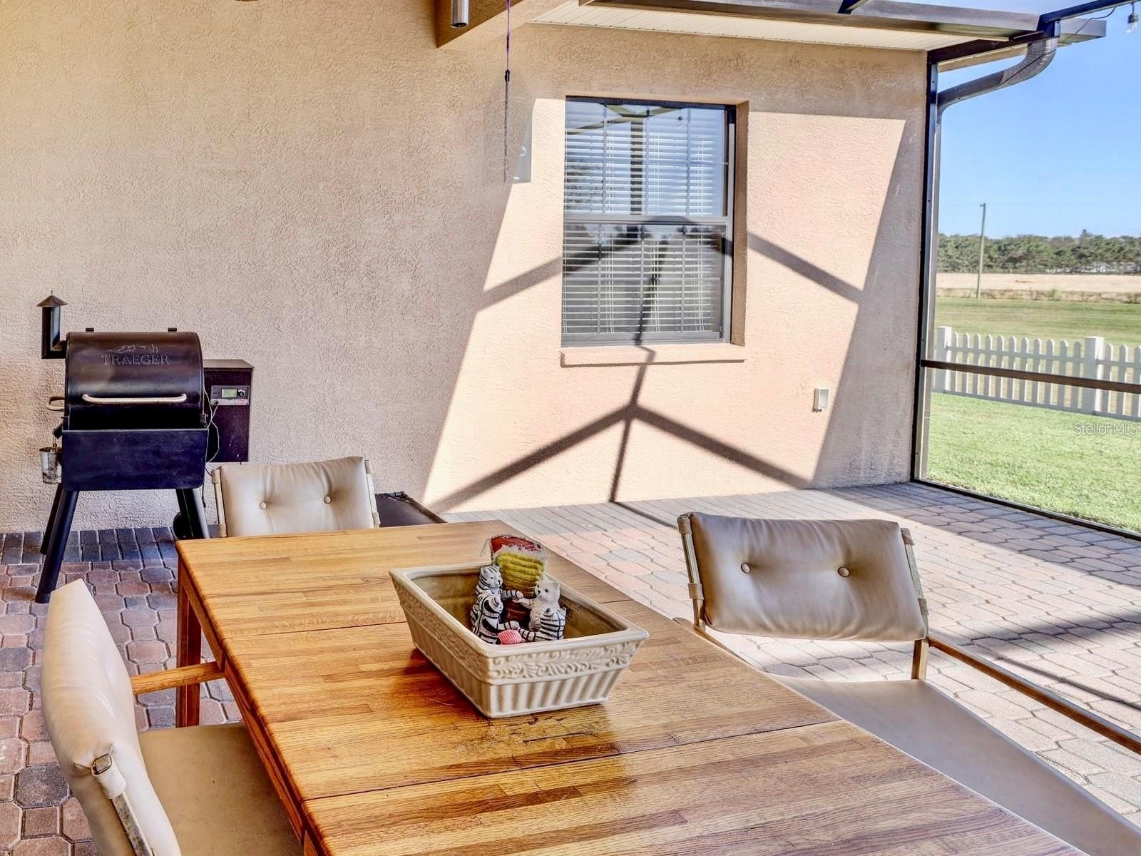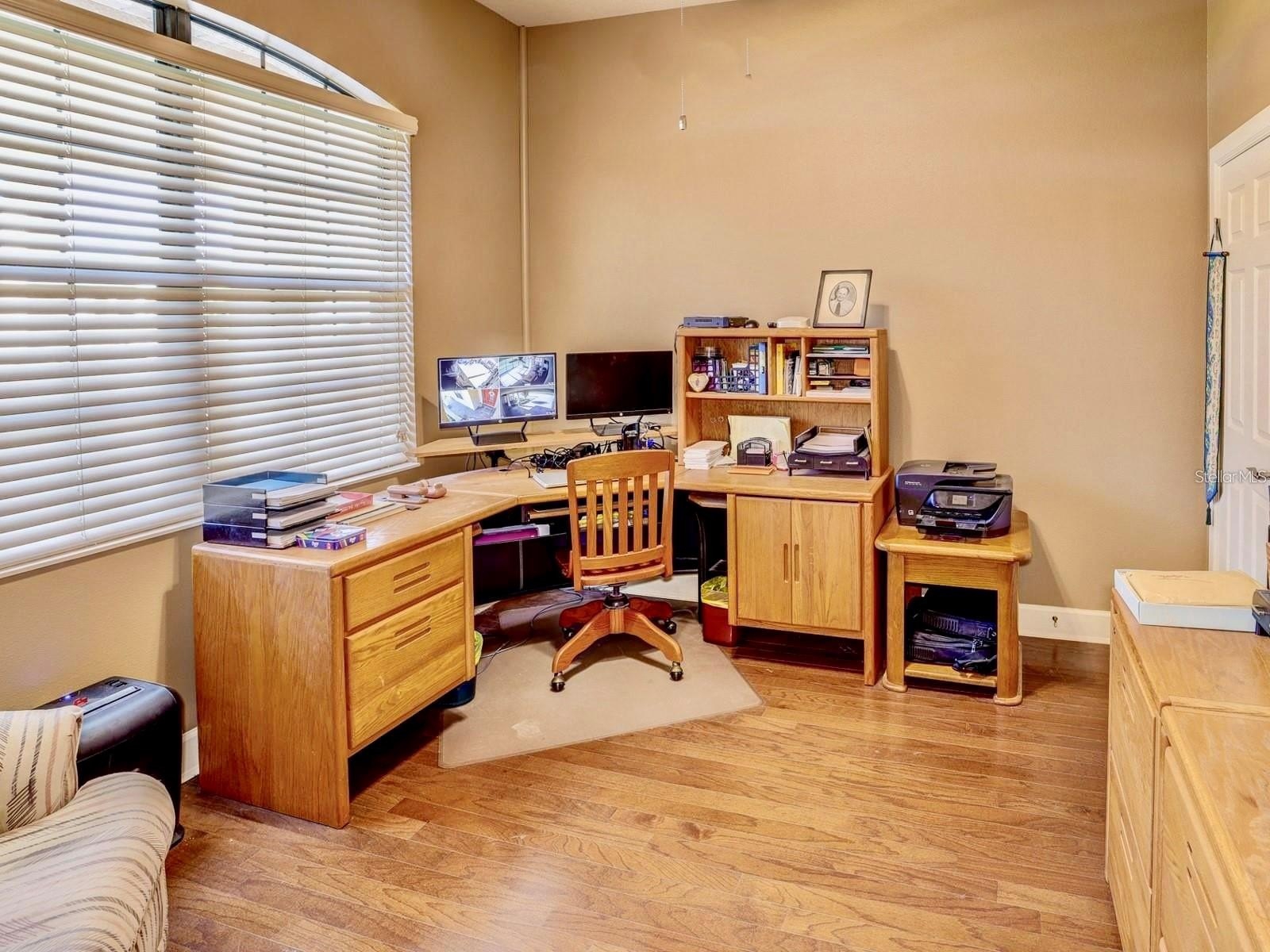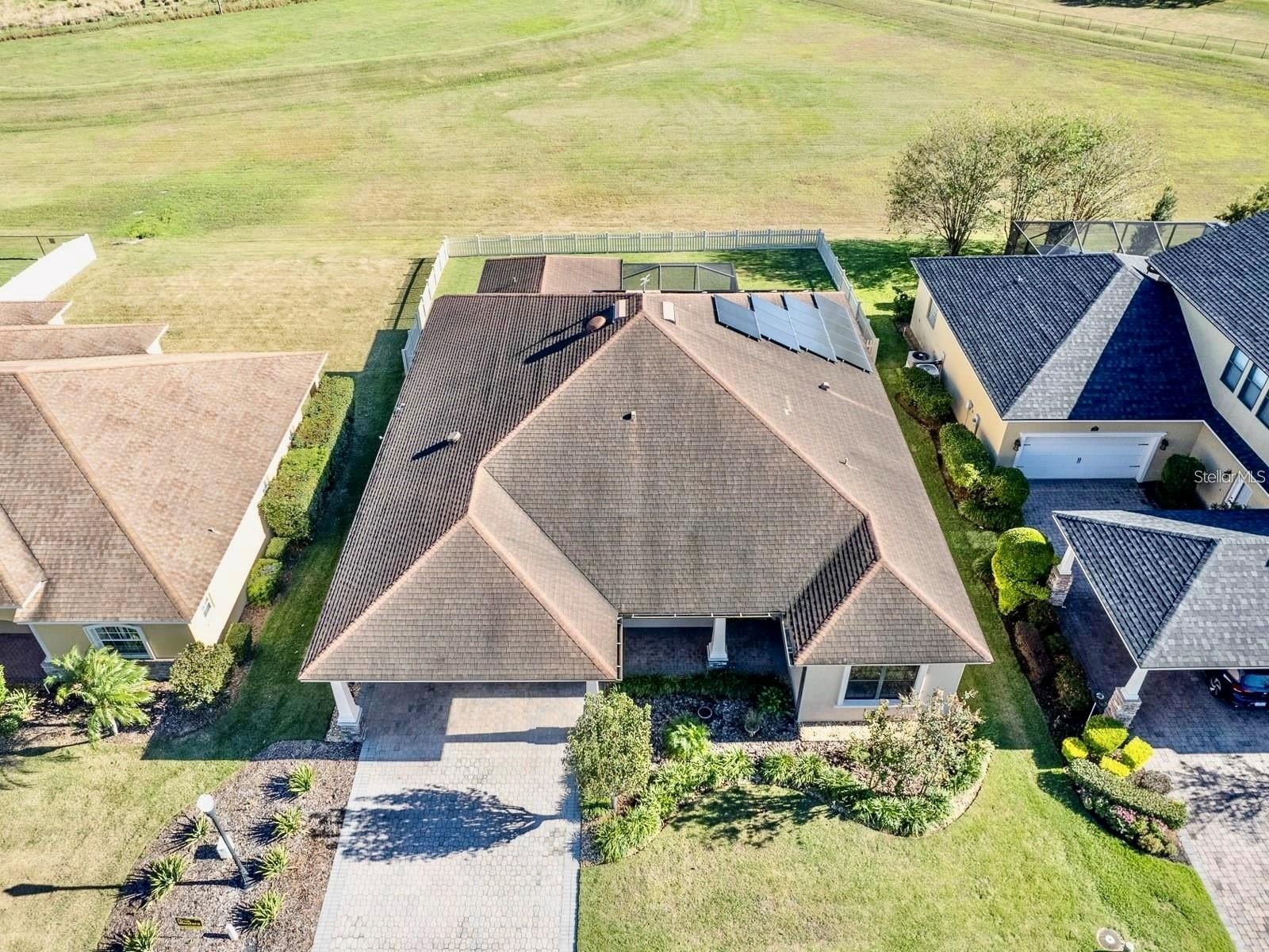 Welcome to this stunning Hulbert-built 3-bedroom, 2-bathroom home with a private office in the highly desirable gated community of Magnolia Walk. Built in 2008 and beautifully maintained, this move-in ready, energy-efficient home features a fully solar-powered 24-panel (10kW) system, a brand-new roof installed in December 2024, and a tankless water heater (2022) for exceptional efficiency and savings. The impressive 4-car tandem garage (780 sq. ft.) includes epoxy flooring, ceiling fans, built-in shelving, and its own heating and cooling system—perfect for storage, hobbies, or a workshop—plus an additional 2-car covered carport. Inside, you’ll love the open, elegant design with high ceilings, crown molding, 8-foot doors, solid surface countertops, custom wood cabinetry, and hardwood and tile floors throughout. The spacious 400+ sq. ft. screened lanai (new screens in 2024) overlooks a private, fully fenced backyard with no rear neighbors, ideal for relaxing or entertaining. Recent updates include fresh interior and exterior paint (2022), a paver driveway and front porch for great curb appeal, and an irrigation system to keep the lawn lush. Enjoy the peace of mind and charm of Magnolia Walk, a quiet, gated neighborhood with sidewalks, streetlights, underground utilities, and a low annual HOA of just $550. The electric bill averages around $8/month. This meticulously maintained, solar-powered home perfectly blends comfort, elegance, and sustainability—schedule your private showing today!