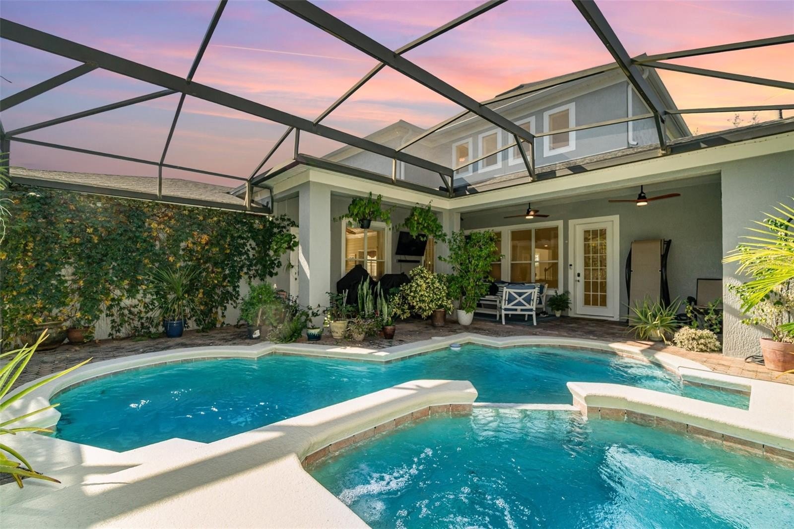 Inside, thoughtful details shine: Upgraded GE Cafe Series Appliances, Central Vac System with all accessories, New Tankless Instant Hot Water Heater, Updated Garage Door System and Brand New Washer/Dryer Combo, Colonial Style Shutters, designer window treatments, chair rails, recessed lighting, tray ceilings, French Doors, and a true butler’s pantry for effortless entertaining. Artful murals add personality, while multiple living and dining zones make gatherings easy—open the French doors and journey to a refreshing experience out by the pool.