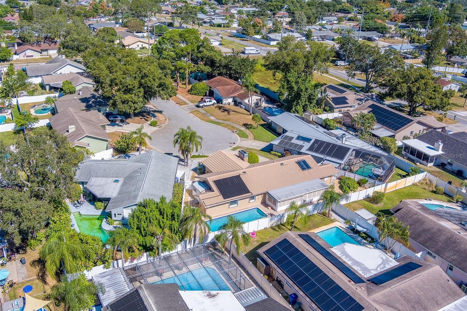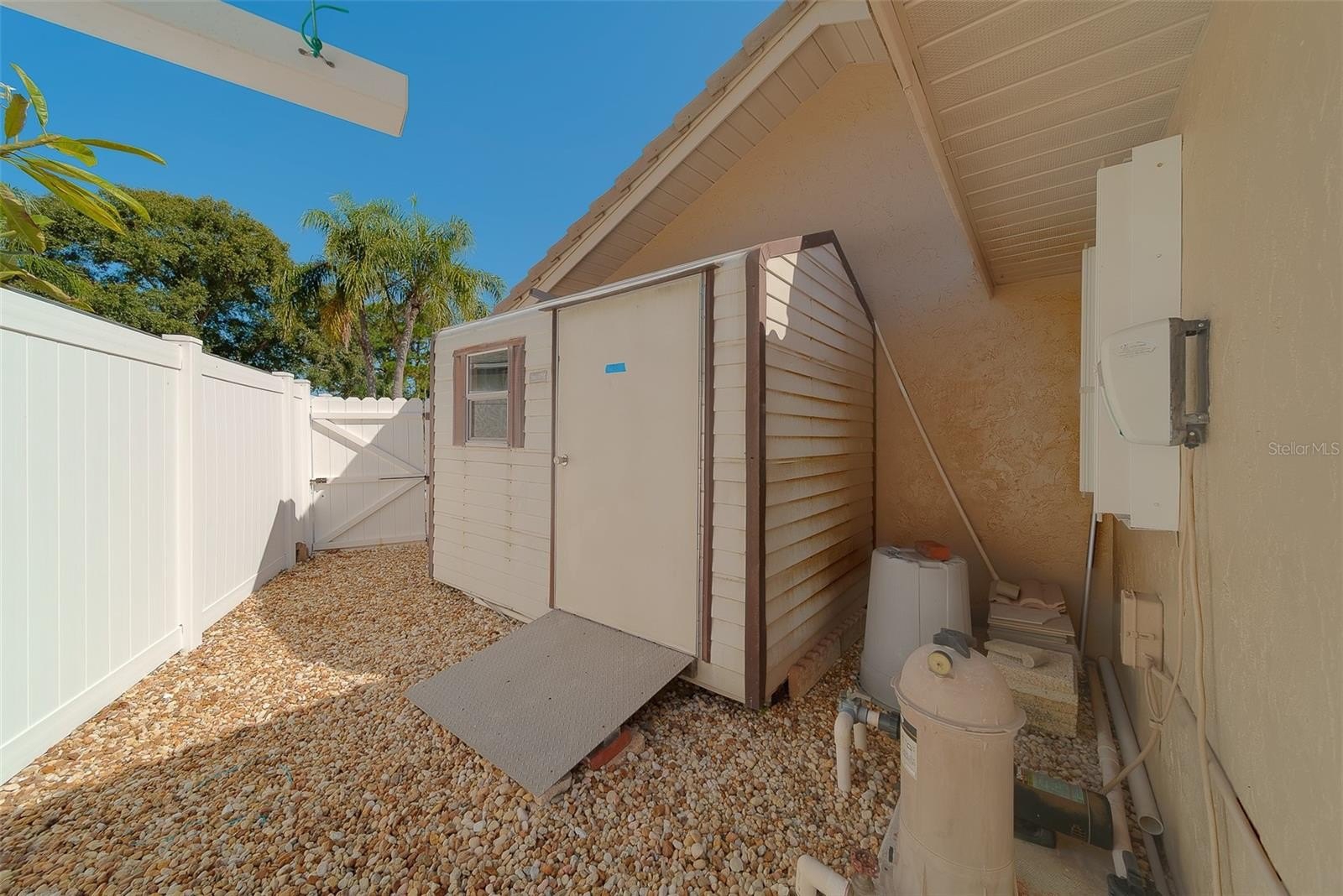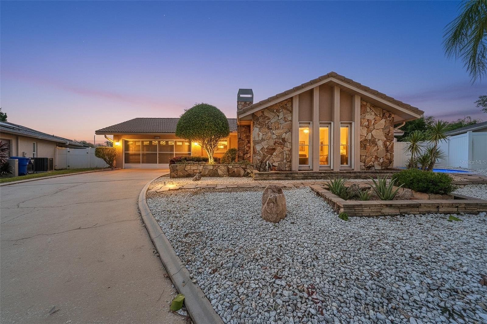 Welcome to this stunning 3-bedroom, 2-bathroom pool home with an oversized 2-car garage, ideally located on a peaceful cul-de-sac in the heart of Largo. This home has been meticulously maintained and offers a perfect blend of comfort, style, and convenience. Step inside to find a warm and inviting front family room featuring soaring volume ceilings and a cozy fireplace — the perfect spot to unwind. The spacious kitchen is a chef’s delight, boasting granite countertops, stainless steel appliances, and plenty of cabinet space. At the back of the home, a fully finished, heated and cooled Florida room spans an impressive 32 feet, providing extra living space and gorgeous views of the sparkling pool. Step outside to your private, fully fenced backyard — complete with white vinyl fencing, lush xeriscape landscaping, a beautiful stamped concrete patio for relaxing or entertaining, and a storage shed for all your extras. The home also features a durable ceramic tile roof, an oversized 2-car garage with a separate office or storage area, and impeccable landscaping that requires minimal maintenance.