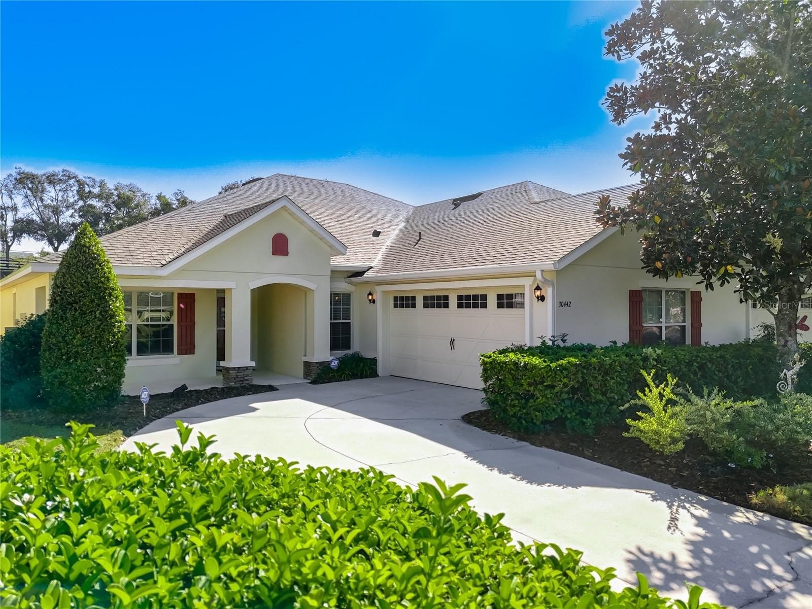 Welcome to this beautifully maintained 3-bedroom, 2-bath villa located in the highly desirable gated community of Sullivan Ranch. This home offers a bright and open floor plan with tile flooring in the main living areas and cozy carpet in the bedrooms. The spacious kitchen features wood cabinetry, under-cabinet lighting, stone countertops, and a charming breakfast nook. The living area includes a convenient coffee bar and opens to a screened-in porch, ideal for relaxing or entertaining. The primary suite offers a peaceful retreat with a walk-in shower, garden tub, dual vanity, and his and her closets. Additional features include an inside laundry room with washer and dryer, a large 2-car garage, and a roof replaced in 2023. Enjoy low-maintenance living with an HOA that covers yard care, irrigation maintenance, exterior painting, roof repair/replacement, and perimeter termite treatment. Community amenities include a resort-style pool, clubhouse, fitness center, lighted walking trails, dog park, and beautifully landscaped grounds with a scenic walking trail throughout the neighborhood. Conveniently located just minutes from historic downtown Mount Dora, Sanford, and the Central Florida beltway. Call today to schedule your private tour!