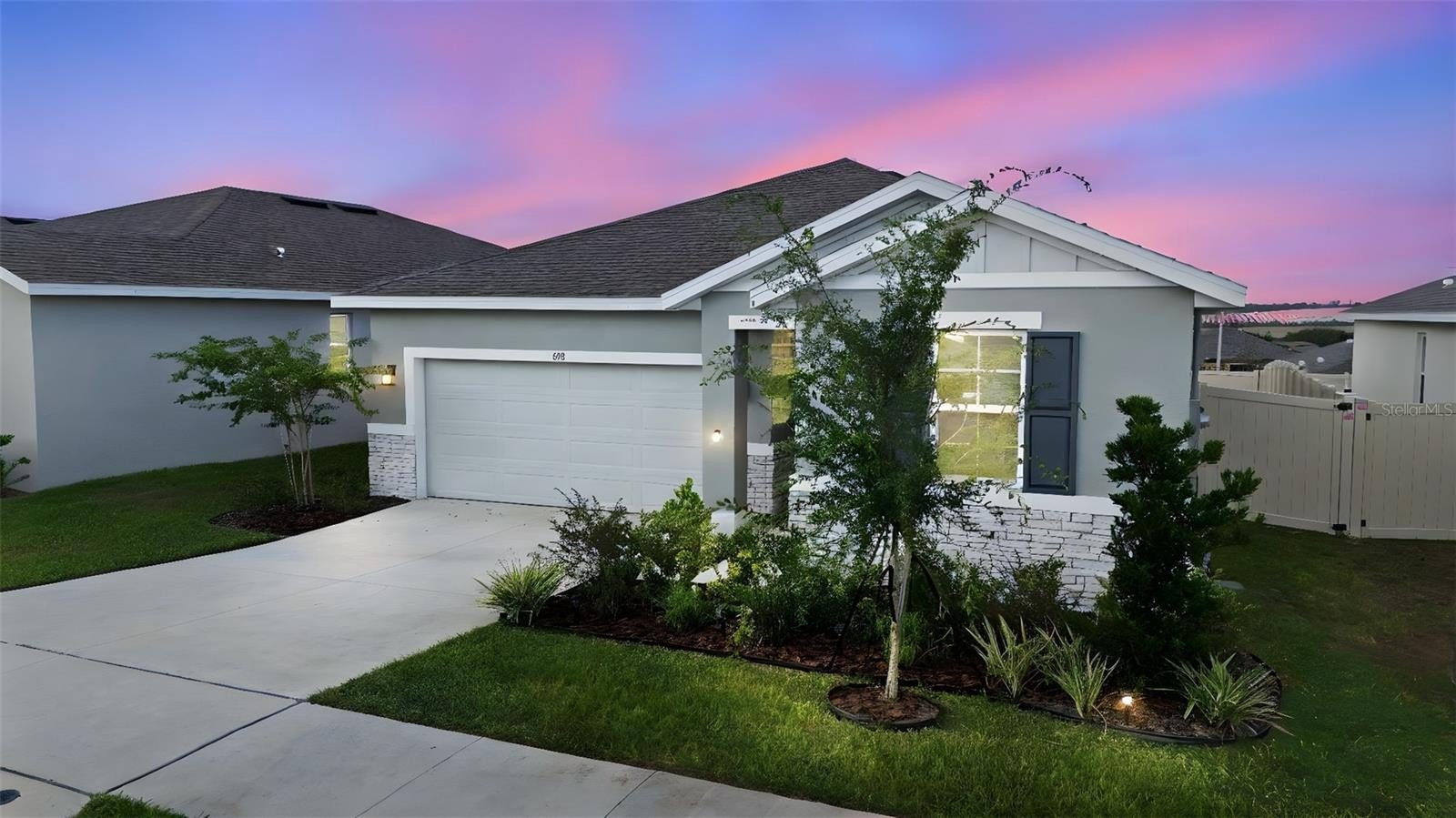 Practically BRAND NEW with Upgrades Galore! Why wait to build when you can move right into this stunning home built in 2024 that’s been thoughtfully upgraded inside and out? From the moment you arrive, the hardi board and brick accented exterior, upgraded landscaping, and fresh mulch set the tone for exceptional curb appeal. Inside, you’ll find a light-filled open layout with wood plank tile flooring throughout the main living areas and LVP in the primary bedroom and bedroom 3 for style and durability. The chef’s kitchen is a true centerpiece, boasting a stylish backsplash, custom lighting, and upgraded fixtures, oversized island and all appliances stay, including washer and dryer! The spacious family room is perfect for entertaining, featuring a mounted TV setup with hidden conduit for wiring for a sleek look, while custom ceiling fans add comfort in every room and even out to the screened lanai. Retreat to the primary suite where the primary walk in shower offers an upgraded handheld shower head and thoughtful finishes. Additional highlights include whole-home blinds, a Ring doorbell, a new vinyl fence, and upgraded exterior details! Practical upgrades like the Generac generator with dedicated outlet, LED can lighting in the garage, and garage door opener bring peace of mind and everyday convenience. Perfectly located, this home offers the best of both worlds! Just about an hour to the thrills of Sebring International Raceway in one direction, and the vibrant city life of Tampa in the other. Whether you’re seeking weekend adventures or quiet evenings at home, this property delivers it all. With modern design, upgraded finishes, and a prime location, this home is move-in ready and just waiting for you! Schedule your personal tour today!