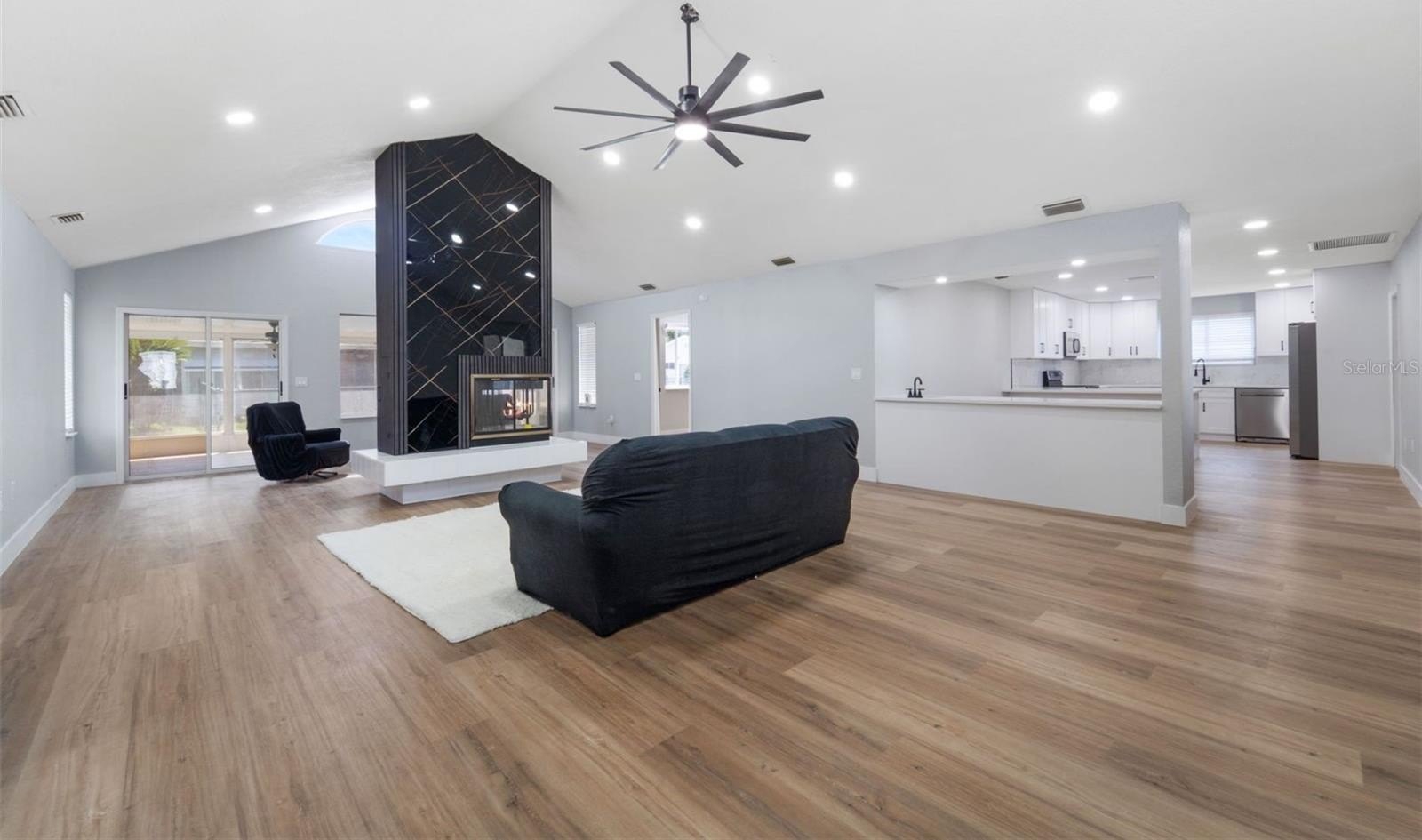 This stunning 3-bedroom, 2-bathroom home has been fully updated from top to bottom, offering a perfect blend of style, comfort, and functionality. As you step inside, you’ll immediately notice the spacious open floor plan that creates a natural flow between the living, dining, and kitchen areas. The living room is warm and inviting with a cozy fireplace, perfect for gatherings or quiet evenings at home. The heart of the home is the beautifully renovated kitchen, featuring brand-new quartz countertops, custom cabinetry, and sleek new stainless steel appliances. Whether you love to cook or simply enjoy entertaining, this kitchen offers both elegance and practicality. The bathrooms have been thoughtfully designed with custom finishes, modern fixtures, and high-quality details that give a spa-like feel. Fresh paint throughout the home, paired with all-new flooring, creates a bright, clean, and move-in-ready atmosphere. Each of the three bedrooms is generously sized, offering ample space for rest and relaxation. The oversized two-car garage provides extra room for storage, a workshop, or hobbies. Every detail in this home has been carefully considered, making it a true turnkey property. From its stylish upgrades to its functional layout, this home is the complete package—ready for its next owner to move in and start enjoying immediately.