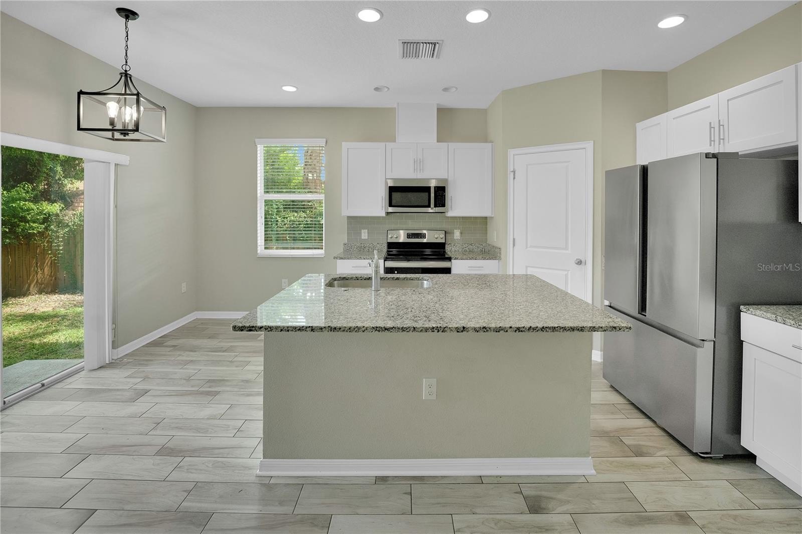 One or more photo(s) has been virtually staged. Price reduced — motivated seller! This energy-efficient 2021-built two-story home offers 4 bedrooms, 2.5 bathrooms, and 1,880 sq. ft. of comfortable living space. Priced to sell! No HOA and no flood insurance required. Step inside to a light and airy open floor plan with a guest bathroom. The designer kitchen features stainless steel appliances, a large island with a granite countertop, bright lighting and access to the patio and large fenced-in backyard through sliding glass doors.