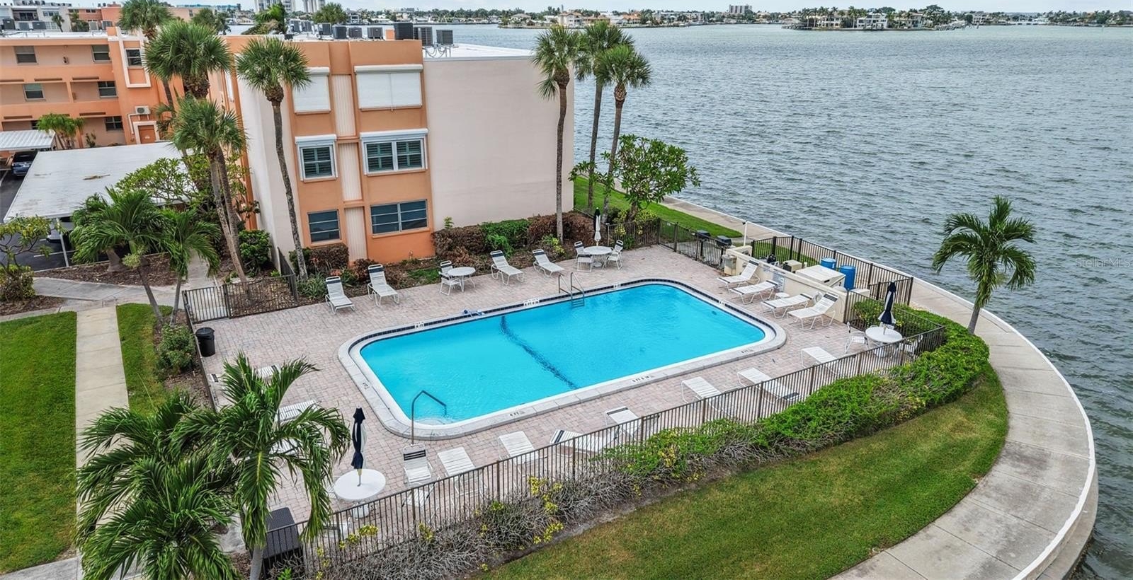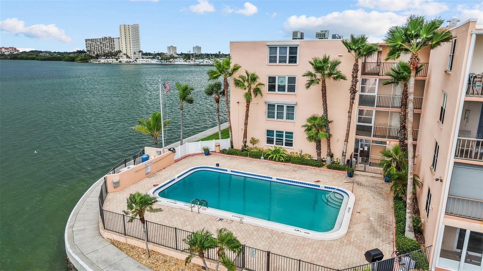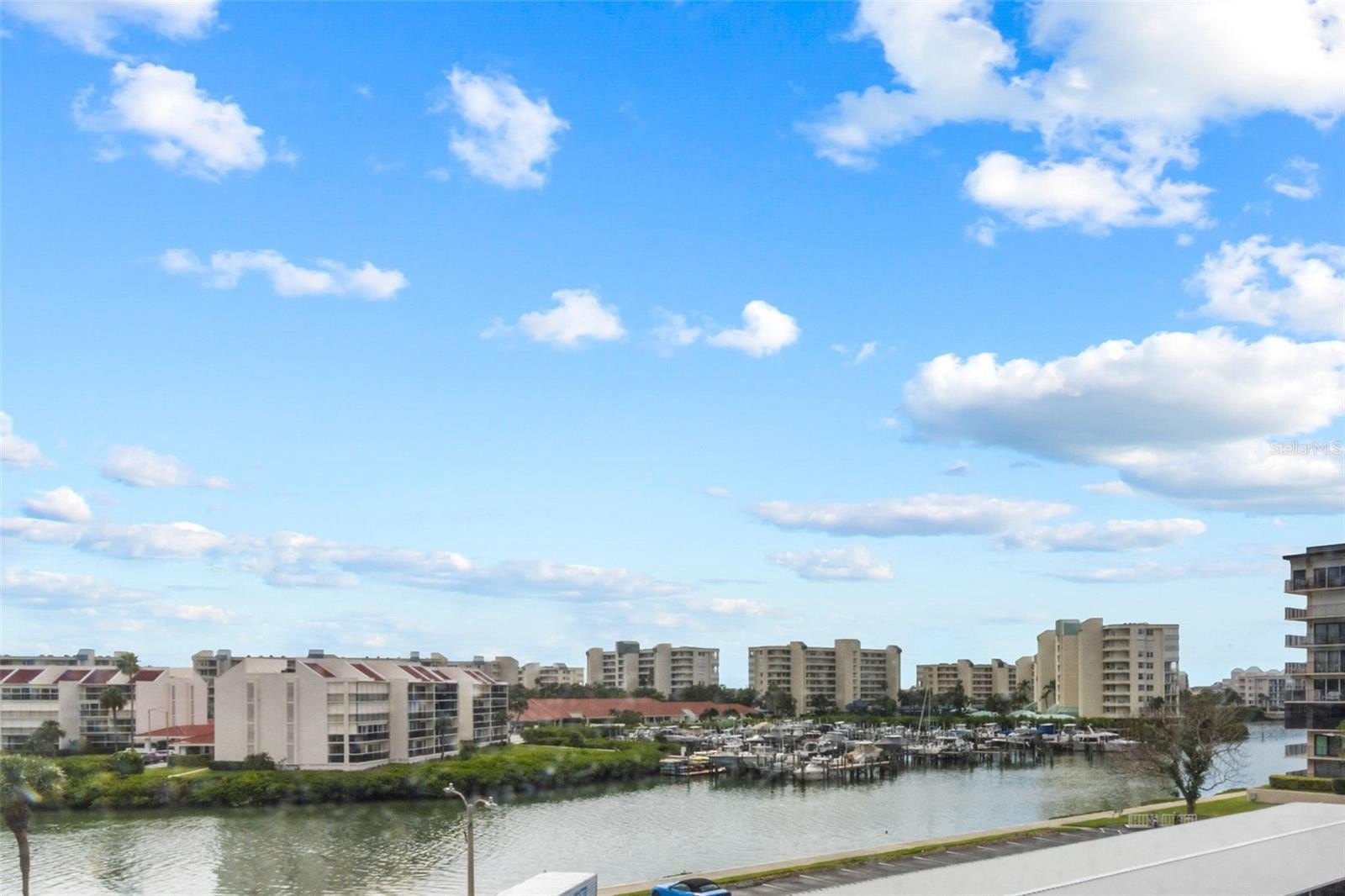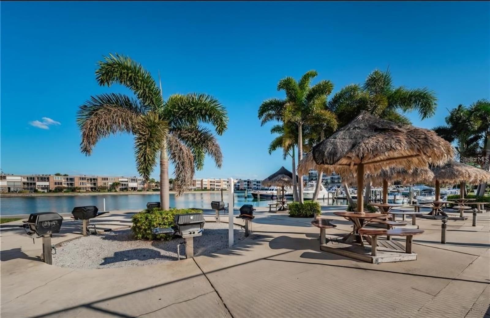 Waterfront Corner Condominium with Stunning Bay Views at The Ambassador! Discover the Florida lifestyle at its finest in this spacious 2-bedroom, 2-bathroom corner residence located on Porpoise Pass. Enjoy water views from nearly every room in the condo. Both bedrooms are private retreats, each with its own full bathroom including a screened balcony off one of the bedrooms—perfect for morning coffee or relaxing with a refreshment. The kitchen features a generous snack bar, while the open-concept living room offers views of the Bay. A separate dining area provides ample space for entertaining family and friends. This residence includes both electric and manual hurricane shutters, an in-unit washer and dryer, assigned covered carport #412 parking, and an additional storage unit #412. The unit also presents a wonderful opportunity to update and customize to your personal style. The Sun Island community is a gated 55+ paradise with 24-hour security and an impressive array of amenities: six heated pools, tennis, shuffleboard, pickleball courts, fitness centers, and a recreation facility. The recreational building is currently being renovated. Monthly fees include cable, internet, Wi-Fi, water, sewer, trash, flood insurance, and 24-hour guarded gate security—making this an exceptional value. Don’t miss this opportunity to own your own waterfront condo and experience the best of Florida living!