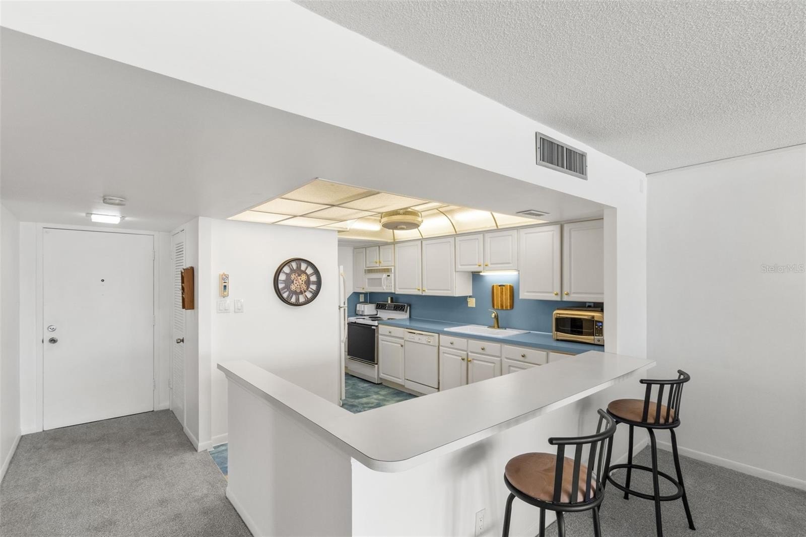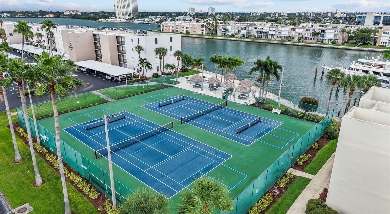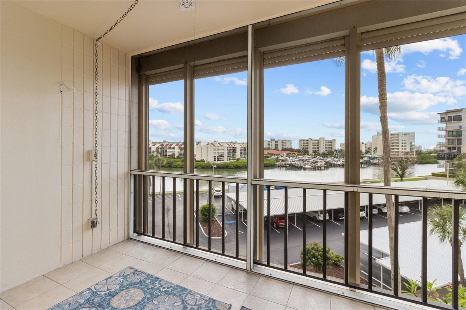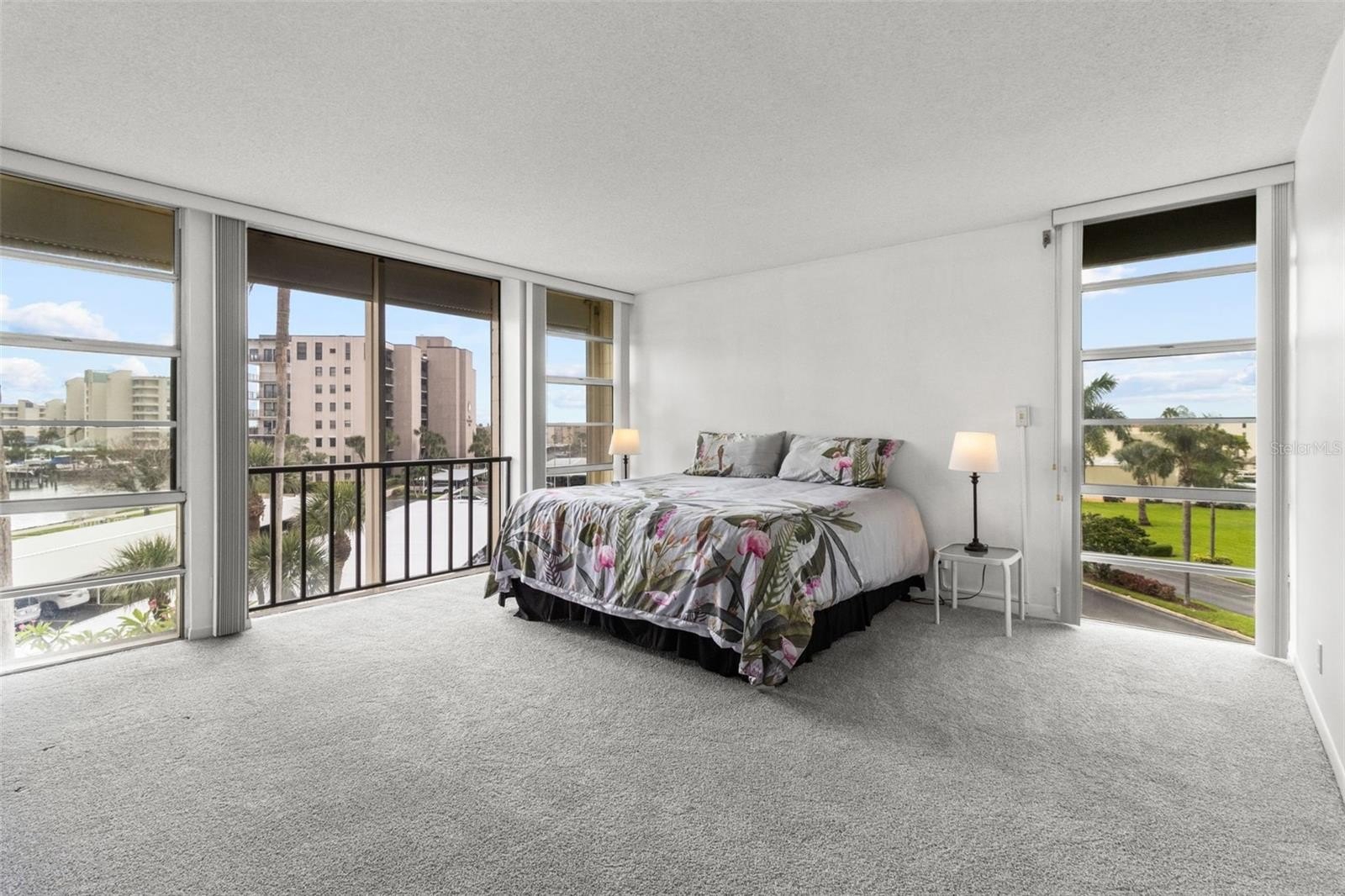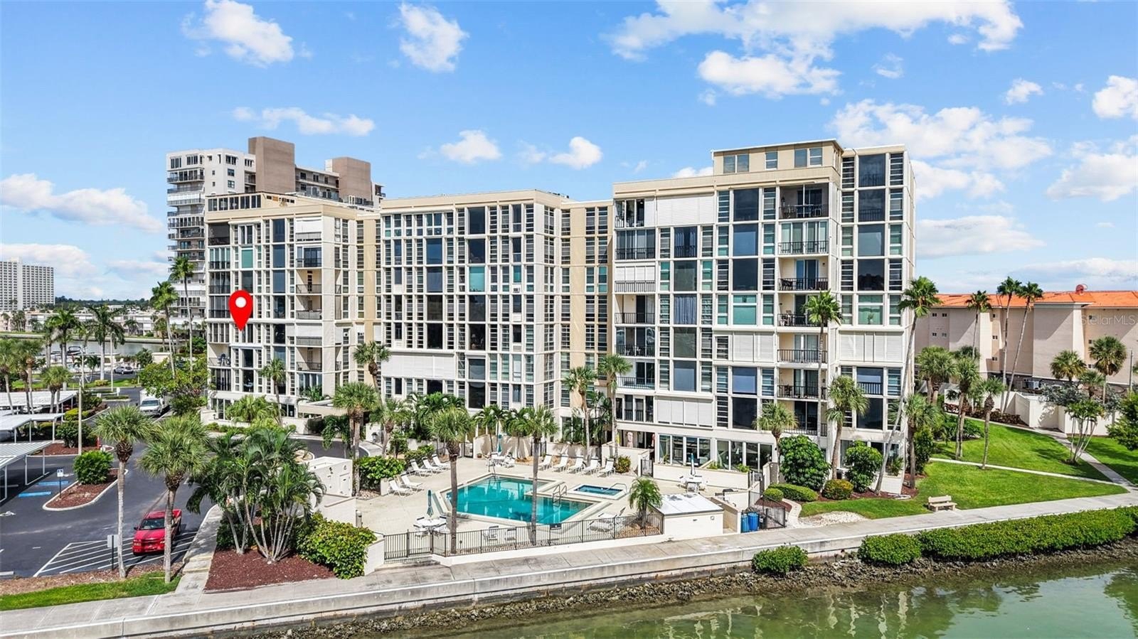 Waterfront Corner Condominium with Stunning Bay Views at The Ambassador! Discover the Florida lifestyle at its finest in this spacious 2-bedroom, 2-bathroom corner residence located on Porpoise Pass. Enjoy water views from nearly every room in the condo. Both bedrooms are private retreats, each with its own full bathroom including a screened balcony off one of the bedrooms—perfect for morning coffee or relaxing with a refreshment. The kitchen features a generous snack bar, while the open-concept living room offers views of the Bay. A separate dining area provides ample space for entertaining family and friends. This residence includes both electric and manual hurricane shutters, an in-unit washer and dryer, assigned covered carport #412 parking, and an additional storage unit #412. The unit also presents a wonderful opportunity to update and customize to your personal style. The Sun Island community is a gated 55+ paradise with 24-hour security and an impressive array of amenities: six heated pools, tennis, shuffleboard, pickleball courts, fitness centers, and a recreation facility. The recreational building is currently being renovated. Monthly fees include cable, internet, Wi-Fi, water, sewer, trash, flood insurance, and 24-hour guarded gate security—making this an exceptional value. Don’t miss this opportunity to own your own waterfront condo and experience the best of Florida living!
