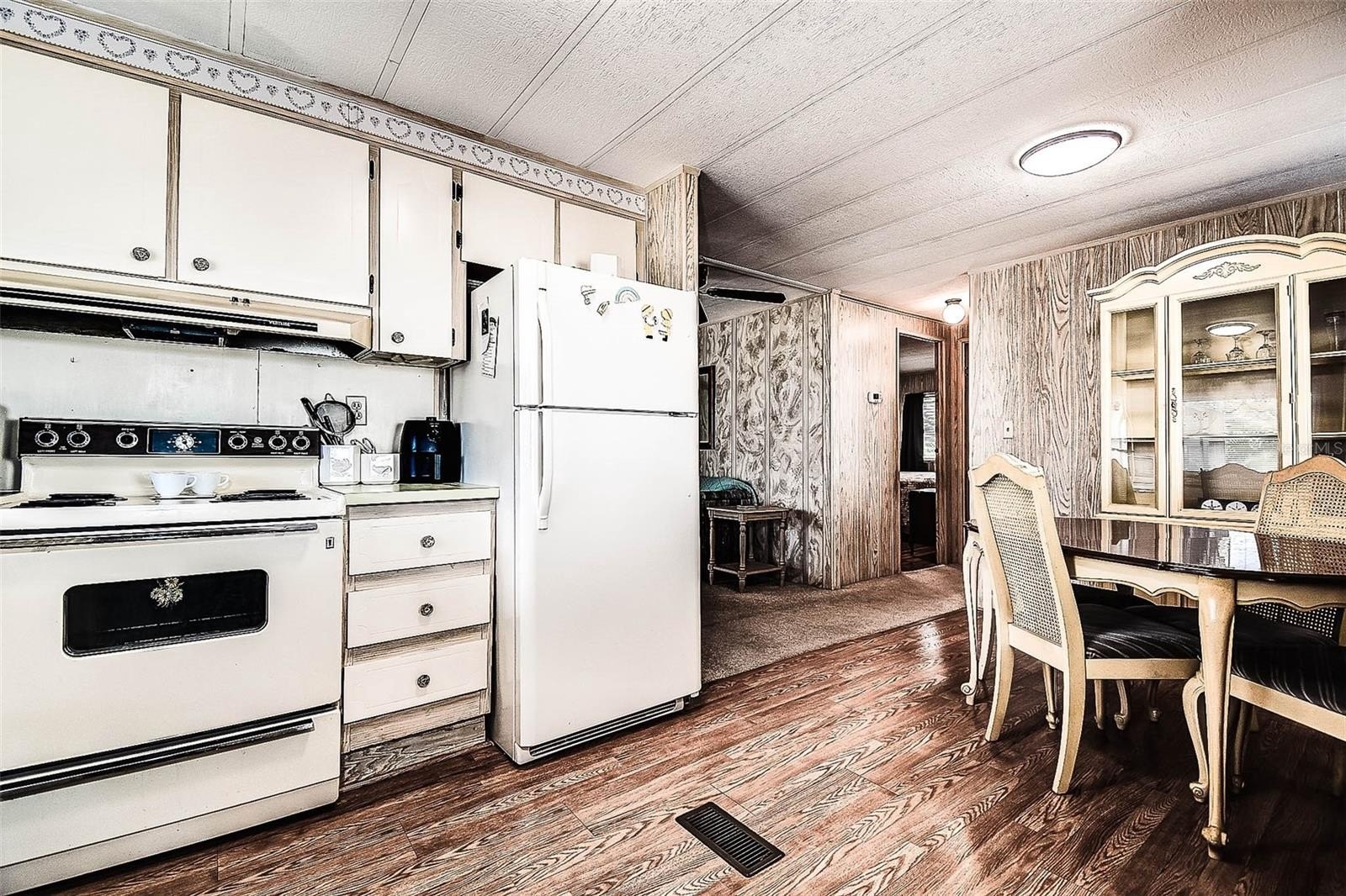 The kitchen is smartly designed — compact but efficient, with room to move and cook. Appliances including a range, refrigerator, and washer/dryer are all included, making it truly turnkey. Everything is connected, convenient, and ready to go. The L-shaped dining space adds flexibility for anything from formal meals to quick breakfasts on the go.
