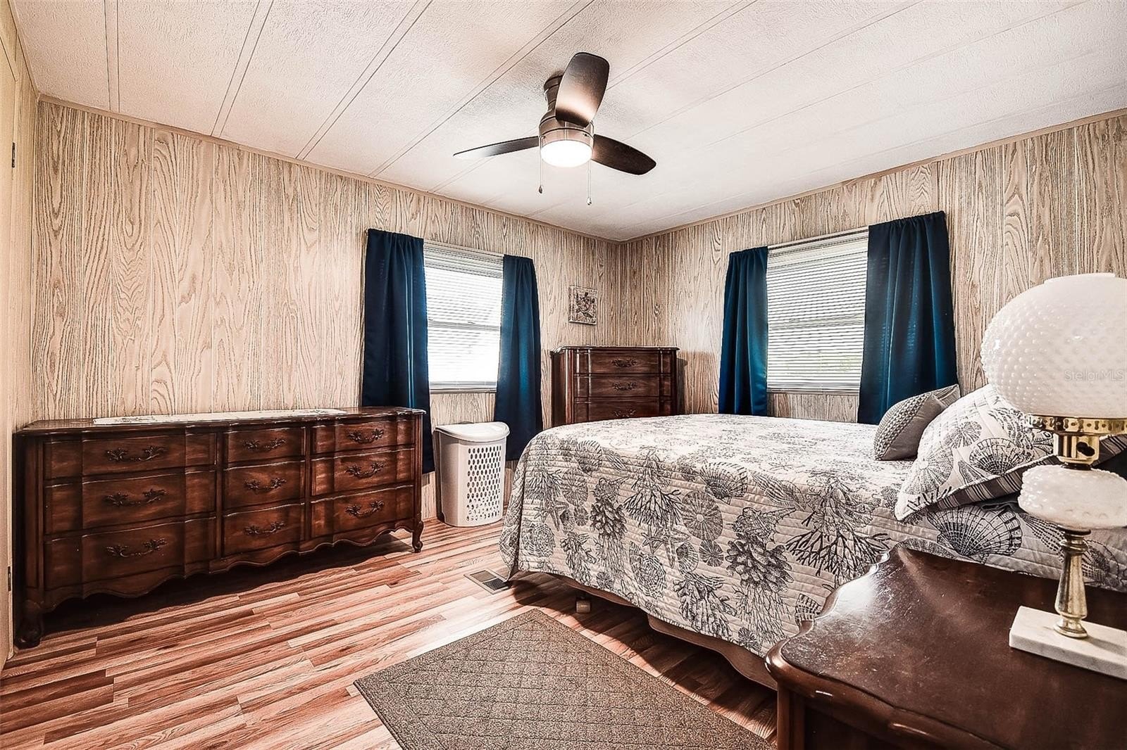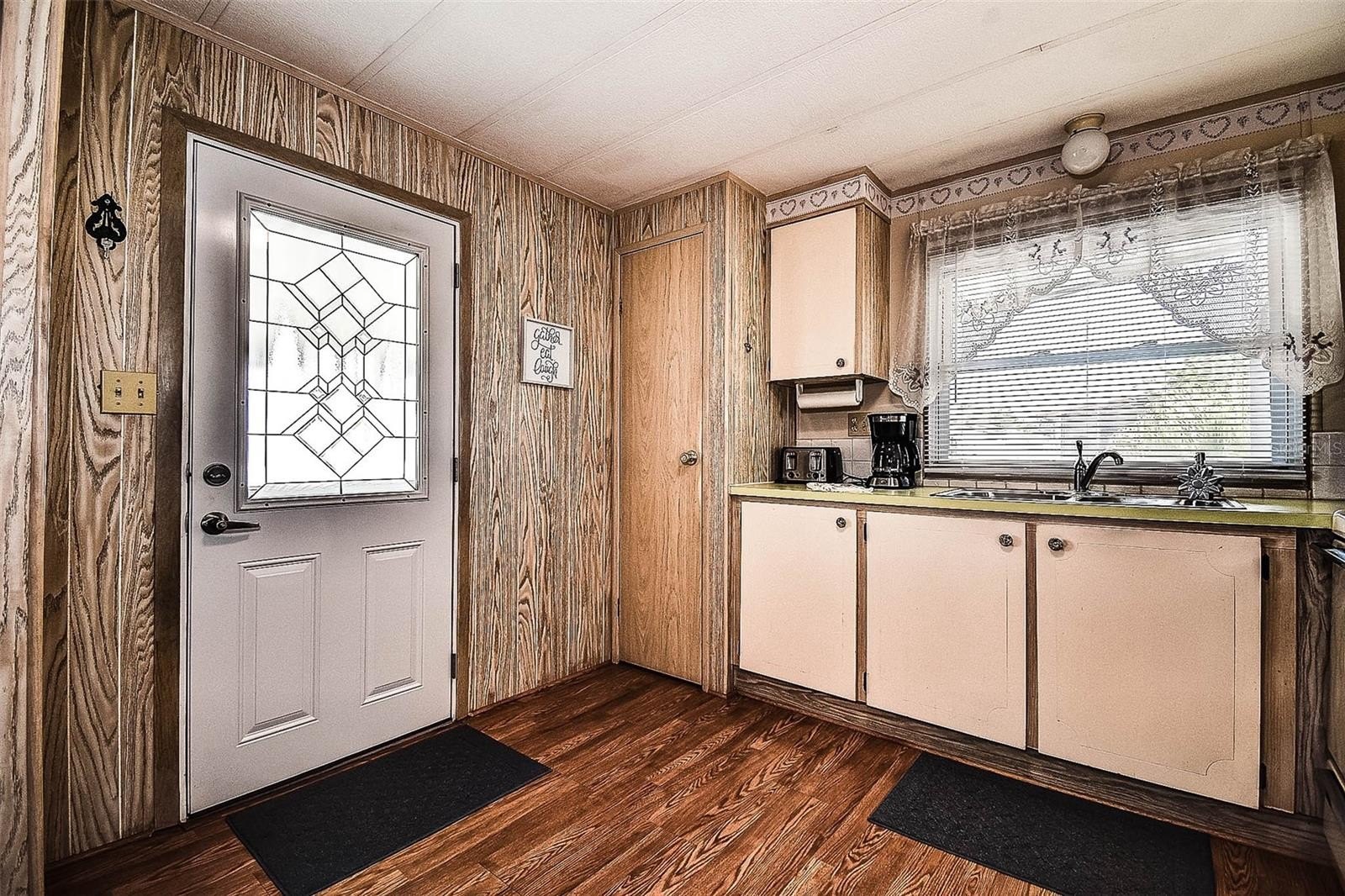 Two bedrooms await at the back of the home, both with laminate floors and built-in closets that maximize space without sacrificing style. The primary bedroom is generously sized and located on the main floor, making single-level living an easy win. A full bathroom and an additional half bath mean no waiting in line — because comfort is all about the little things.