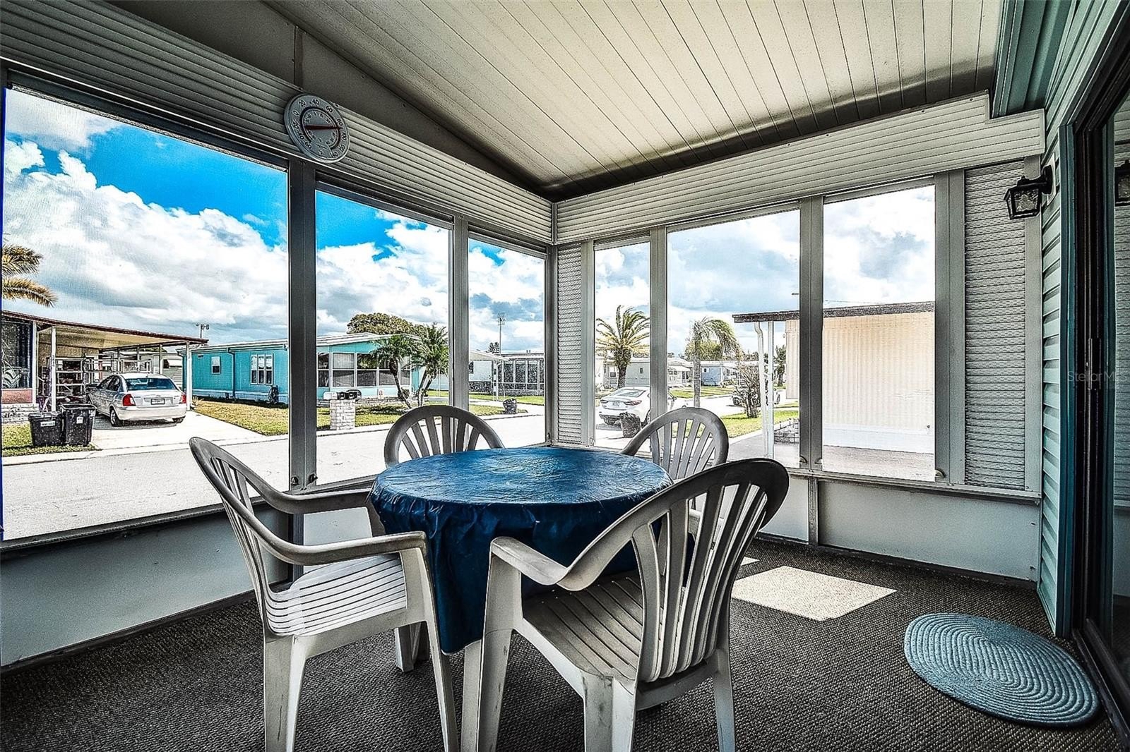 From the moment you arrive, the inviting curb appeal sets the tone. The home is perched on a landscaped lot, offering tranquility on a quiet street paved for easy strolls or golf cart cruises. A screened front porch welcomes you like a warm hug — imagine sipping morning coffee here while Florida sunshine filters through mature landscaping. It’s peaceful, it’s private, and it’s pure lifestyle.