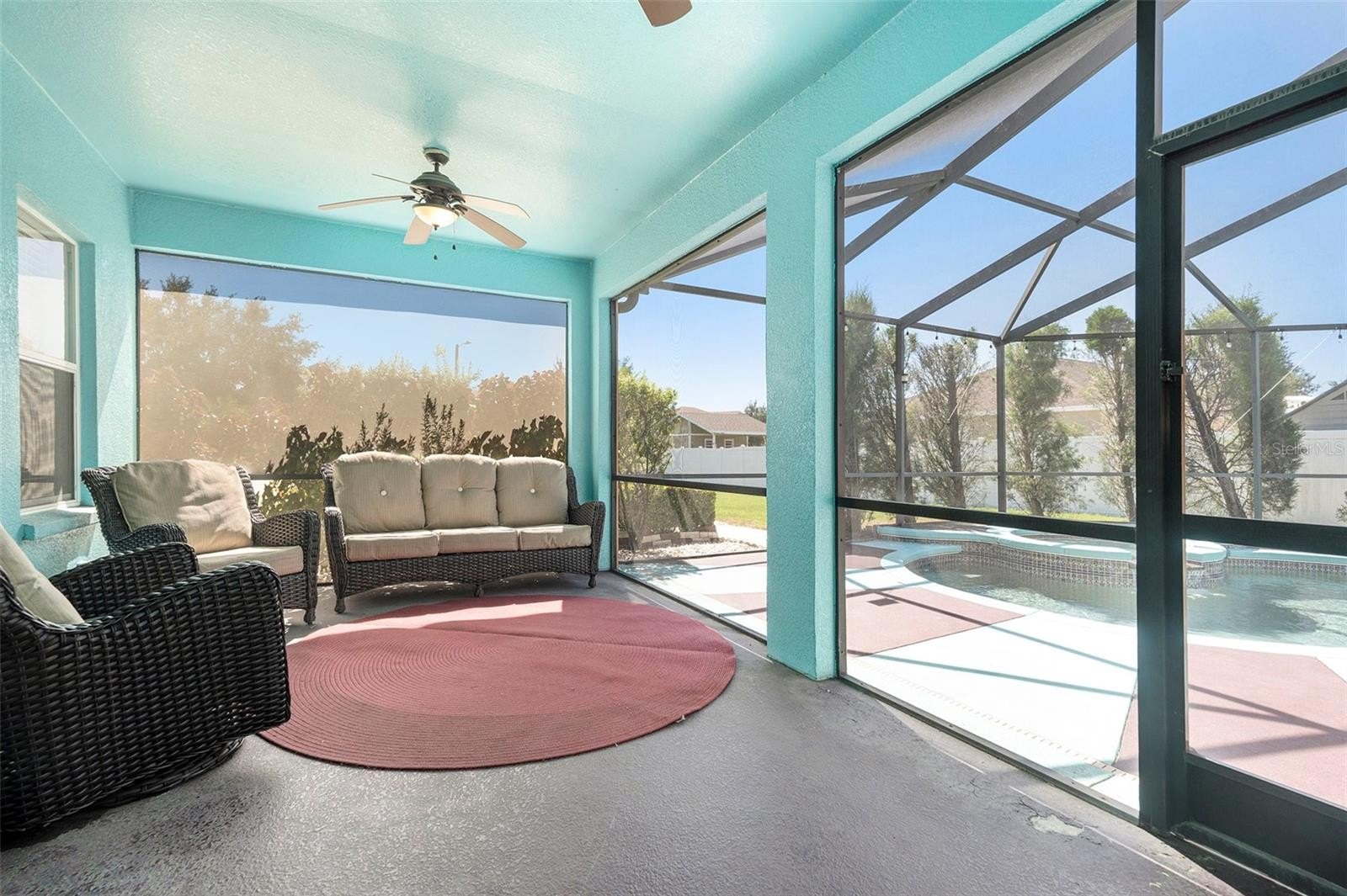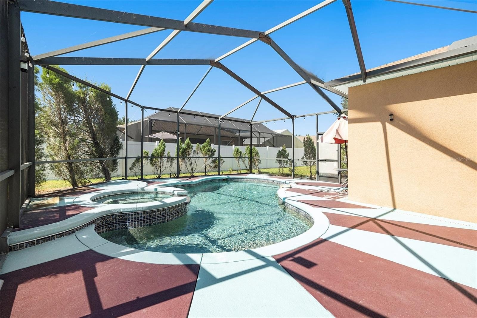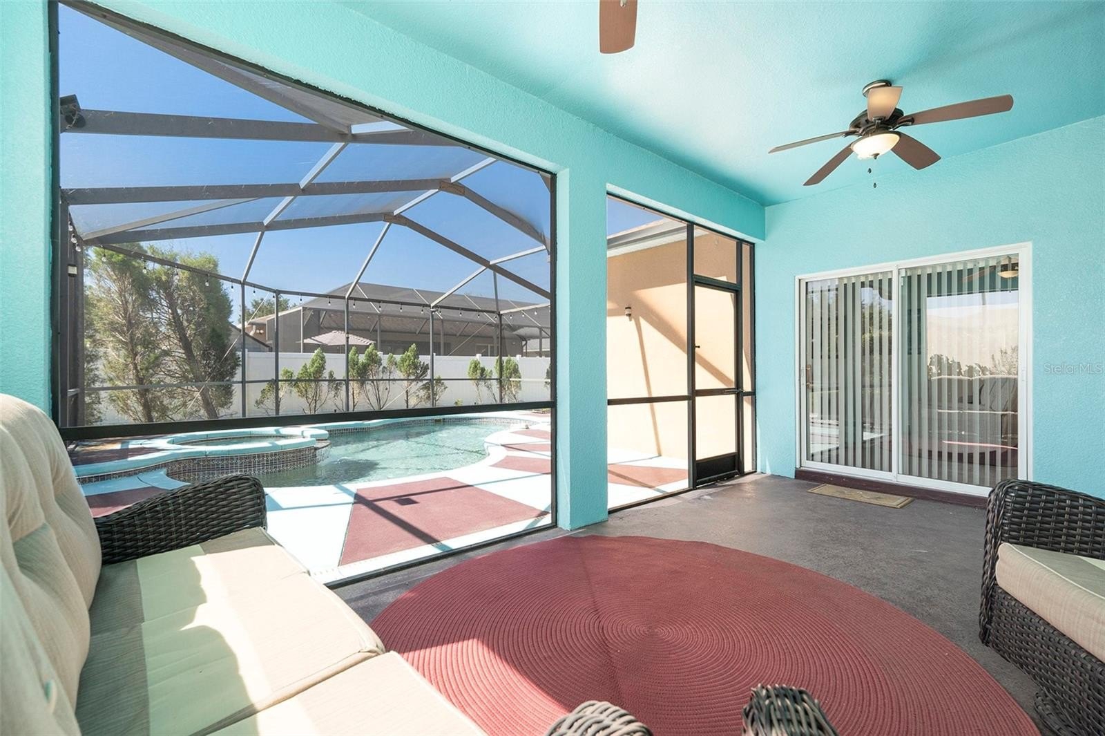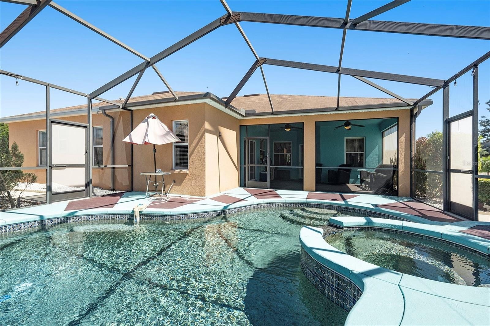 The thoughtful floor plan also includes three additional generously sized bedrooms, all located off the family room with new hypo-allergic carpet, along with a beautifully appointed second bathroom. Recent upgrades include a new HVAC system (2021), new pool pump (2025) hot water heater, and roof (both 2025), ensuring the home is in impeccable condition and move-in ready.