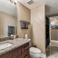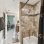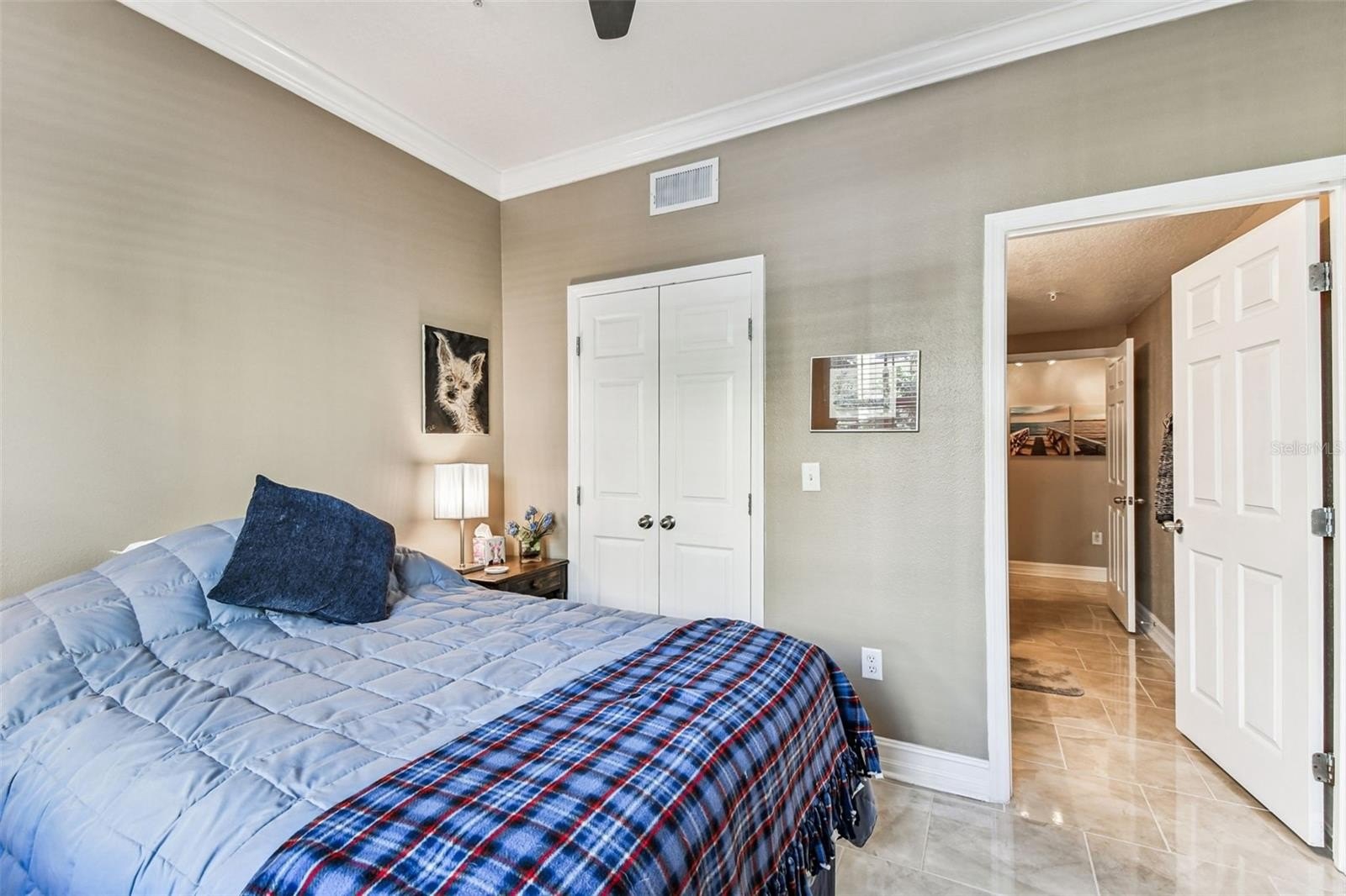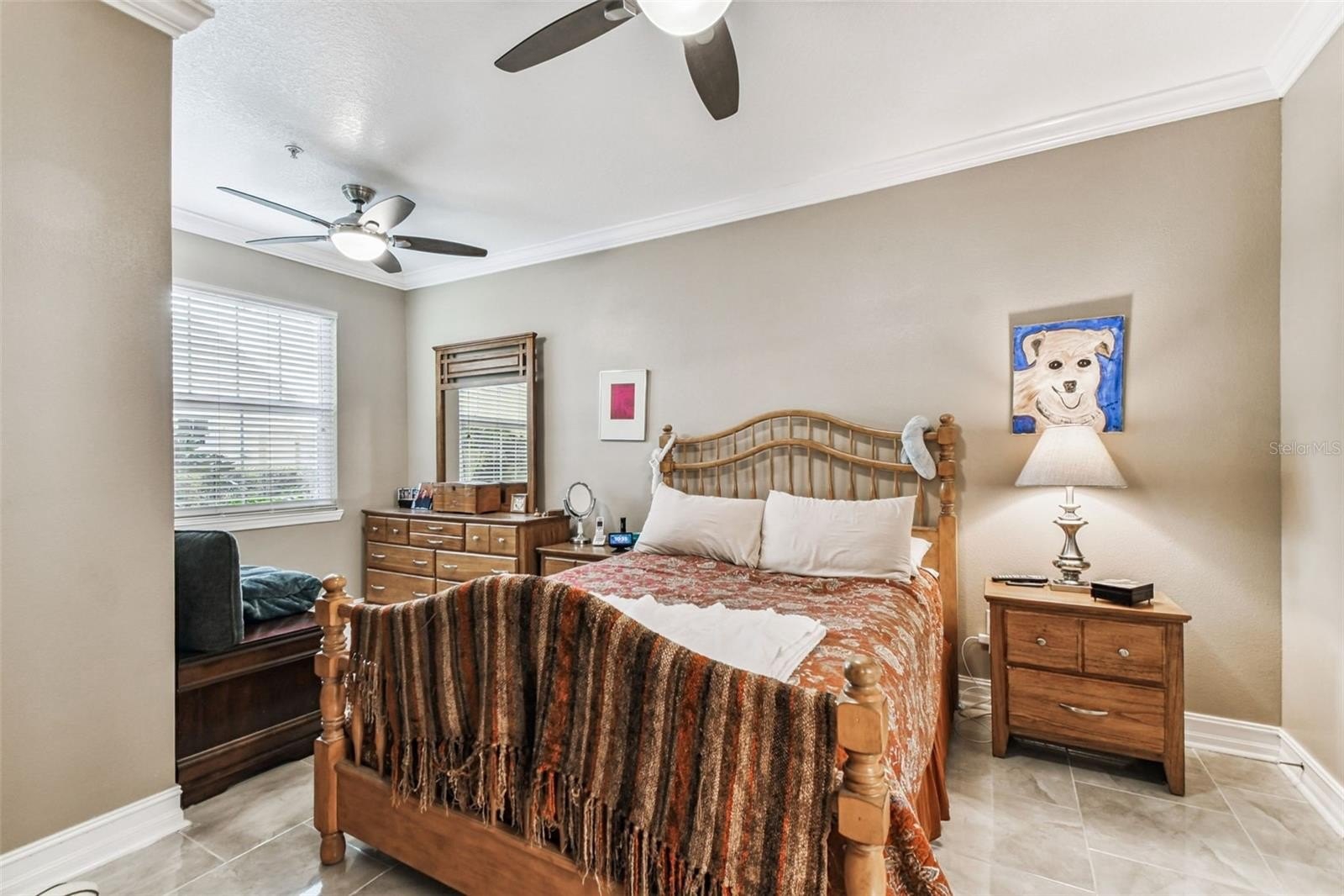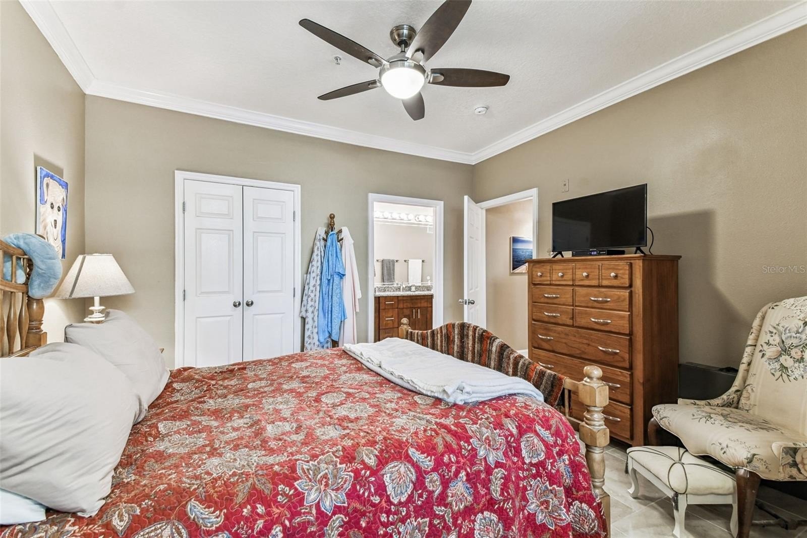 The PRIMARY SUITE includes a cozy sitting nook, a WALK-IN CLOSET WITH CUSTOM BUILT-INS, and a beautifully renovated EN-SUITE BATH featuring a GRANITE DOUBLE VANITY, FRAMELESS GLASS WALK-IN SHOWER, and FLOOR-TO-CEILING TILE with designer accents and niches. The 2ND BEDROOM also offers POOL VIEWS, a ceiling fan, and another CUSTOM WALK-IN CLOSET. The GUEST BATH mirrors the quality finishes of the rest of the home, with a GRANITE-TOPPED VANITY and a fully tiled TUB/SHOWER COMBO.