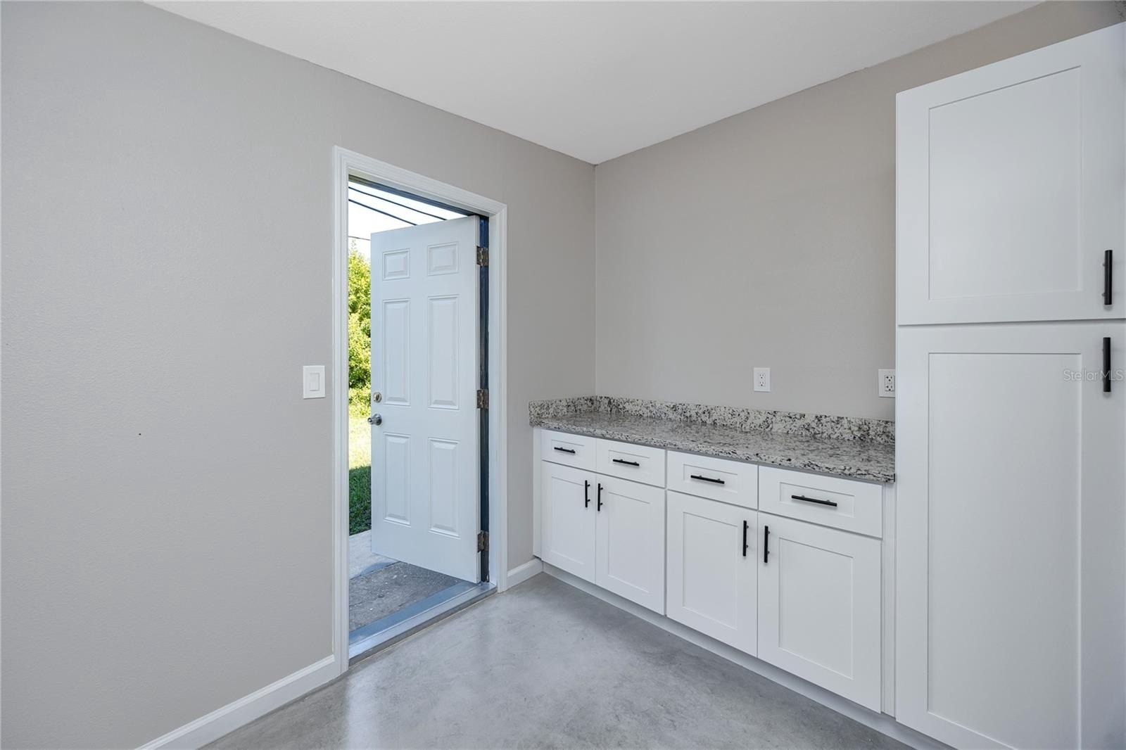 Craving country living, but love being close to everything? Nestled on a huge, park-like lot, this beautifully updated home offers space to breathe and room to grow. Step inside to find bright, open living spaces highlighted by classic terrazzo floors. The kitchen feature solid wood white cabinets, solid surface countertops, newer appliances and tile backsplash. Exit the door to a patio area ready for you to convert to your own outdoor dining space.