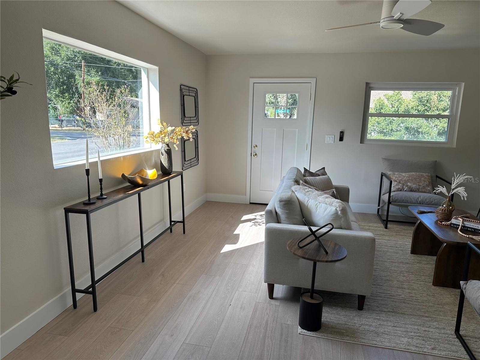 Gorgeous remodel highlights this solid home. Great bones to start off with, with graciously sized rooms, it’s ready to show off all of the recent updates. Spacious rooms have been tastefully refreshed, no reality-show drama required. The smart split floor plan offers three comfortable bedrooms (because everyone deserves a little personal space), a sparkling kitchen large enough for culinary experiments and midnight snacks, plus two bathrooms so no one has to schedule shower time. The dining area flows gracefully from the kitchen — perfect for entertaining, or at least pretending to while ordering takeout. Sunlight floods the cheerful living room, which greets guests like a warm welcome. Enjoy peace of mind with a new roof, new appliances, new flooring, beautiful tile, and fresh neutral paint — all ready to flatter your furniture, no judgment on your color palette.
