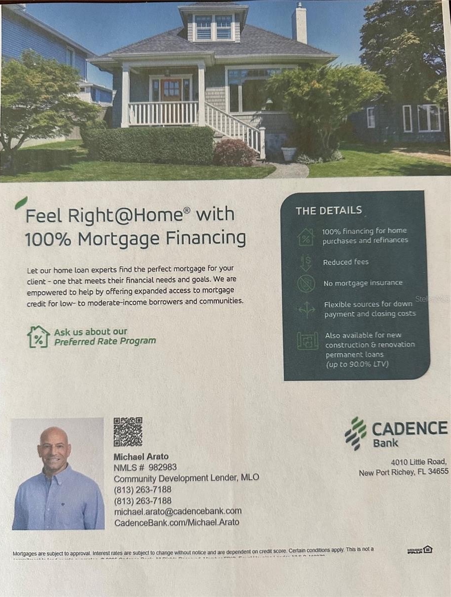 *Cadence Bank offering 100% financing with no mortgage insurance required. See flyer in the photos.There are also savings at closing for law enforcement officers, firefighters, school teachers, first responders, nurses and military from Cadence Bank. Call now to get started! .