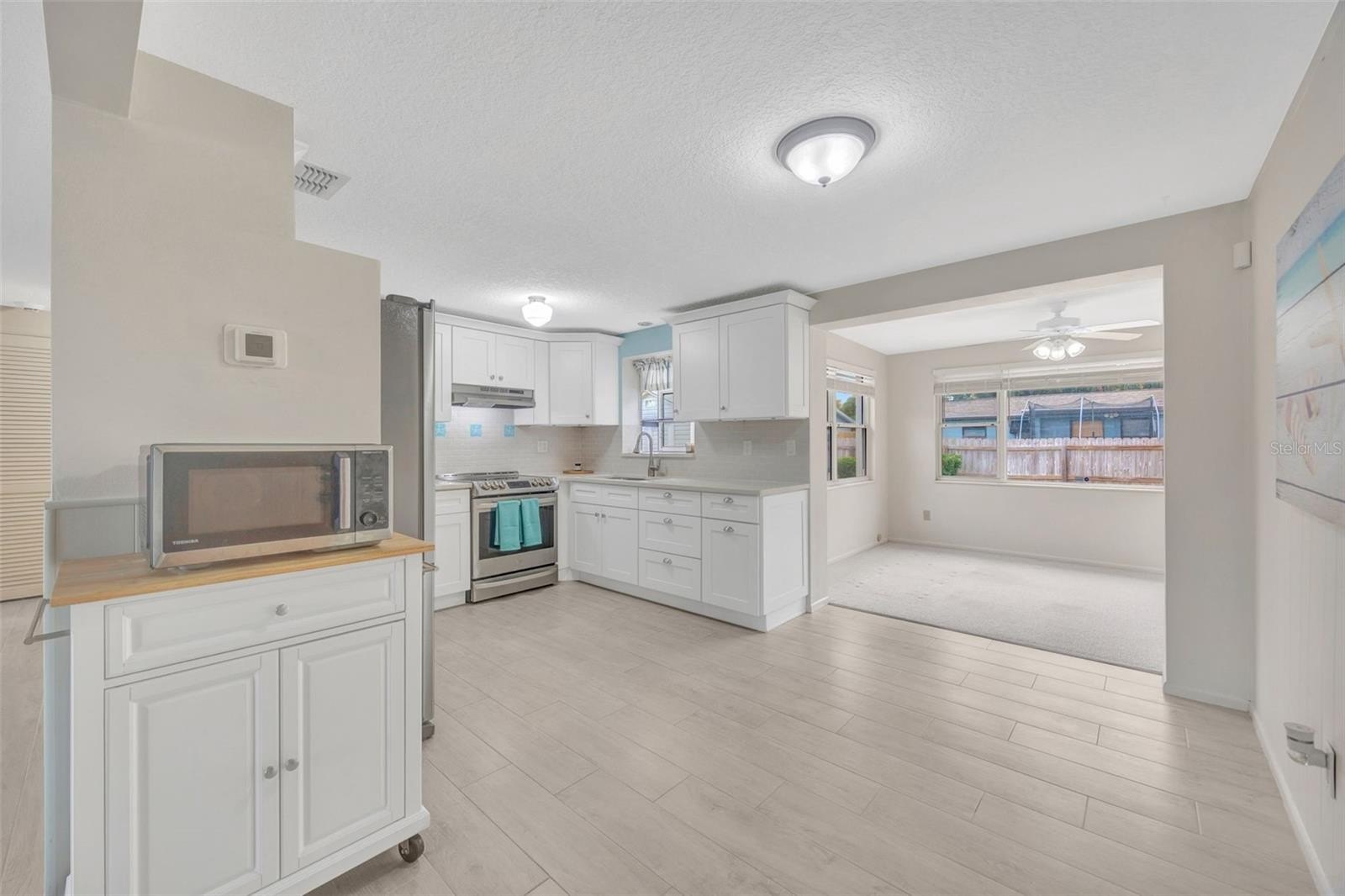 Looking for a move-in ready home with all the updates? Look no further, this is the one you’ve been waiting for. This 2-bedroom, 2-bathroom home also includes a versatile bonus room or den that could easily be converted into a third bedroom. The beautifully renovated kitchen features stylish white cabinetry, stone countertops, and stainless steel appliances. The main living area boasts ceramic plank tile flooring, known for its durability and easy maintenance. Both bathrooms have been tastefully updated. In addition to the garage, there is a carport to help protect your vehicle from the Florida sun. The fully fenced backyard offers plenty of space to relax or entertain, with a patio area, a convenient storage shed, and an impressive workshop equipped with electric and air conditioning, perfect for a private home office, studio, or hobby space. Nearly every major component of this well-maintained home has been professionally updated within the past five years, including the roof (2022), HVAC (2022), electric panel (2022), tankless water heater (2022), garage door and opener (2024), and most windows (2022). Homes like this don’t come on the market often…schedule your appointment today before it’s gone!