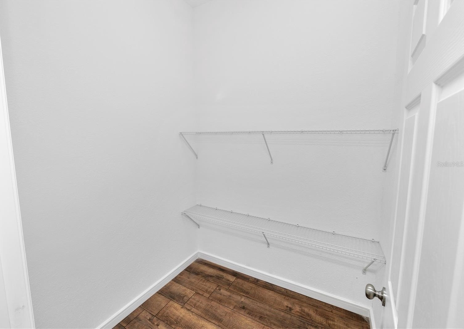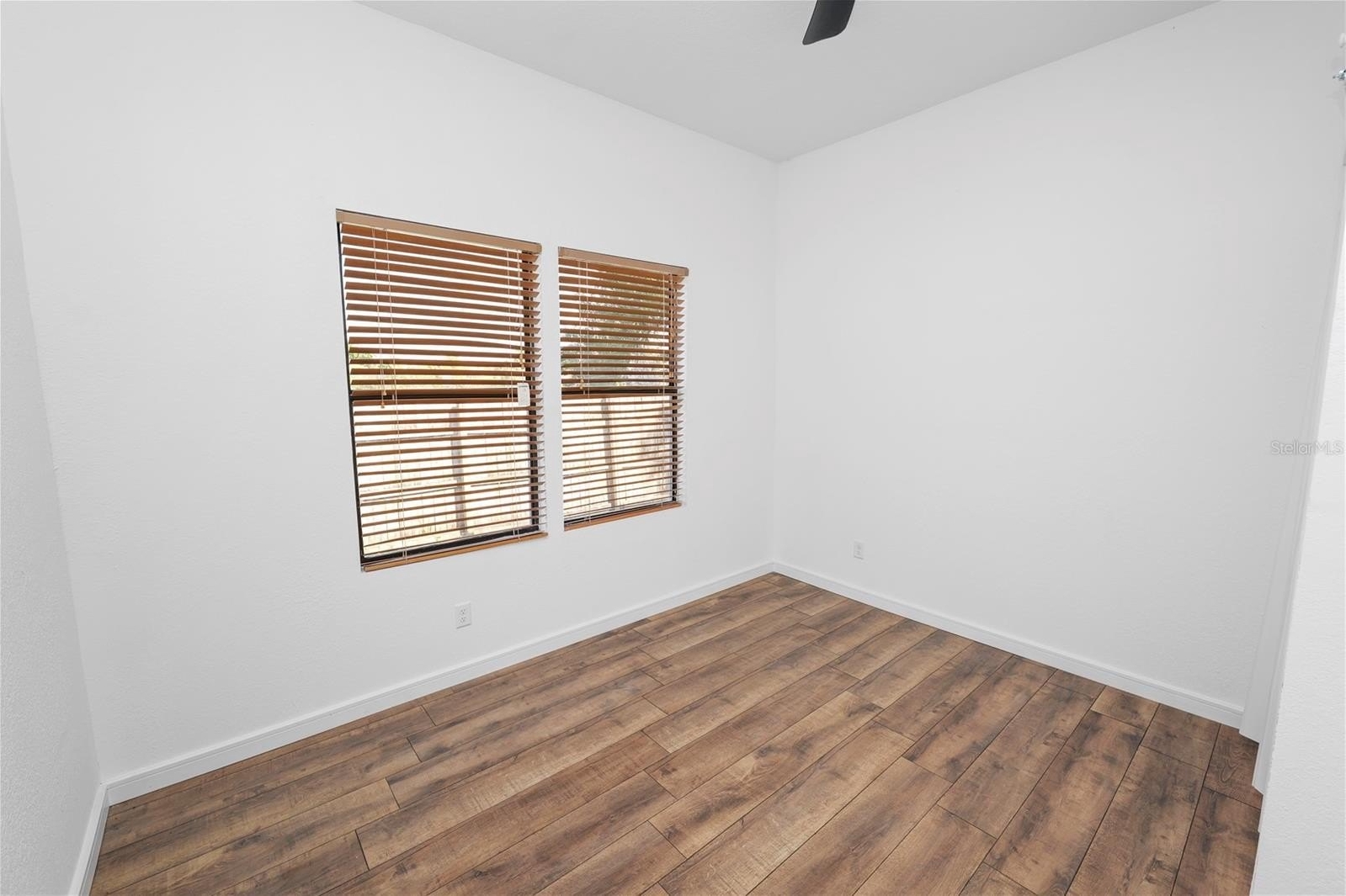 The large laundry room provides plenty of room to organize and move around comfortably. Outside, a covered front wooden patio invites you to relax and take in the view of the nearby pond. The fenced backyard has ample space to make it your own and includes a shed for added storage.