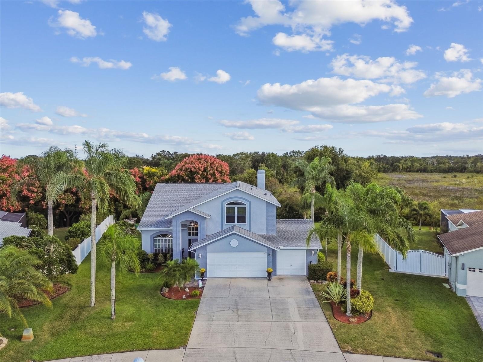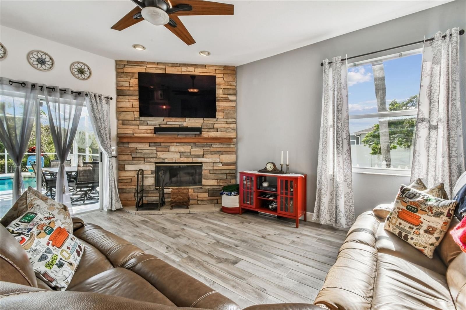 Beautifully updated 4-bedroom, 2.5-bath home with 2,124 sq ft in Lutz. This home is absolutely turn-key and features a new roof, new A/C with a 12 year transferrable warranty, and an open-concept layout with modern interior updates. The upgraded kitchen includes quartz countertops, stainless steel appliances, two-tone cabinetry, a farmhouse-style sink, custom tile backsplash, and under-cabinet lighting. The first floor offers porcelain tile flooring, while the second floor features hardwood flooring throughout. The main living area includes a stacked-stone fireplace, large windows, and direct access to the outdoor living space. The spacious primary suite offers a large walk-in closet with built-in storage and an updated bathroom with a walk-in shower and tile accents. Step outside to the screened lanai and enjoy a private outdoor retreat with a saltwater pool and spa, covered seating areas, ceiling fans, and views of the conservation area behind the property. The fully fenced backyard offers additional space for recreation or relaxation. Additional features include a 3-car garage, updated lighting, a large driveway, and attractive curb appeal with mature palm trees and well-maintained landscaping. Conveniently located near shopping, dining, parks, and major roadways, this home offers a blend of comfort, upgrades, and outdoor living. Don’t miss out on your chance to own this lovely home! Schedule your private showing today!