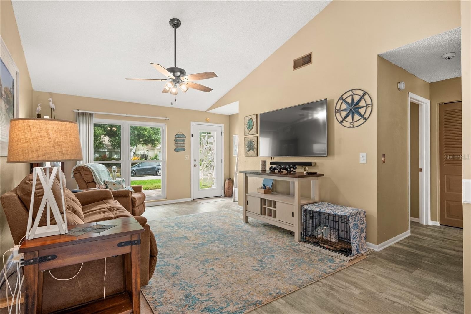Step inside to an open and inviting living space featuring updated flooring (2020) and a fully renovated kitchen (2020) complete with modern cabinetry, sleek stone countertops, and stainless steel appliances (2019). Both bathrooms were tastefully remodeled in 2021, giving the home a fresh, contemporary feel throughout.