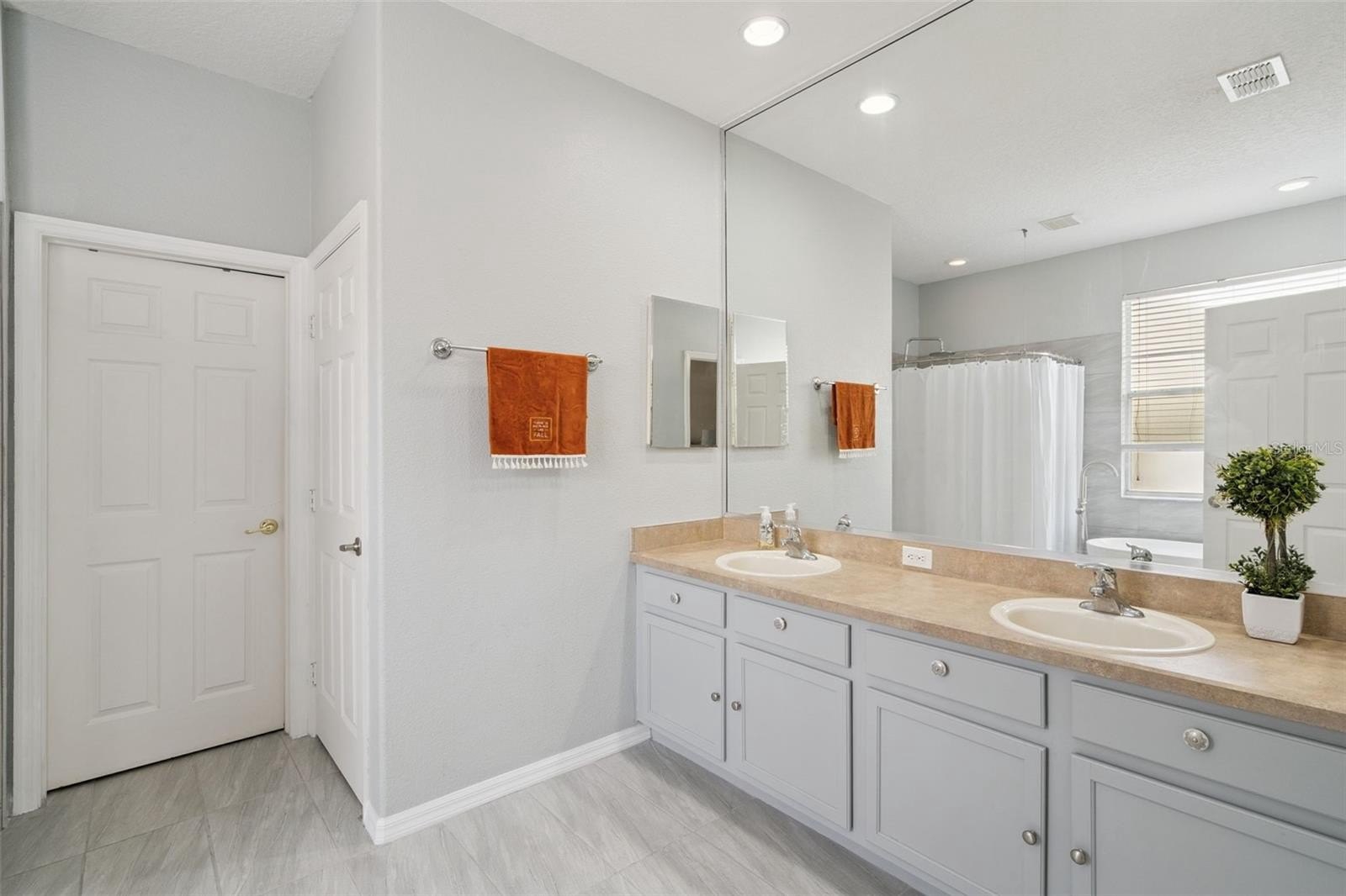 The spacious master suite provides the ultimate retreat with a generous walk-in closet, a relaxing garden tub, and a separate shower. The thoughtful split layout adds privacy, while two potential ensuite bedrooms create flexibility for guests or family.