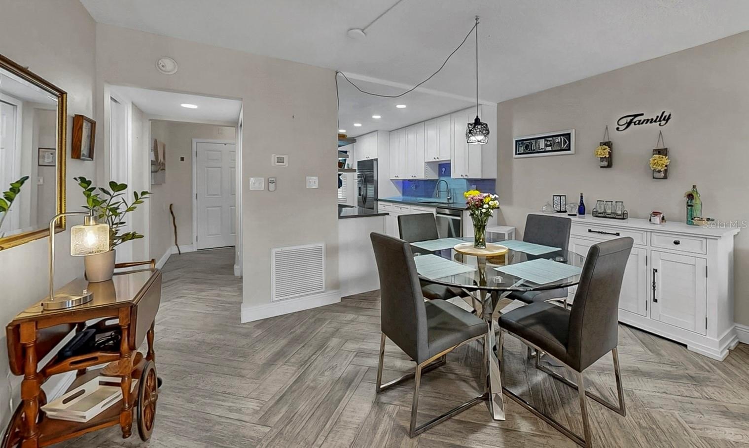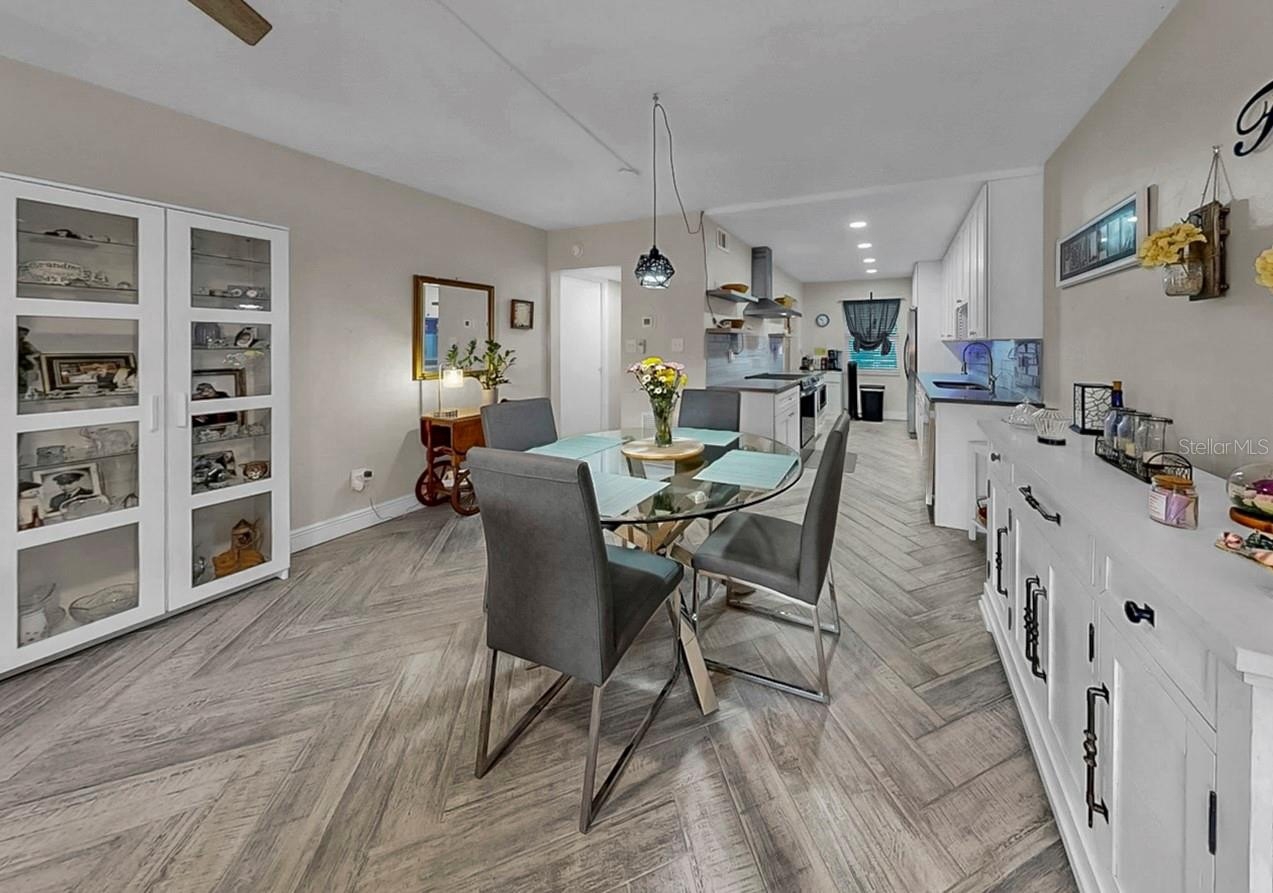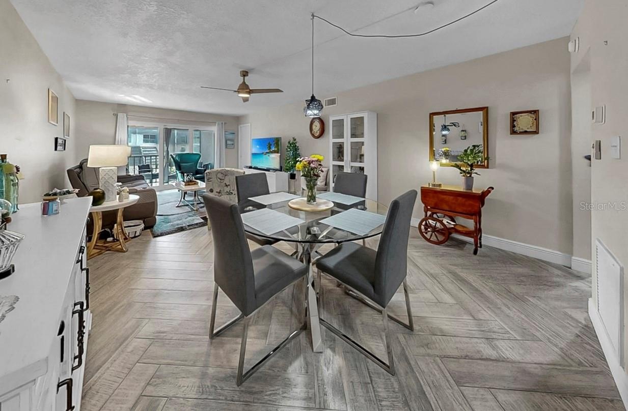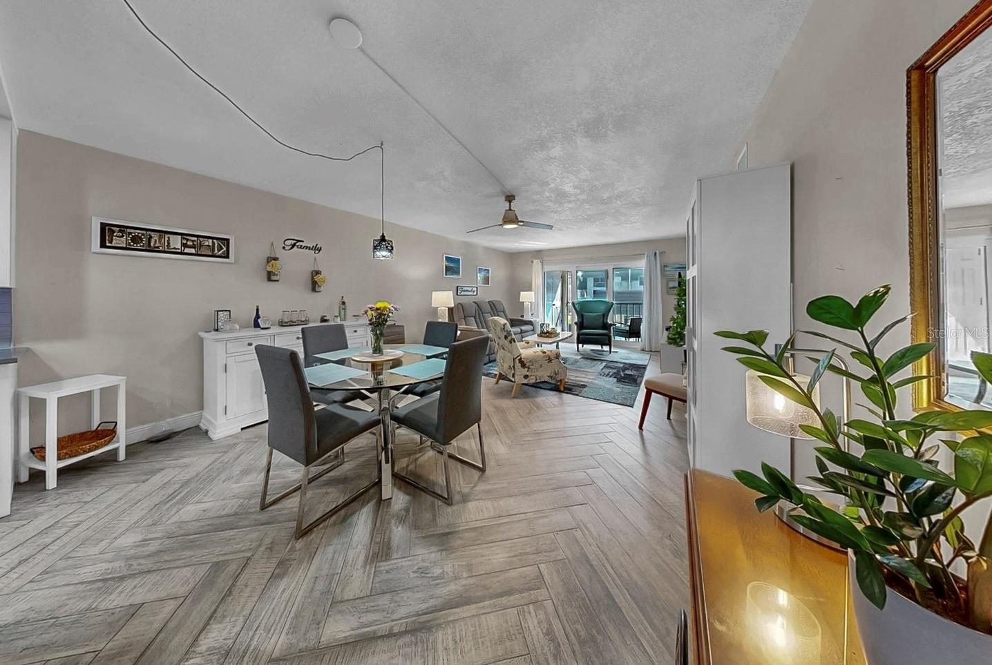 Step inside and prepare to be impressed. The moment you enter, the woodgrain tile floors laid in a herringbone pattern set the tone for the home’s elevated design. The open floor plan flows effortlessly between the living, dining, and kitchen spaces, creating the perfect layout for relaxing or entertaining.
