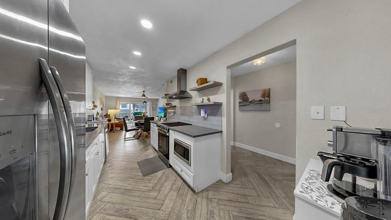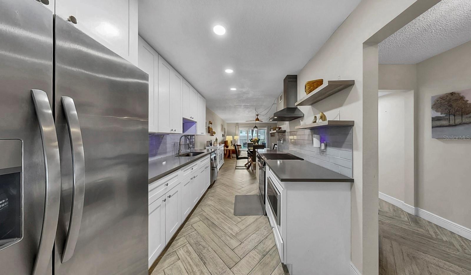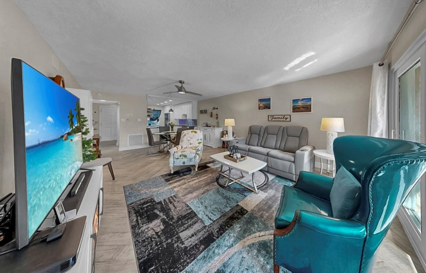 Step inside and prepare to be impressed. The moment you enter, the woodgrain tile floors laid in a herringbone pattern set the tone for the home’s elevated design. The open floor plan flows effortlessly between the living, dining, and kitchen spaces, creating the perfect layout for relaxing or entertaining.