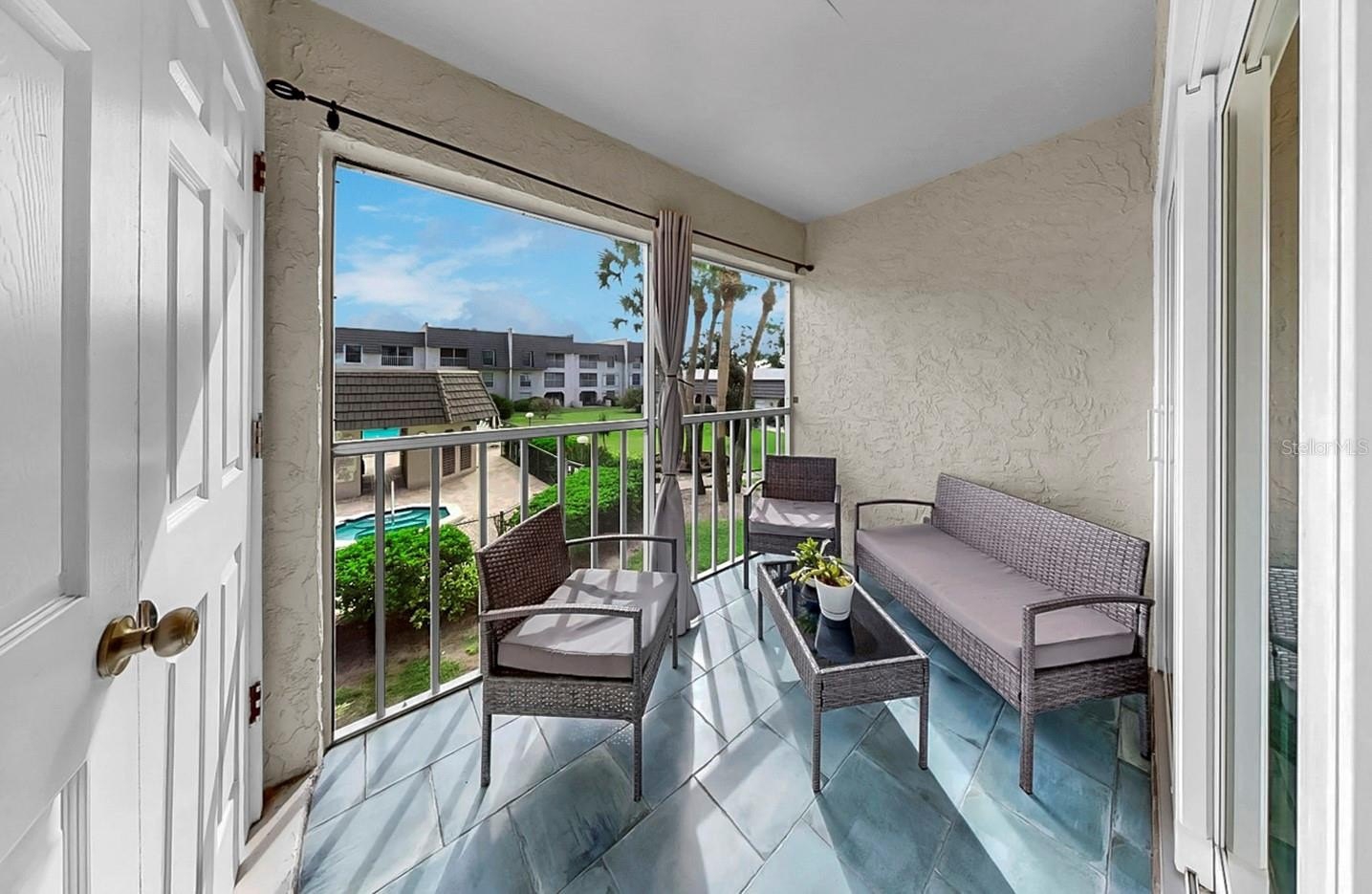 Enjoy your morning coffee or evening wine on the screened-in patio overlooking the sparkling pool, your own private slice of paradise just steps away. Laundry located inside unit. Elevator for your comfort and convince.