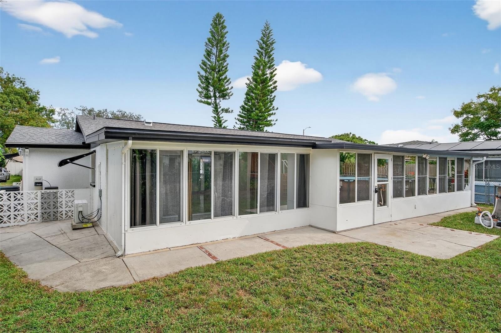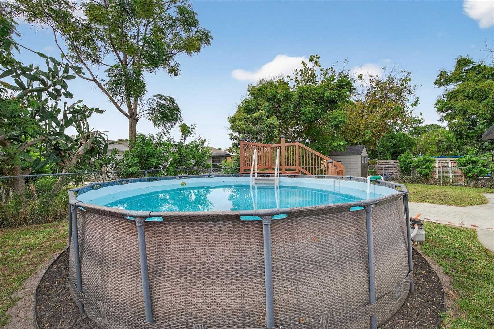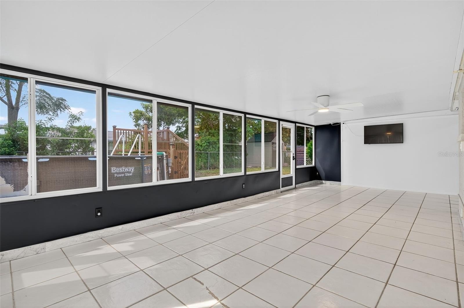 From the main living area, double sliding doors open large, light-filled Florida room with heating and cooling—ideal for a home office, gym, playroom, or even conversion into an additional bedroom if desired. The second space off the main living space is a 3rd bedroom. Through walls of windows, both the Florida room and 3rd bedroom overlook the fully fenced backyard, complete with an above-ground pool with deck and a storage shed, creating your own private retreat.