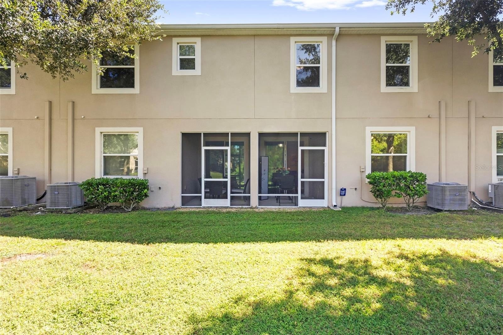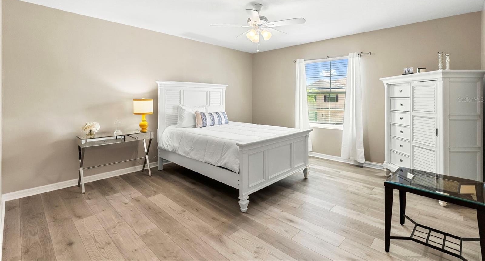 The primary suite is an expansive retreat with a large walk-in closet and a spa-like en-suite bathroom featuring a dual-sink vanity, frameless glass walk-in shower, and modern finishes. Step outside to the covered and screened rear patio, where you can unwind and enjoy peaceful pond views—a perfect spot for morning coffee or evening relaxation.