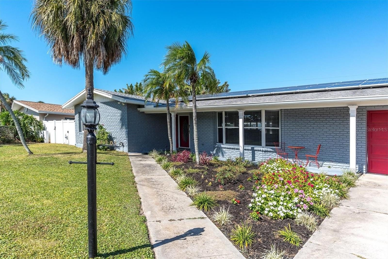 The ultimate Florida experience awaits in the screened-in pool area, featuring a solar-heated pool plus a recently refurbished pool pump and pool surface. The second bathroom conveniently serves as a pool bath with a dedicated exterior entrance—perfect for post-swim rinse-offs. Benefit from a whole-house solar panel system, ensuring energy efficiency and significantly lower utility bills, along with a water-softening system for enhanced daily comfort.