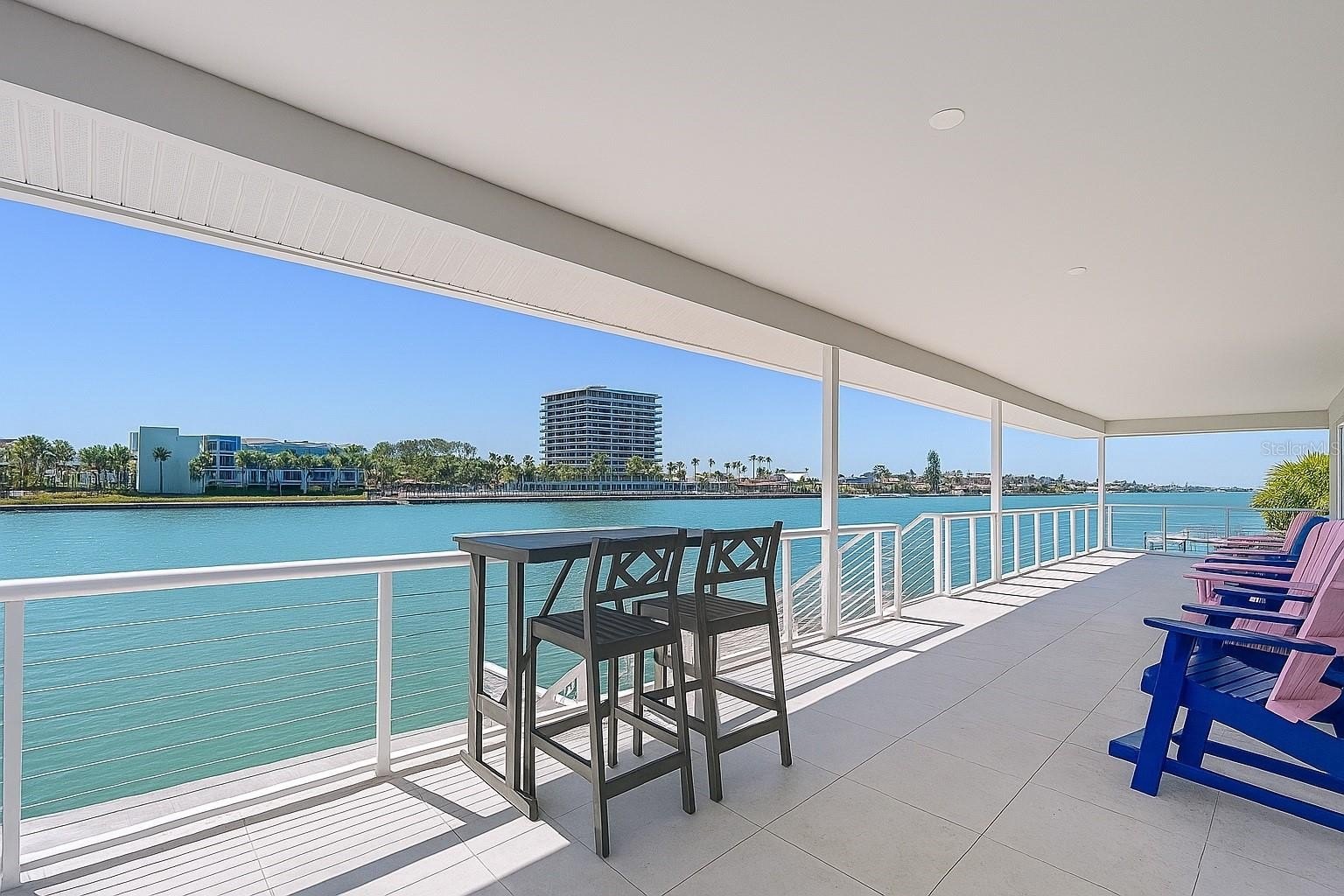 One or more photo(s) has been virtually staged. Extensively remodeled in 2023, this FEMA-compliant waterfront home sits on a rare combination of four platted lots—including deeded submerged land—offering approximately 164 feet of pristine Intracoastal frontage and an unrivaled west-facing vantage point toward Blind Pass and the Gulf. Recent upgrades include new shell-stone flooring throughout (even on the balcony), all-new impact windows, doors, and sliders to maximize the water views, new stucco siding, garage doors, HVAC (2025), a new dock with 13,000-lb boat lift, and a new pool. Elevated approximately 14 feet above sea level, the home combines timeless coastal design with modern features: an open great room with study or optional forth bedroom, a bright kitchen with island and double ovens, private elevator, and an expansive primary suite with a 15' × 17' walk-in closet and 12' × 12' bath. The ground-level area provides generous covered parking, workshop, and storage space. From this location you can literally see where the Gulf meets Blind Pass—one of the most dynamic and scenic boating corridors on the island—offering front-row views of yachts, fishing boats, and sunset cruises passing by. This is also a prime spot for fishing, as sea life gathers at the mouth of the pass before entering the channels. Situated just across from newly renourished beaches and within minutes of Corey Avenue’s shops and restaurants, this home offers a rare blend of elevation, open-water orientation, and boating lifestyle that defines the best of St. Pete Beach.
