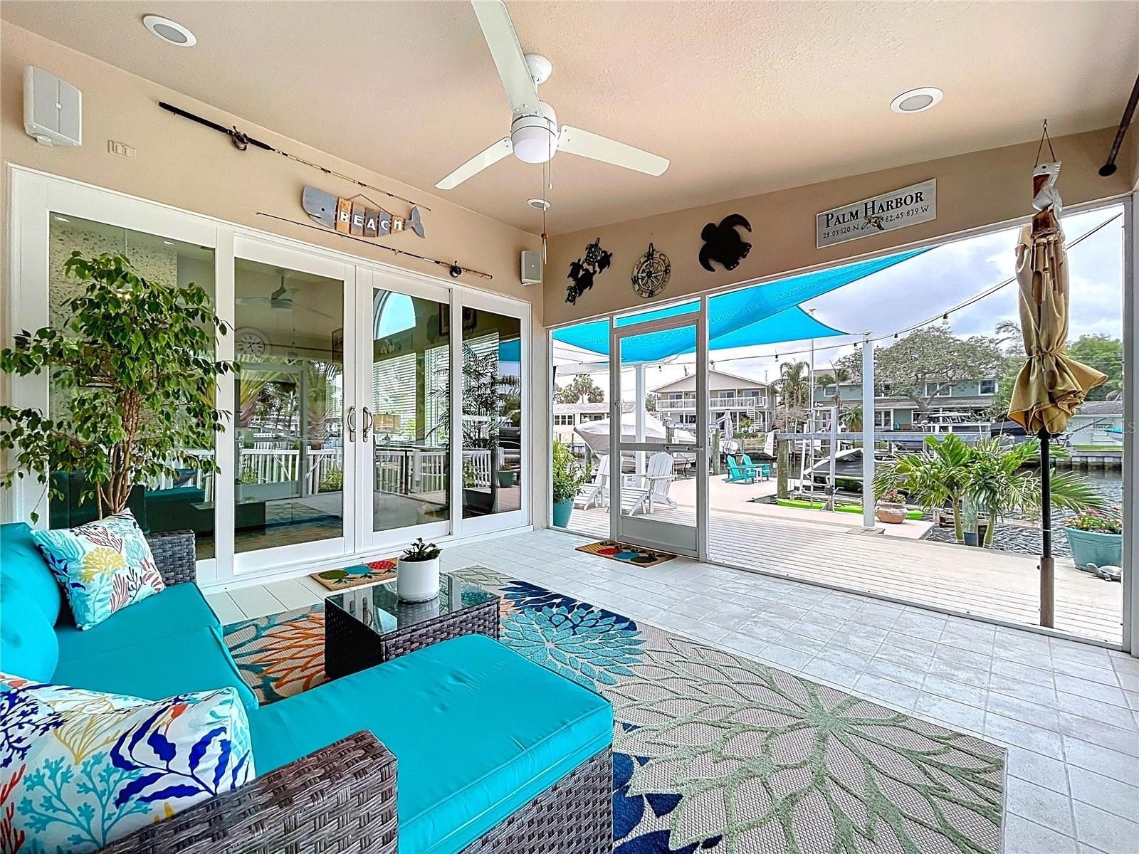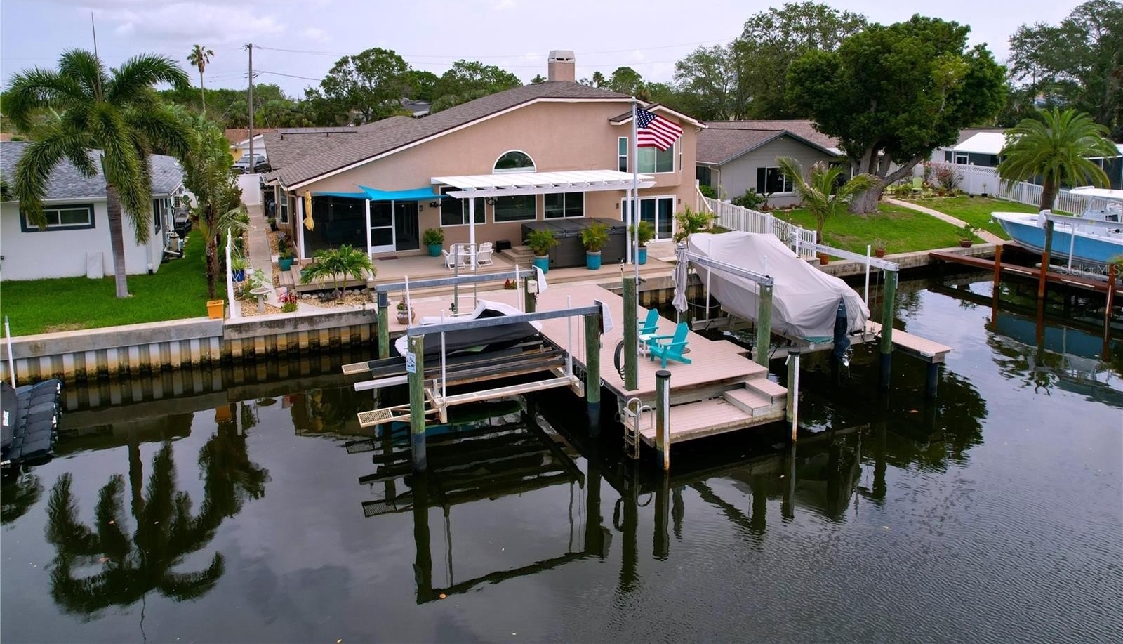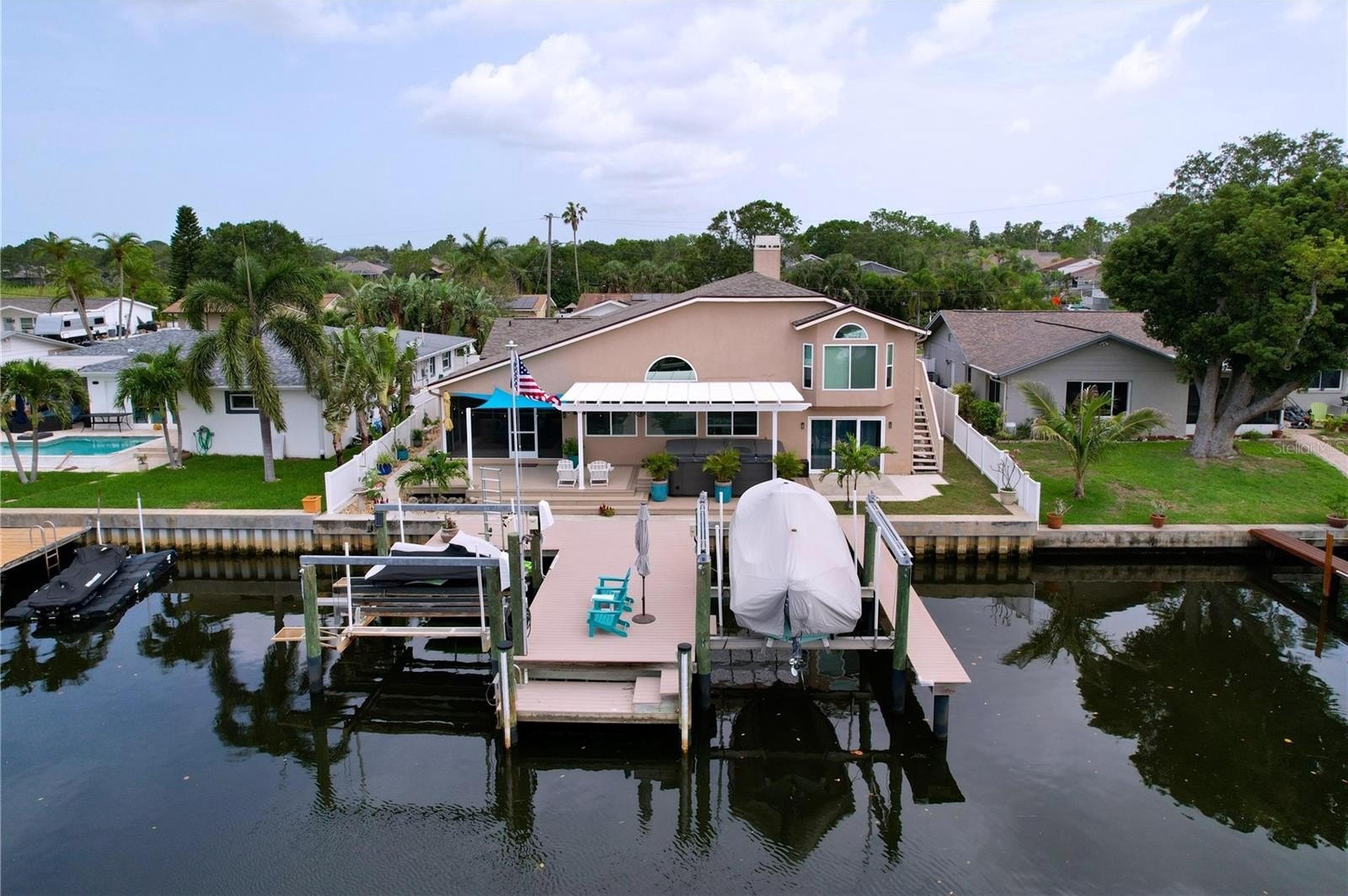Luxury waterfront living in Palm Harbor | OPTIONAL HOA | GULF-ACCESS! This beautifully maintained coastal retreat offers incredible curb appeal and deep water access with no bridges — just minutes to the Intracoastal, Gulf of Mexico, Anclote Key, and Three Rooker Islands. Enjoy the Florida lifestyle from your screened-in front and back patios, perfect for year-round relaxation and entertaining. Inside, soaring ceilings and abundant natural light highlight the open-concept living space. A custom sea glass and shell accent wall with an electric fireplace creates a stunning focal point. The remodeled gourmet kitchen boasts high-end appliances, upgraded countertops, and a modern flow ideal for entertaining. The main level features two spacious bedrooms (one with a walk-in closet), a stylish full bath between them, and a bonus room perfect for an office, nursery, or home gym. A beautifully designed wine closet/bar area adds an extra touch of sophistication. For added convenience, a half bath is located in the garage—ideal for coming home from a day on the water. Upstairs, the private primary suite offers a peaceful retreat with a walk-in closet, a luxuriously updated en-suite bathroom, and private access to the exterior staircase. The suite also features a built-in window bench with hidden storage—perfect for relaxing with a book or enjoying the breeze.Hurricane-rated Miami-Dade windows and doors are installed throughout the entire home, including the expansive 24x13 bonus storage room. With three sliding glass doors and a window, this space offers endless possibilities: home office, game room, lounge, or creative studio.The composite deck and dock — a high-end, low-maintenance upgrade — are equipped with a boat lift, dual jet ski lift (fits two skis), and a kayak lift. Just steps away, enjoy a 2023 8x13 Catalina Malibu Swim Spa complete with a bluetooth stereo & chiller—keeping the water refreshingly cool even in the summer heat. You can float around, watch the game, wave to boaters, or even catch a glimpse of a passing dolphin. Additional features include updated bathrooms, a wine bar, and thoughtful upgrades throughout for comfort and convenience. With an optional HOA, a new 2025 roof, a 2023 water softener, and premium waterfront features throughout, this Palm Harbor gem delivers luxury, lifestyle, and location in one unforgettable home!