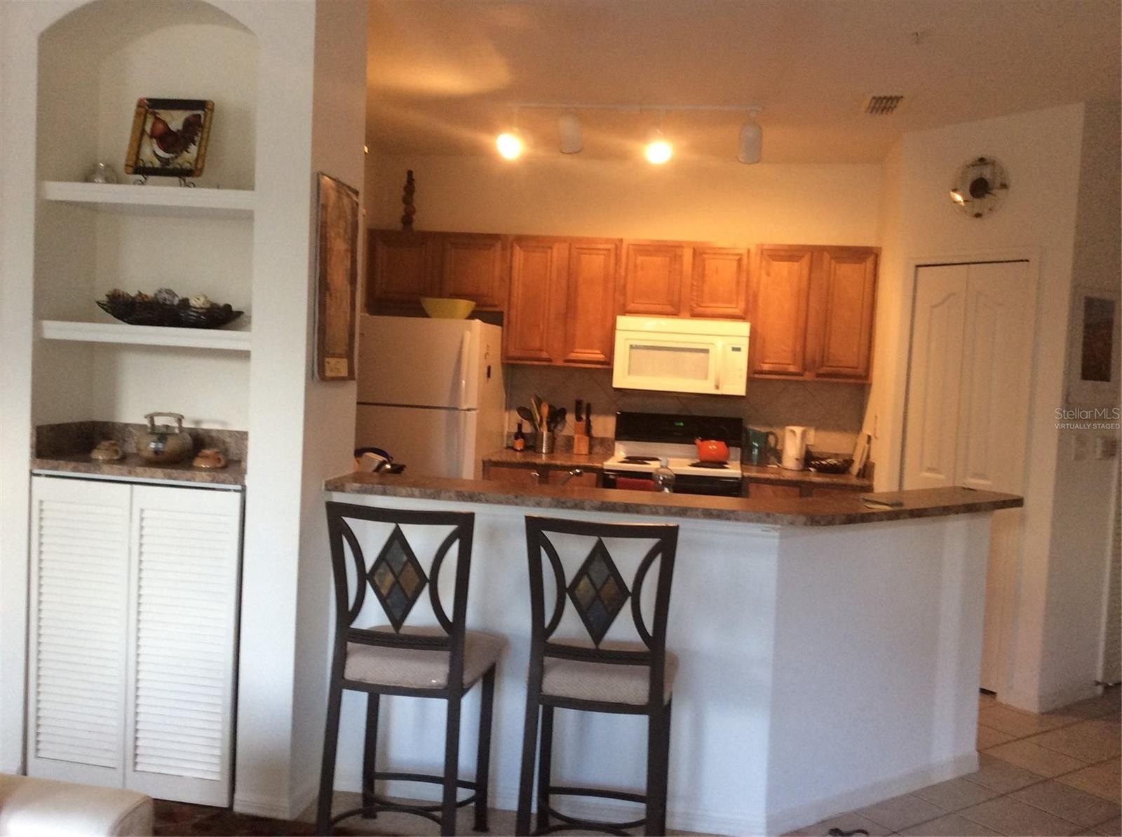 This unfurnished 2-bedroom, 2-bath condo is on the third floor and features an open floor plan with soaring 10-foot ceilings, oversized hurricane-resistant windows, quality appliances, built-in shelves, a laundry room, and a screened lanai with an attached storage room.